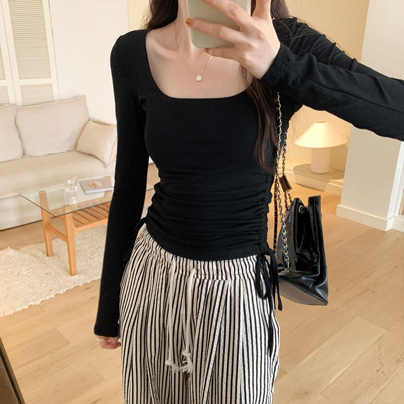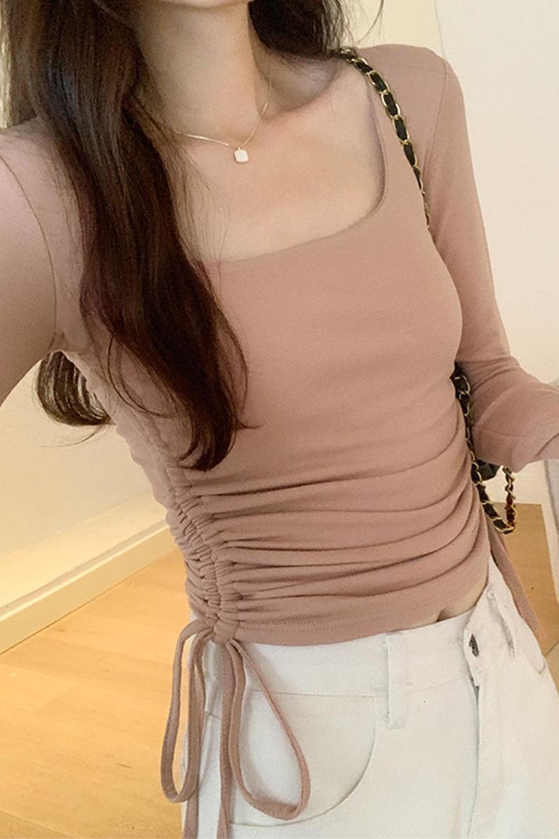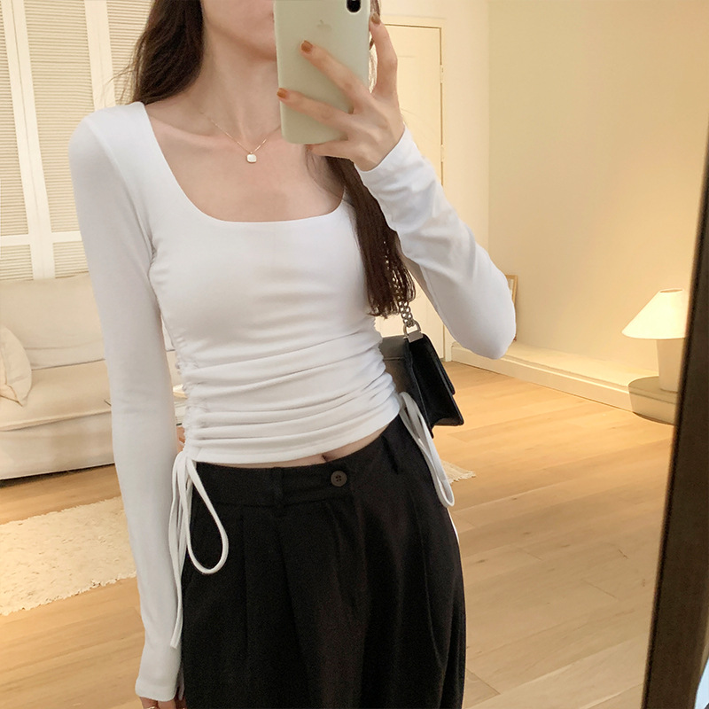 Yipinpay Girls' Solid Color Square Collar Long-Sleeved T-Shirt The New Autumn Style Is Slim, Slim And Underwear.