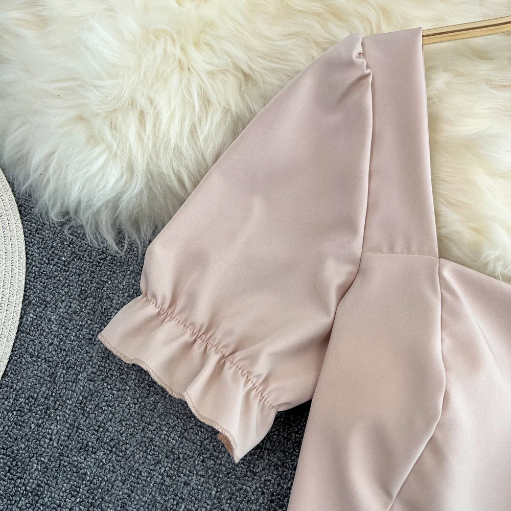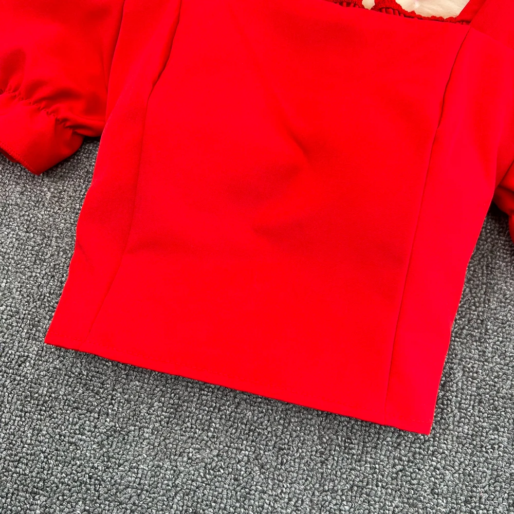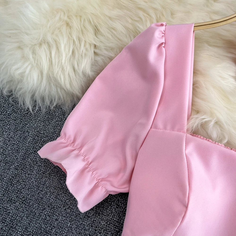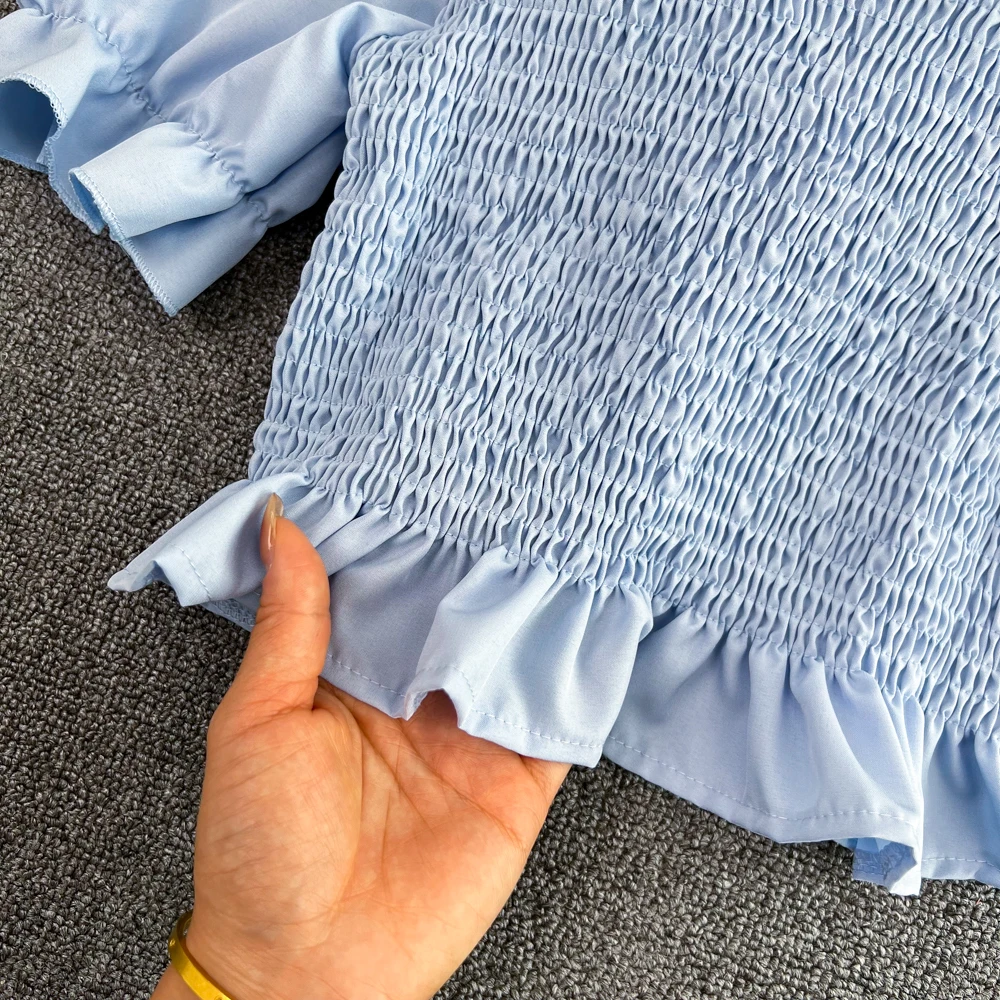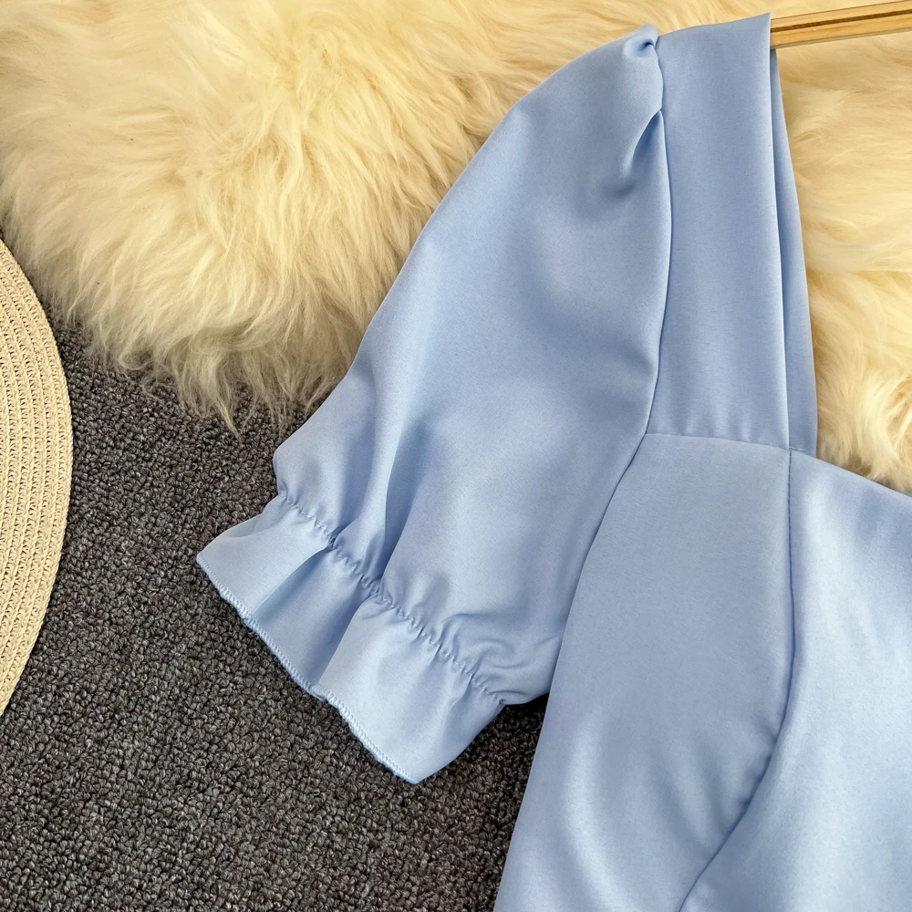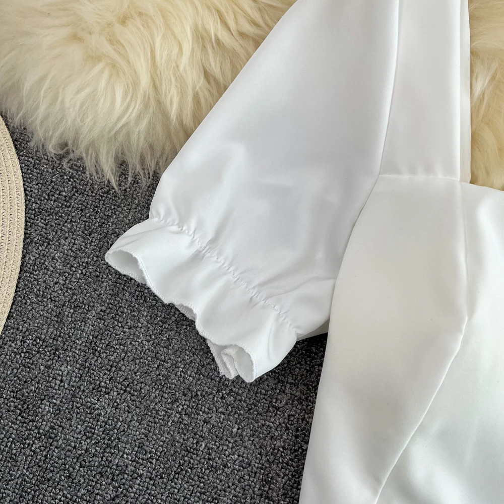 Yipinpay Korean Style Shirt For Women Sweet Square Neck Puff Short Sleeve All-Matched Pullover Shirt Femal Fashion Slim Short Top