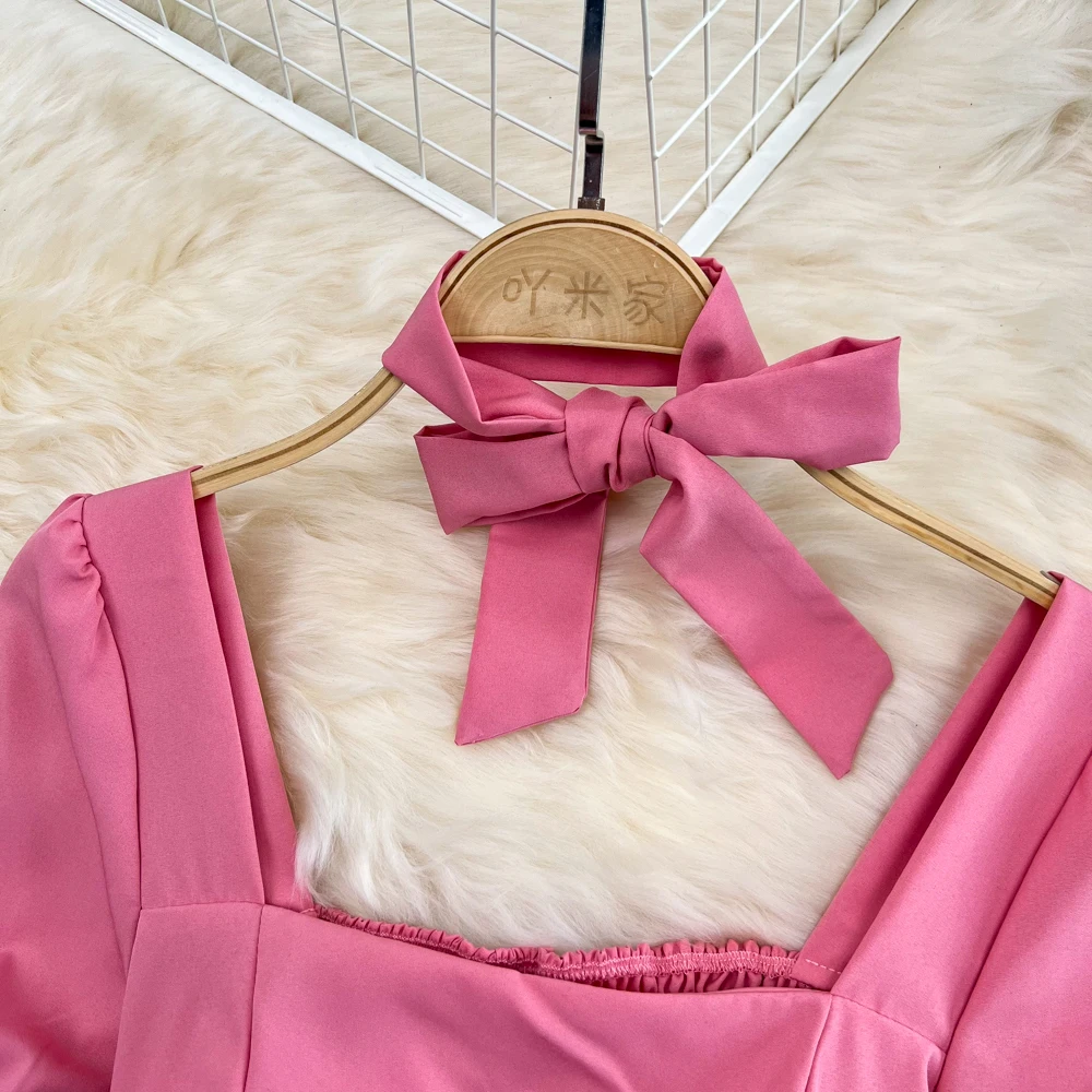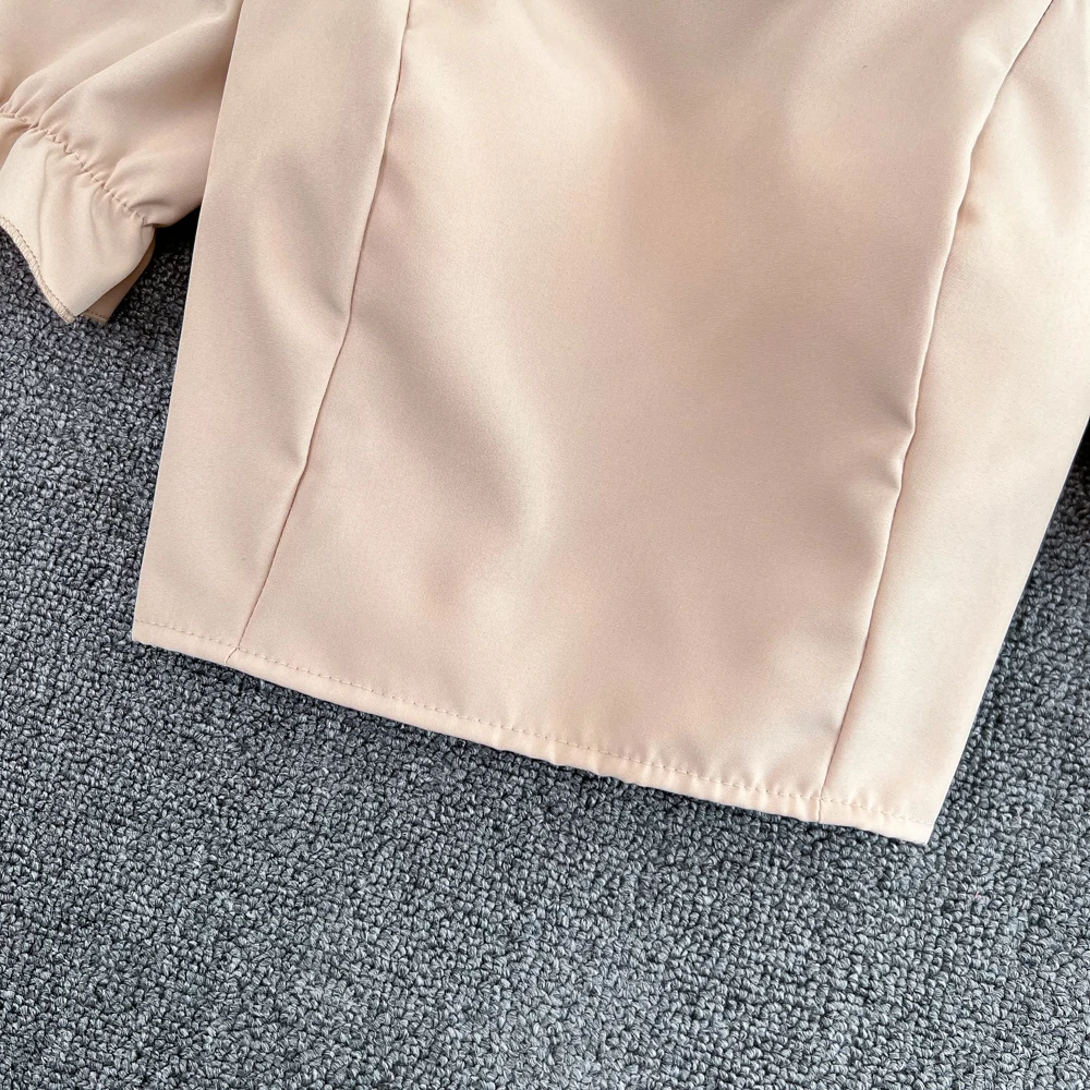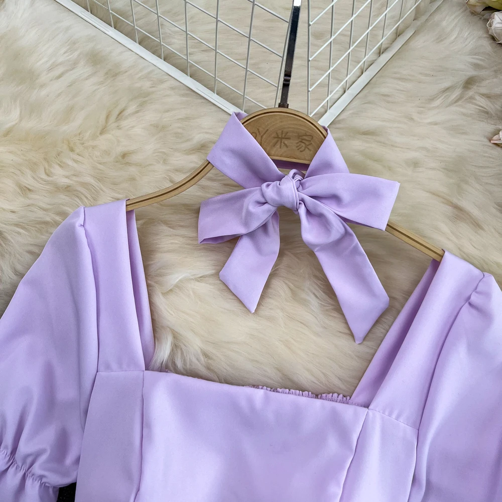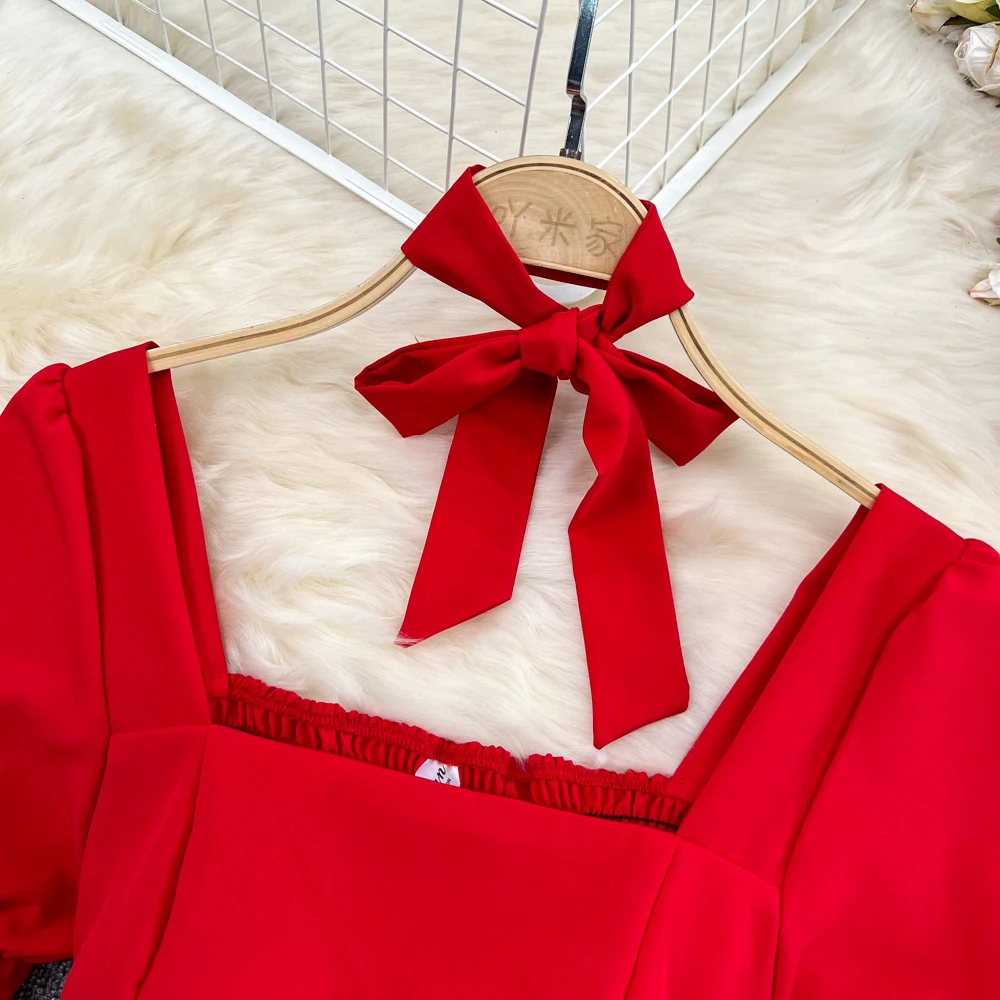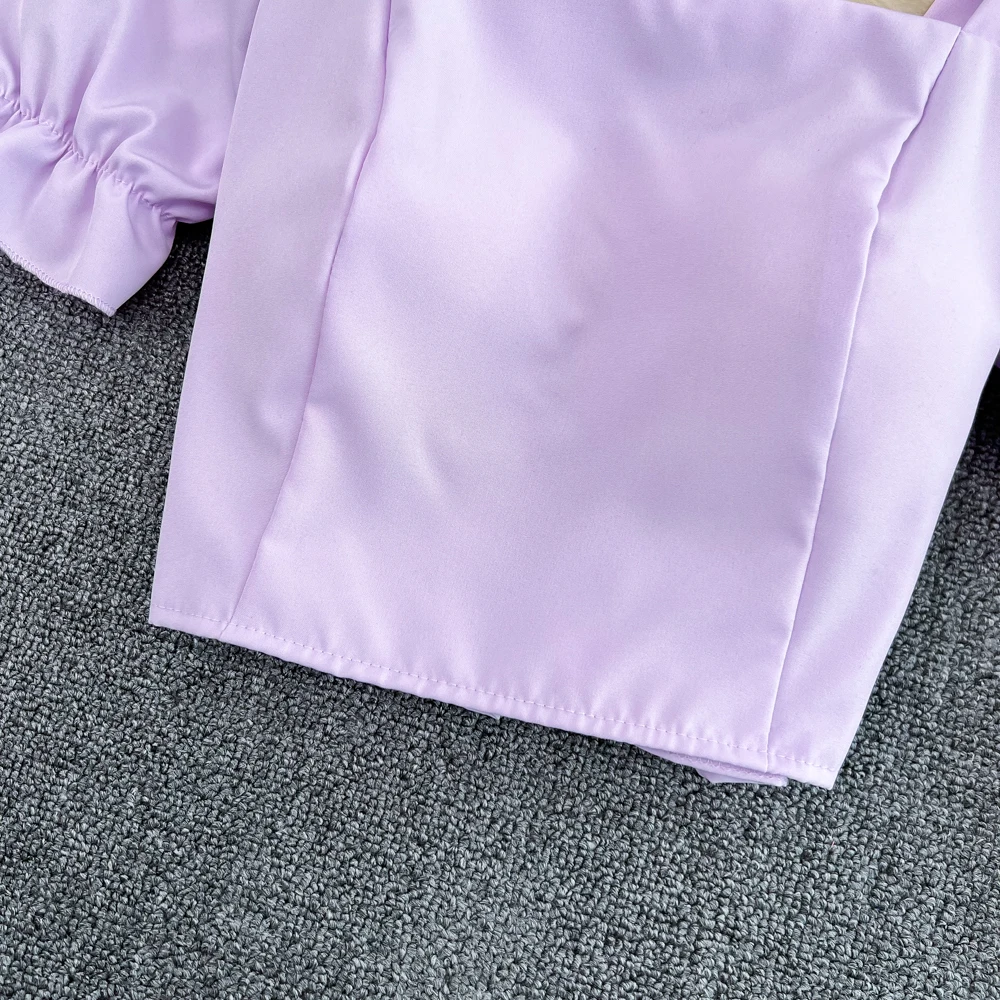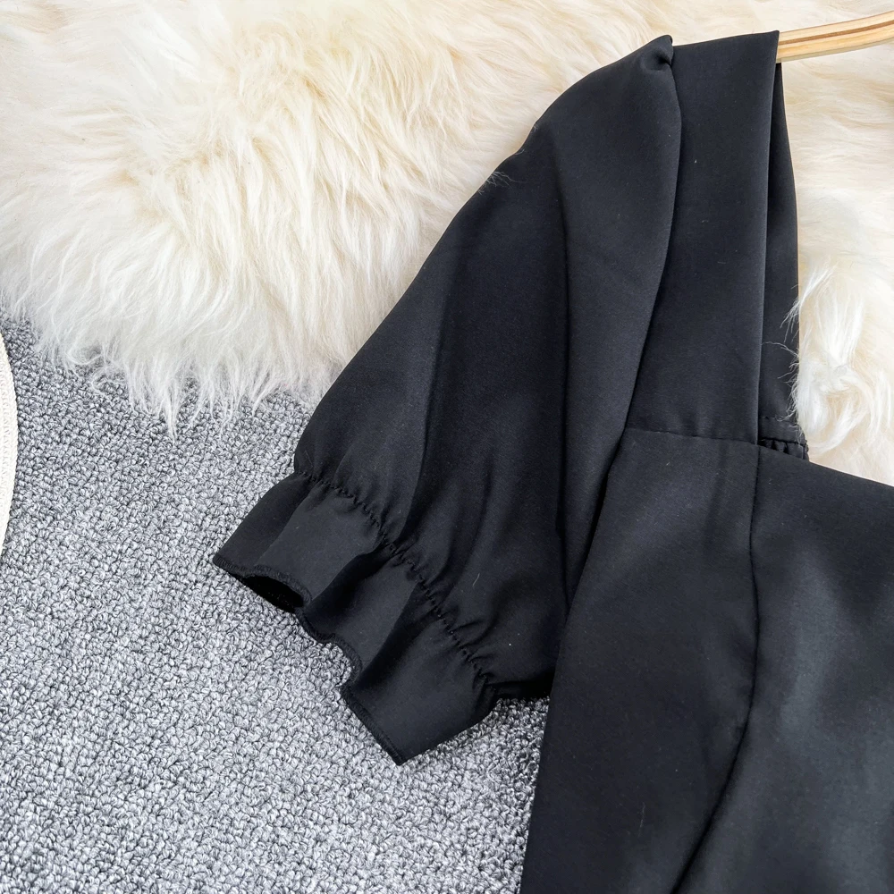 Yipinpay Korean Style Shirt For Women Sweet Square Neck Puff Short Sleeve All-Matched Pullover Shirt Femal Fashion Slim Short Top