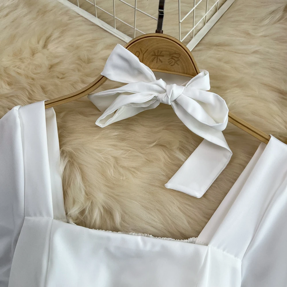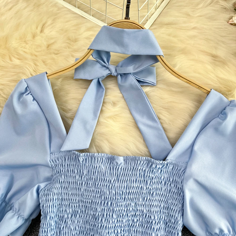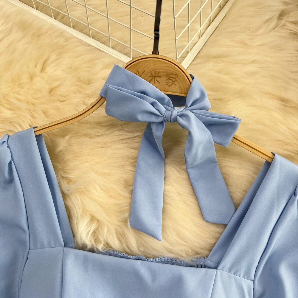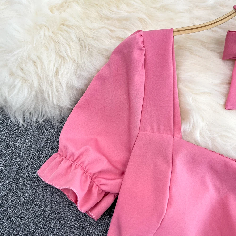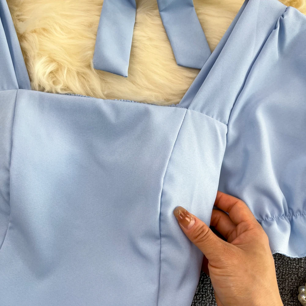 Yipinpay Korean Style Shirt For Women Sweet Square Neck Puff Short Sleeve All-Matched Pullover Shirt Femal Fashion Slim Short Top