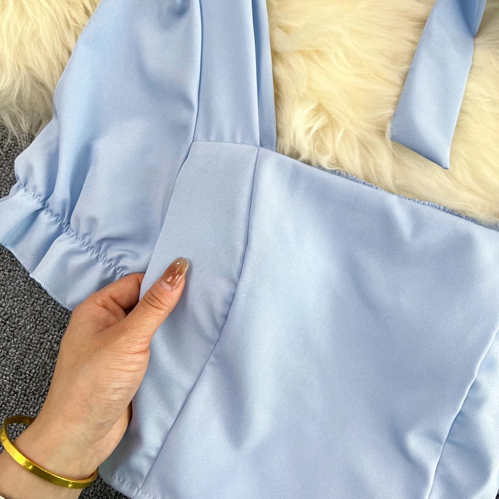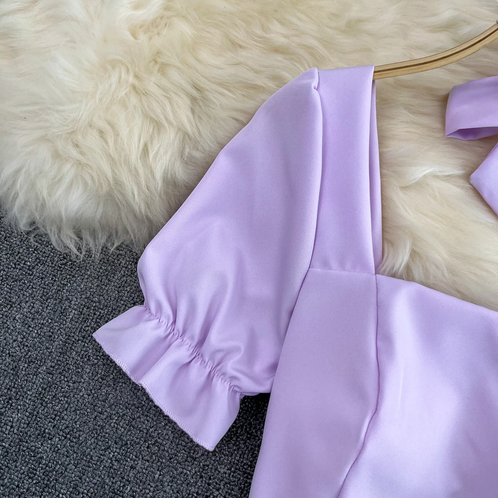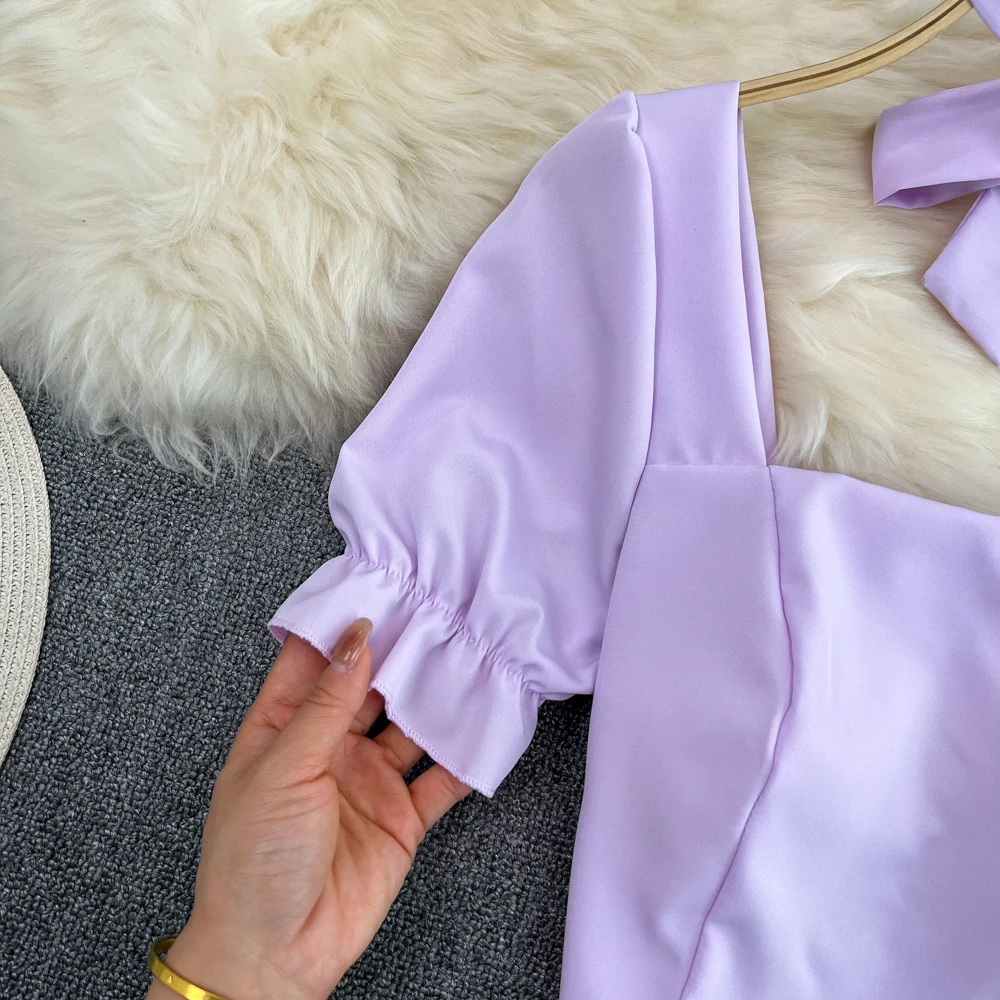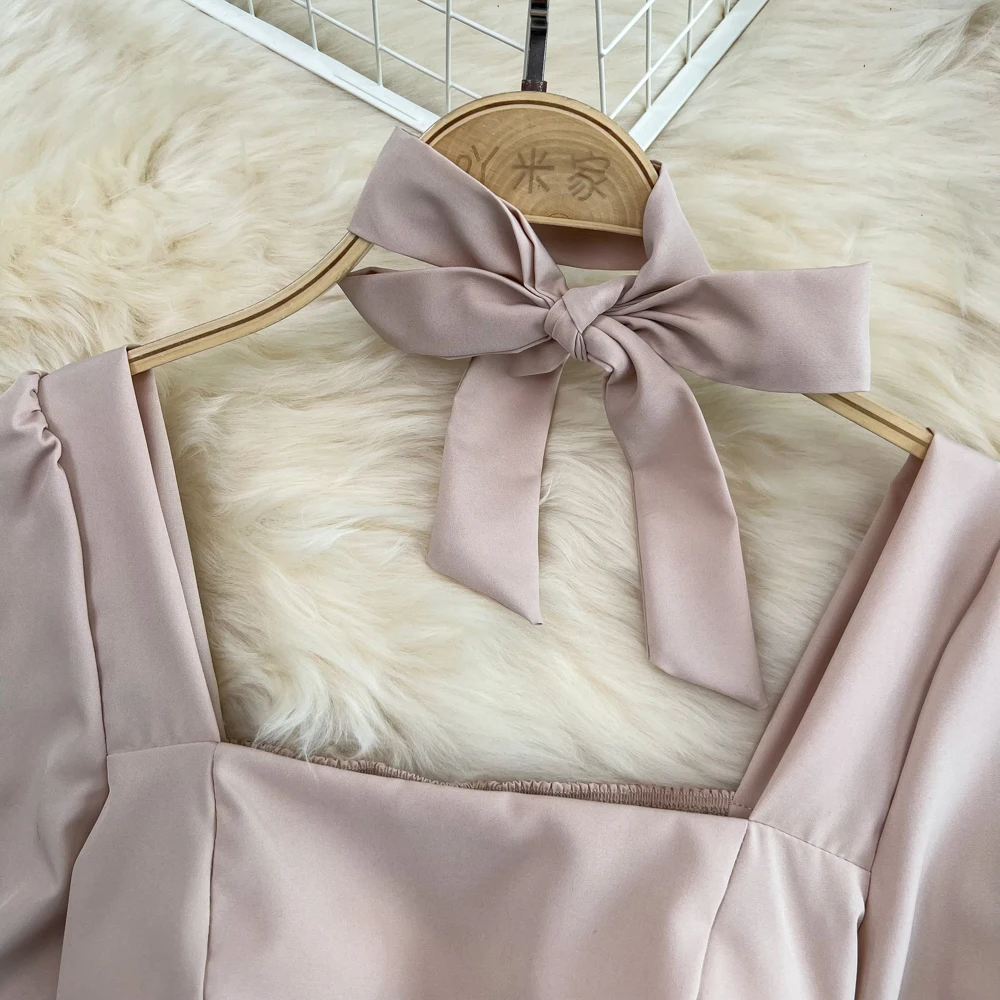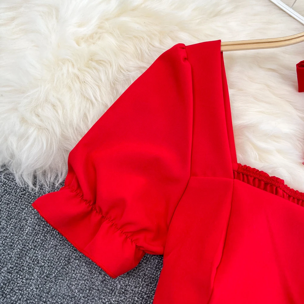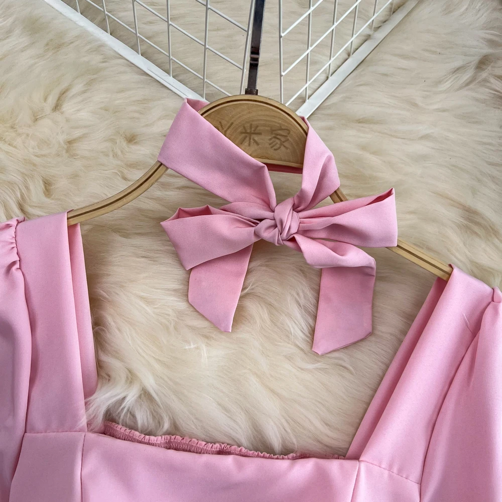 Yipinpay Korean Style Shirt For Women Sweet Square Neck Puff Short Sleeve All-Matched Pullover Shirt Femal Fashion Slim Short Top
