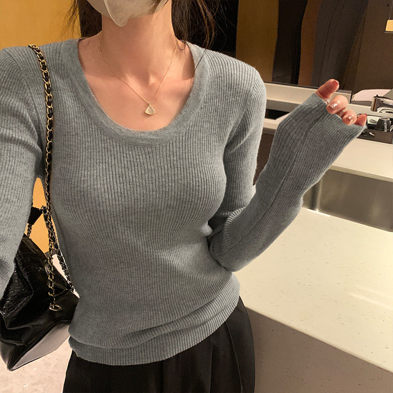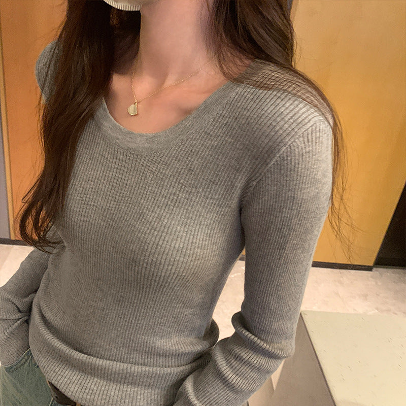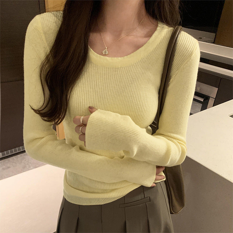 Yipinpay Round Collar Slim Long-Sleeved T-Shirt Girls Autumn And Winter New Beautiful Ins Knitted Blouse