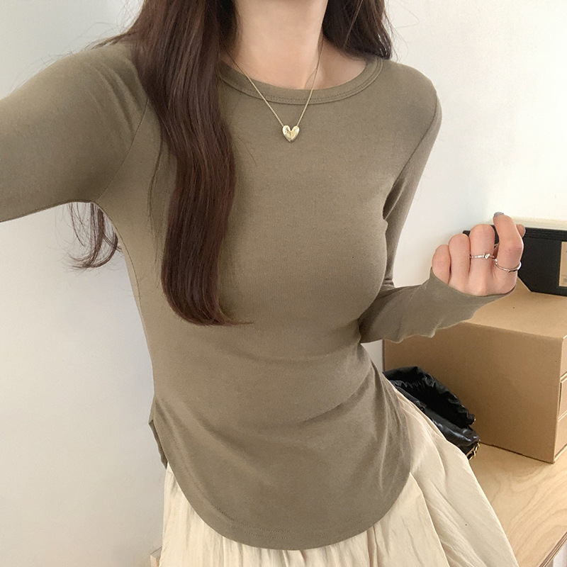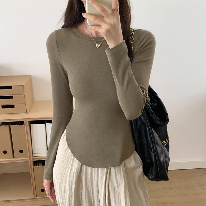 Yipinpay Round-Necked Long-Sleeved T-Shirt Women's New Autumn Design Feel Small, Slim And Slim, With A Blouse Inside The Shoulder.