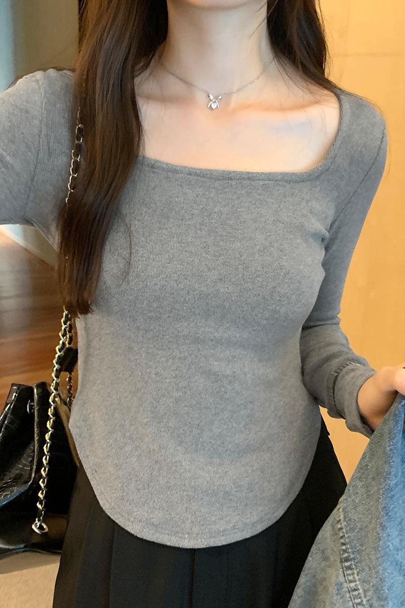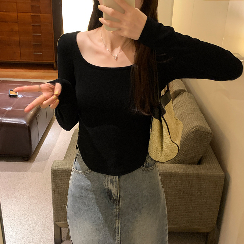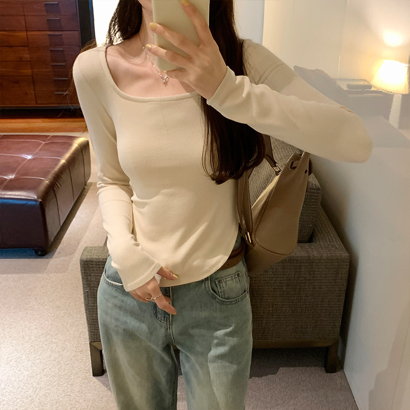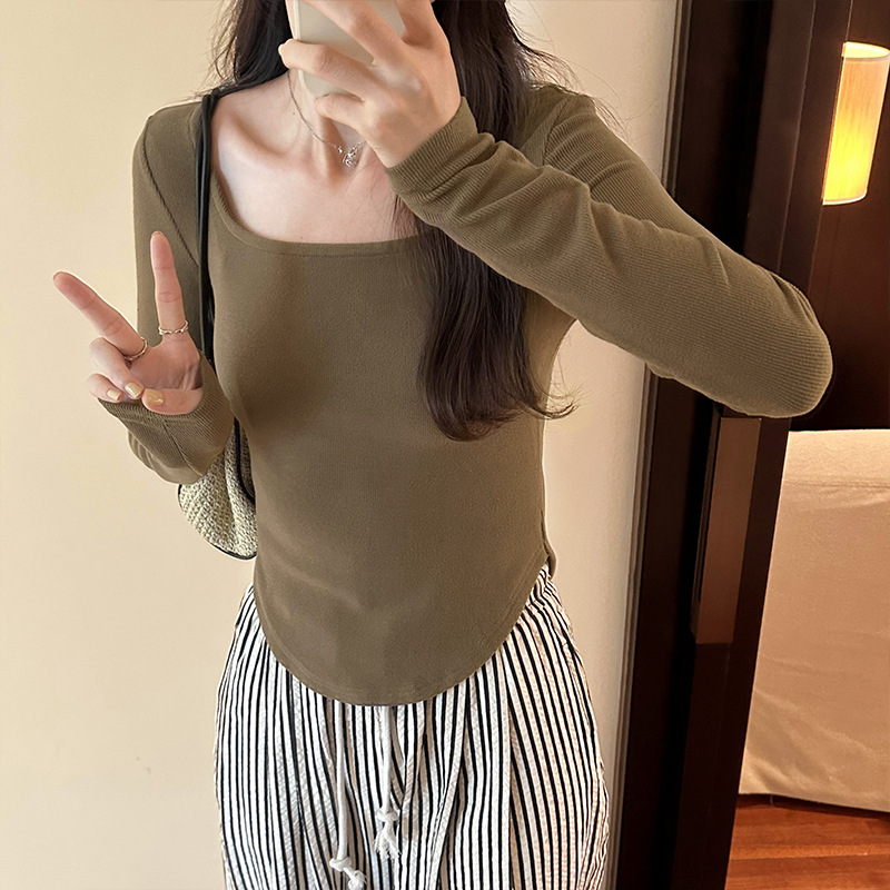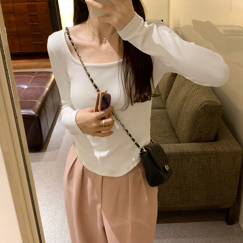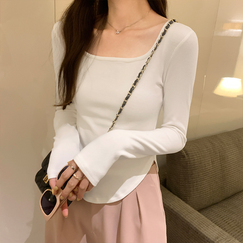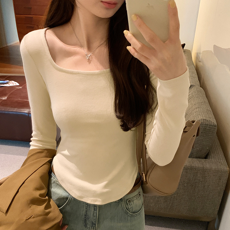 Yipinpay Sense Small Square Collar Long-Sleeved T-Shirt Women's Autumn New Slim And Slim Underwear With Thread Bottom