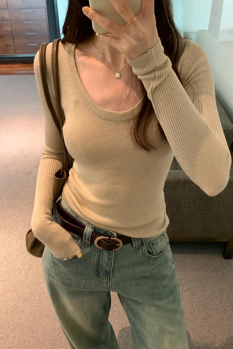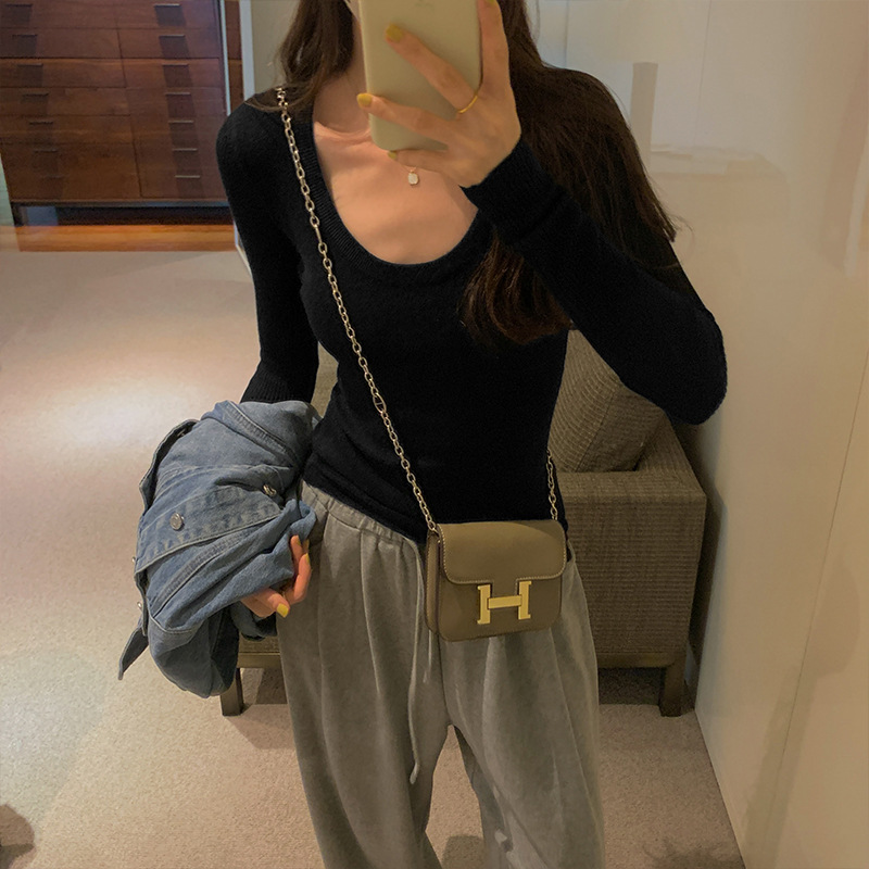 Yipinpay Shoulder Long-Sleeved T-Shirt A New Autumn Style Slim Knitted Bottomed Shirt With Solid Color Underwear