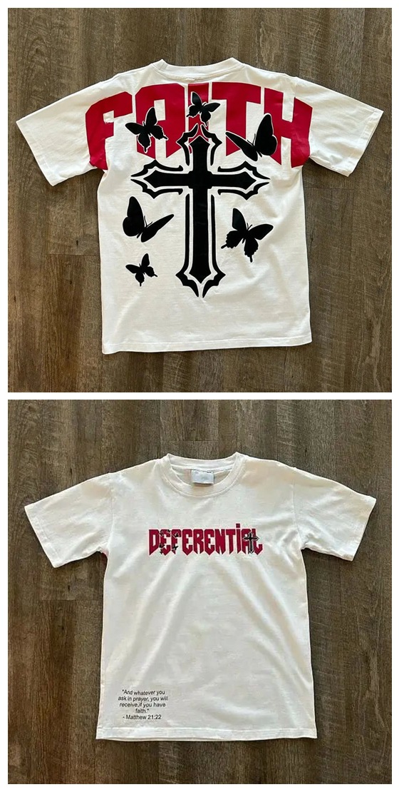 Yipinpay T-Shirt Y2K Hip-Hop Letter Retro Cross Graphic Print Oversized T-Shirt Men's Round Neck Cotton Short-Sleeved Shirt