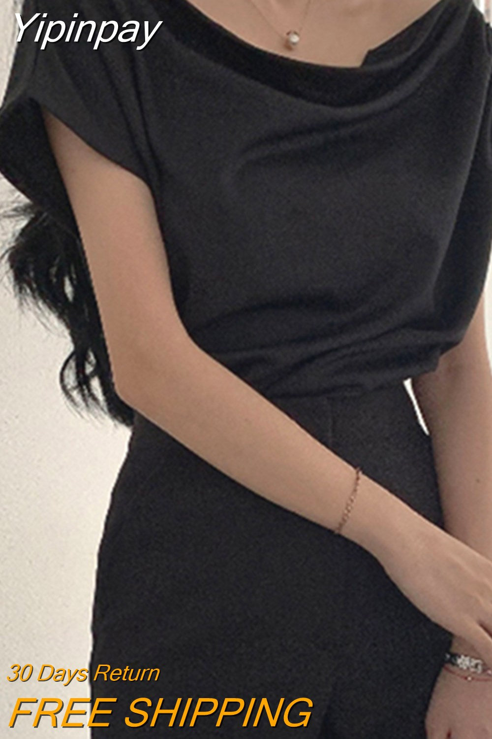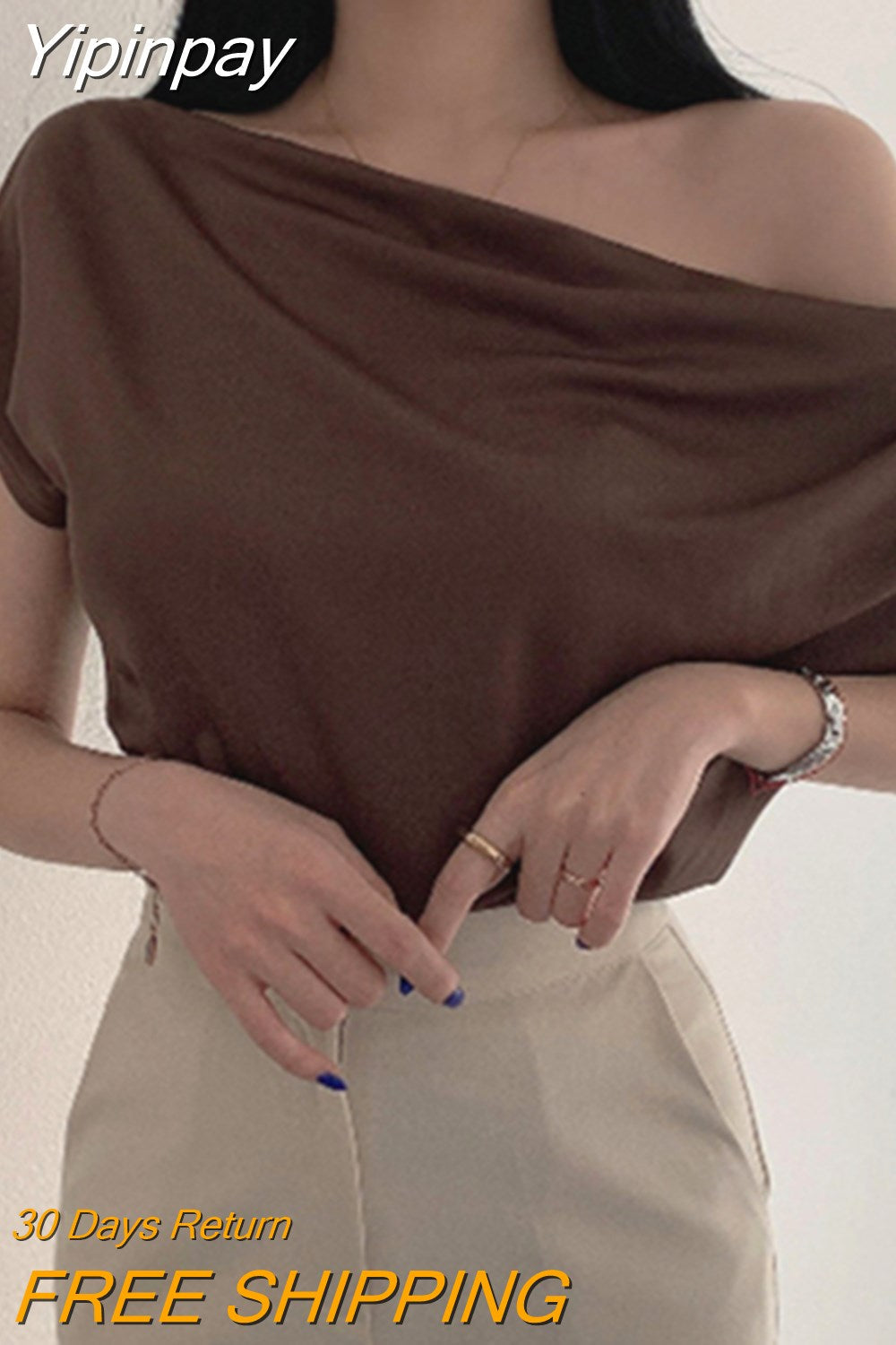 Yipinpay Temperament Off Shoulder Design Versatile Short Sleeve Pile Up Collar Shirt Slash Crop Top Blusas Mujer De Moda 2023 Slim Shirts