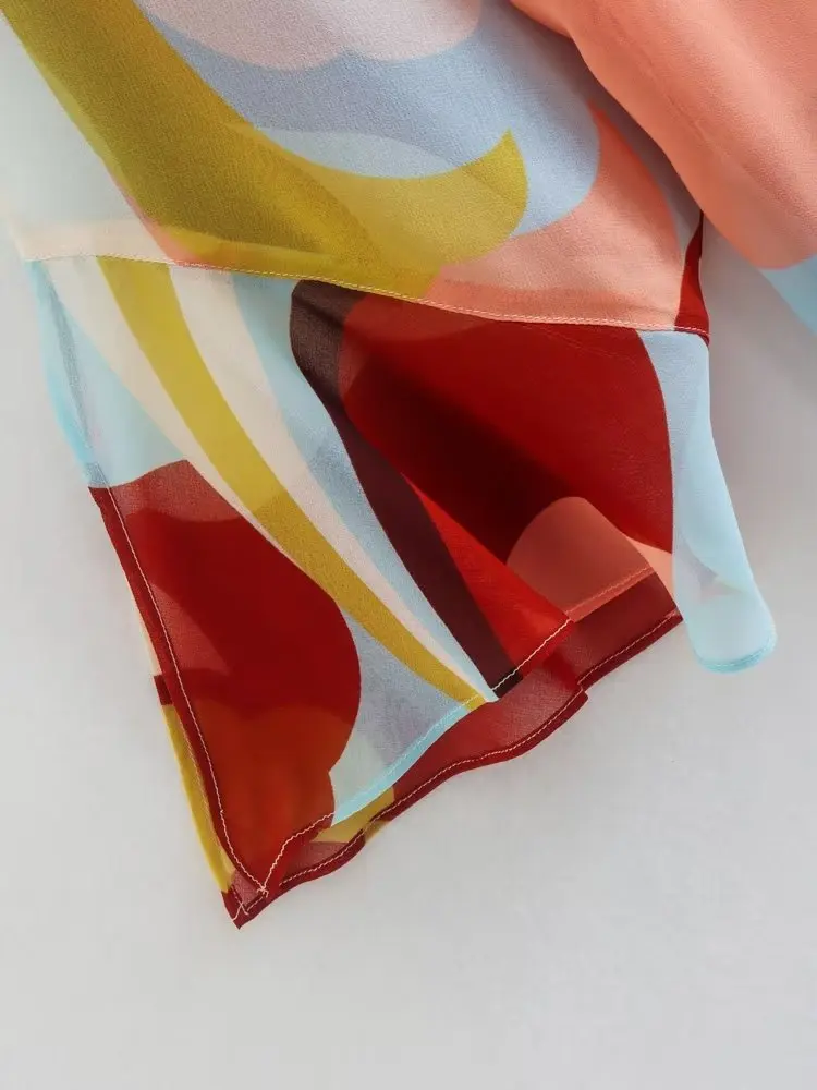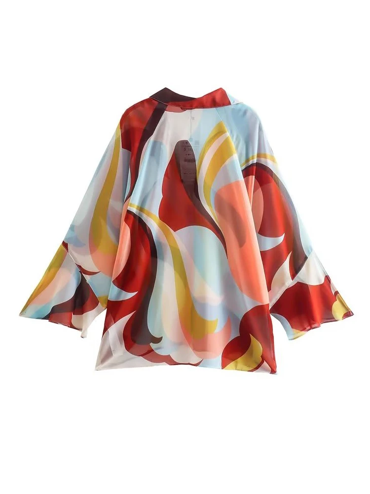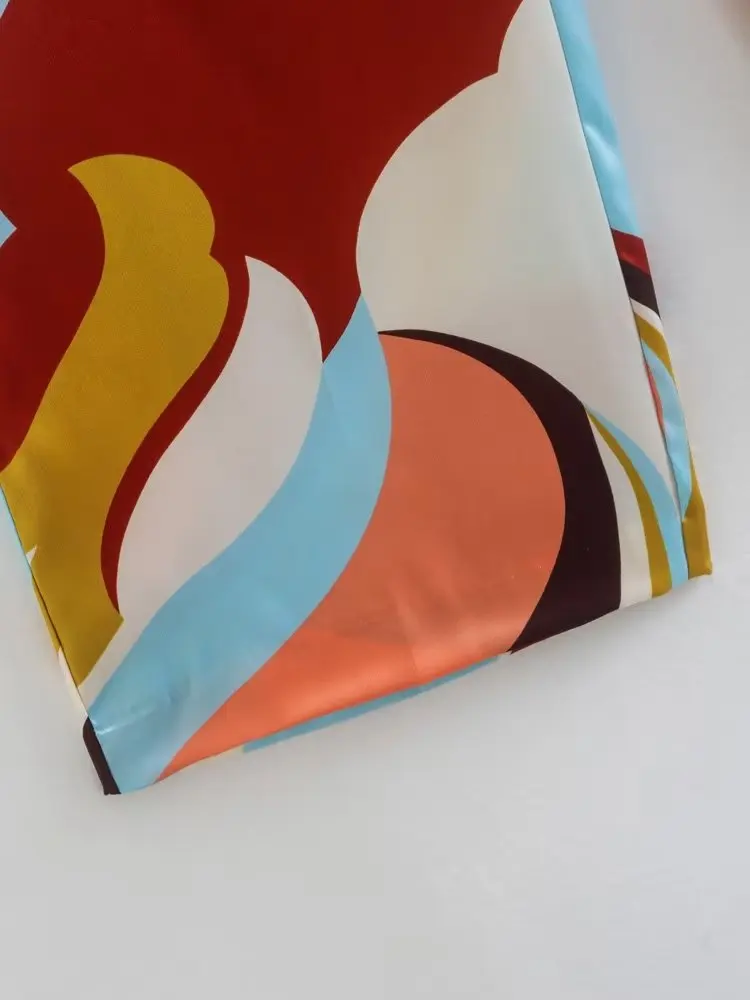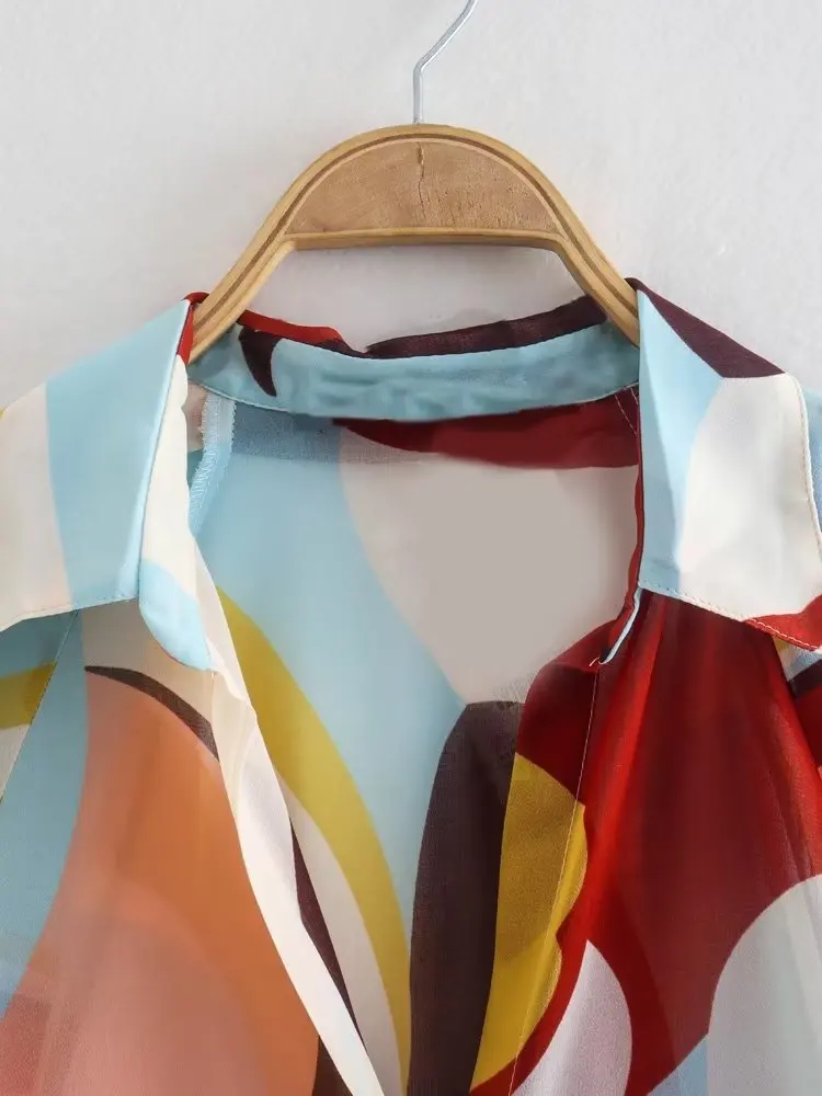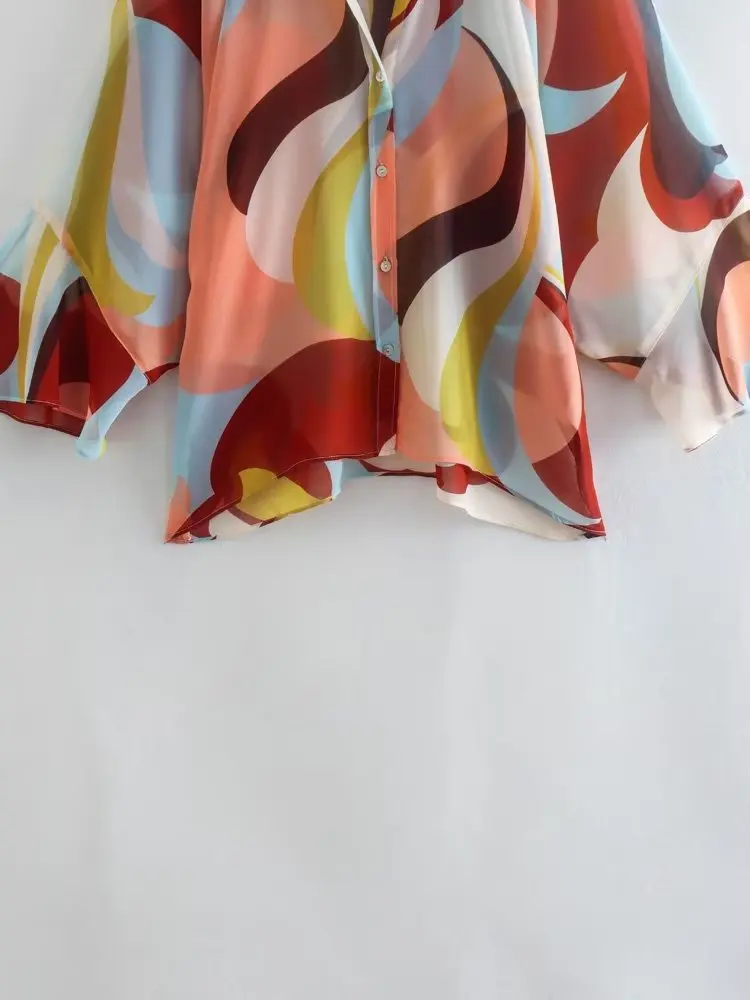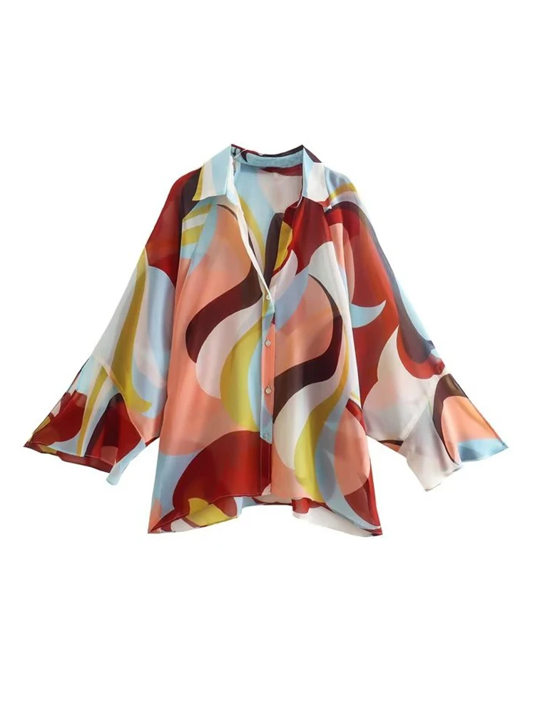 Yipinpay Women Geometric Print Pant Shirt Sets 2023 New Summer Fashion Single Breasted Blouse+Wide Leg Pants Causal Outwear