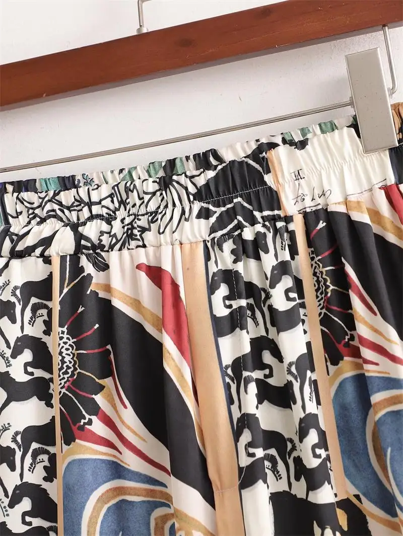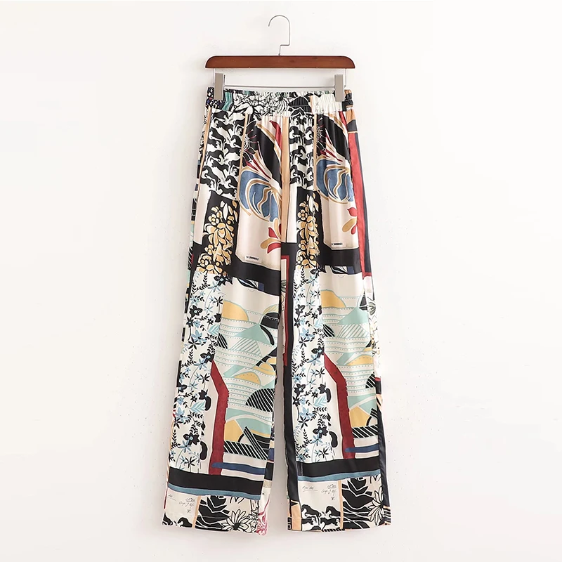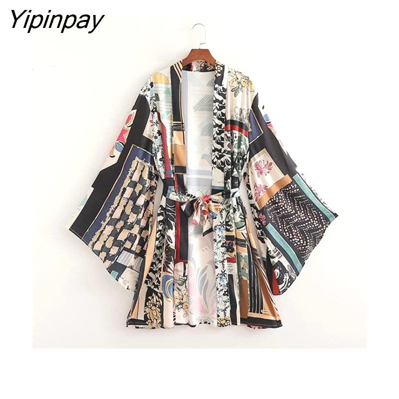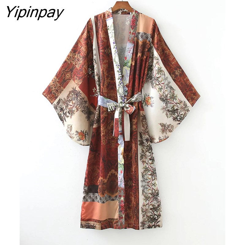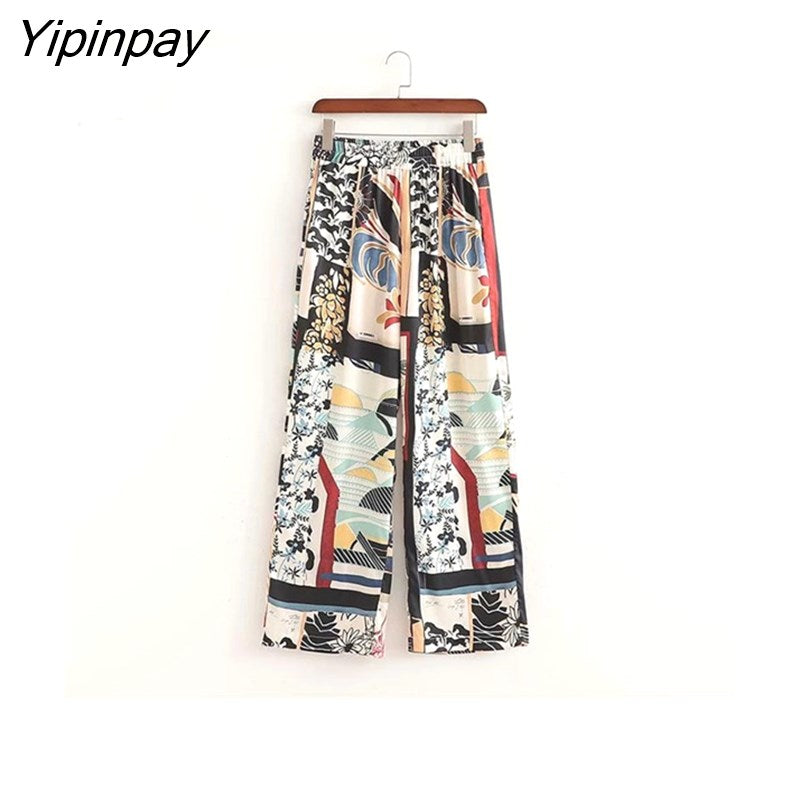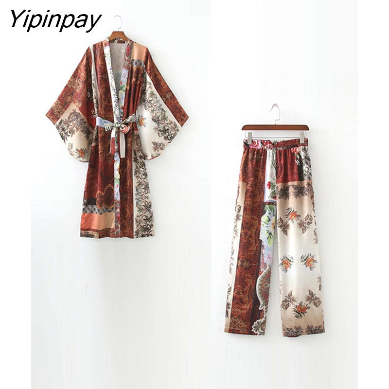 Yipinpay Women Shirts +Trousers Suit Kimono Style Summer Full Printed X-Long Drawstring Blouse Set Female Pants Casual Clothes