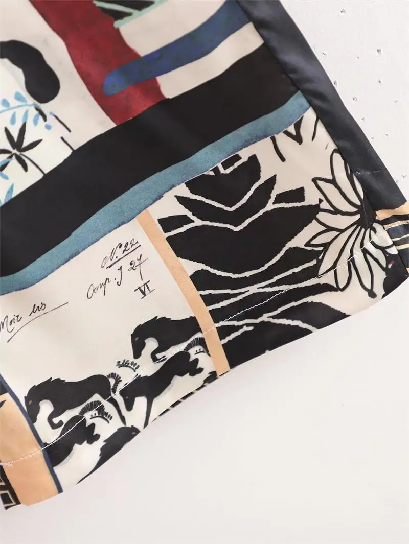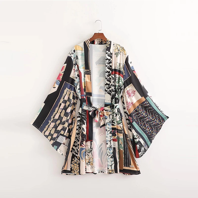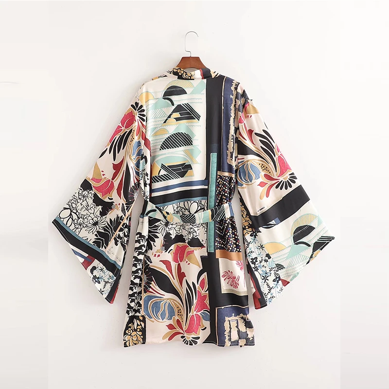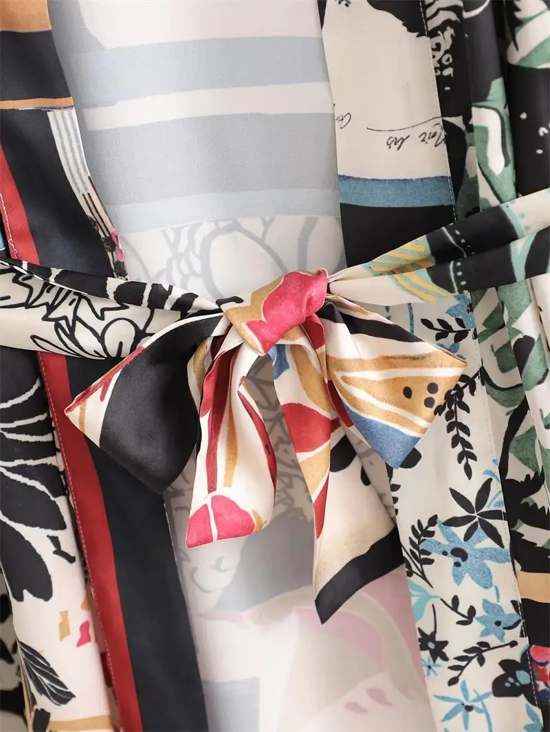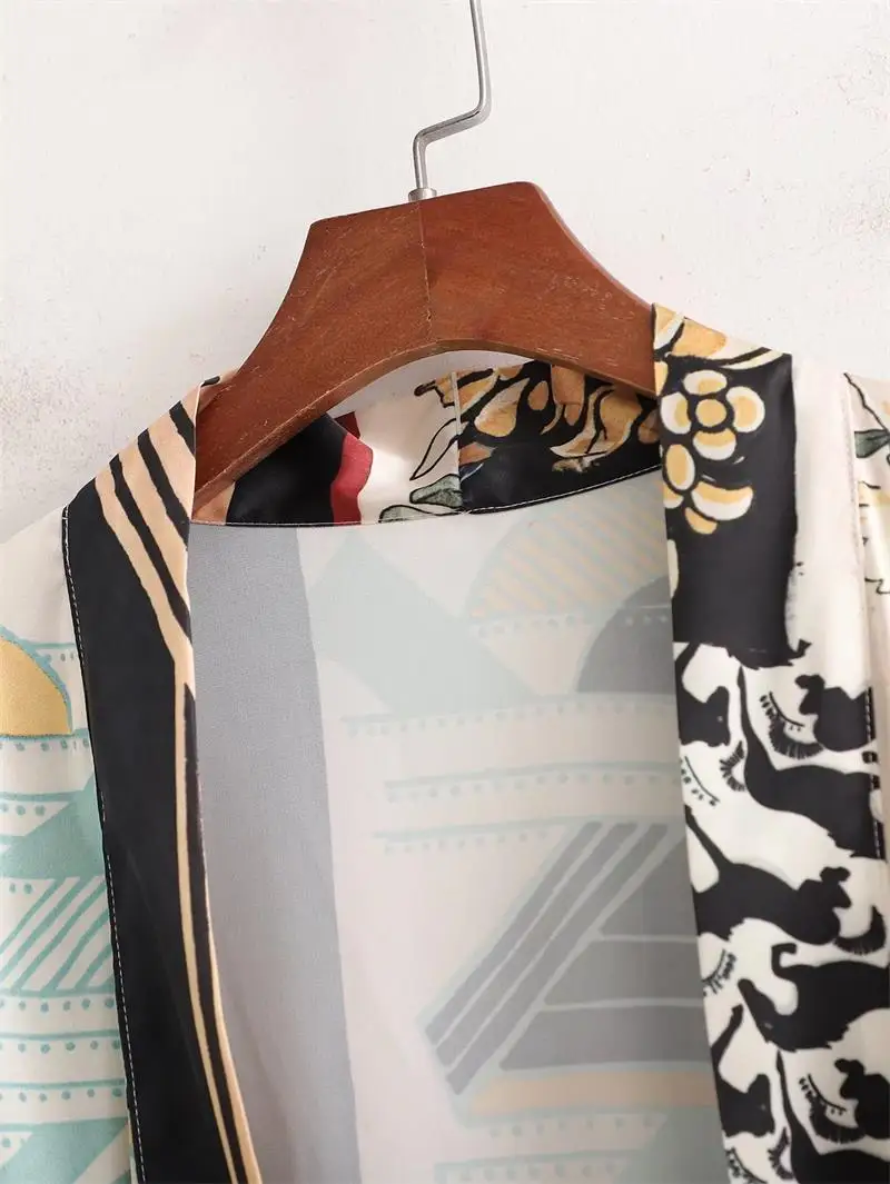 Yipinpay Women Shirts +Trousers Suit Kimono Style Summer Full Printed X-Long Drawstring Blouse Set Female Pants Casual Clothes
