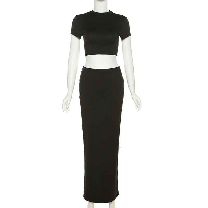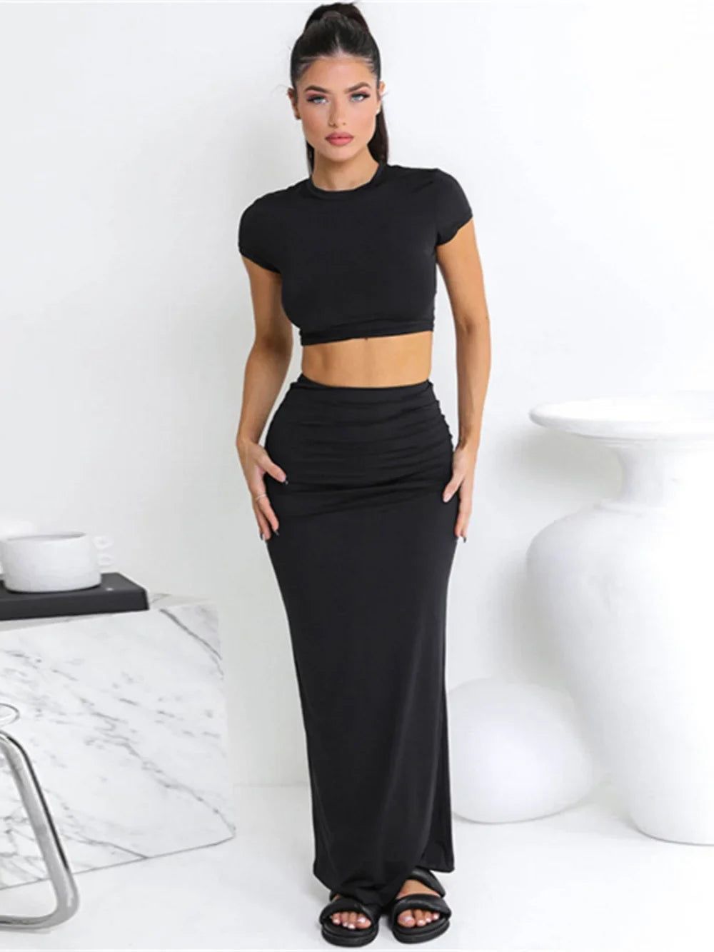 Yipinpay Women's Suit Short Crop T-Shirt And High Fanny Pack Hip Skirt Casual Sets Slim Lady Elegant Two-Piece Outfits