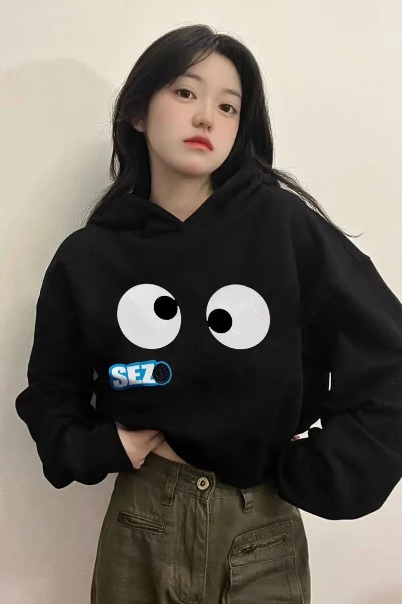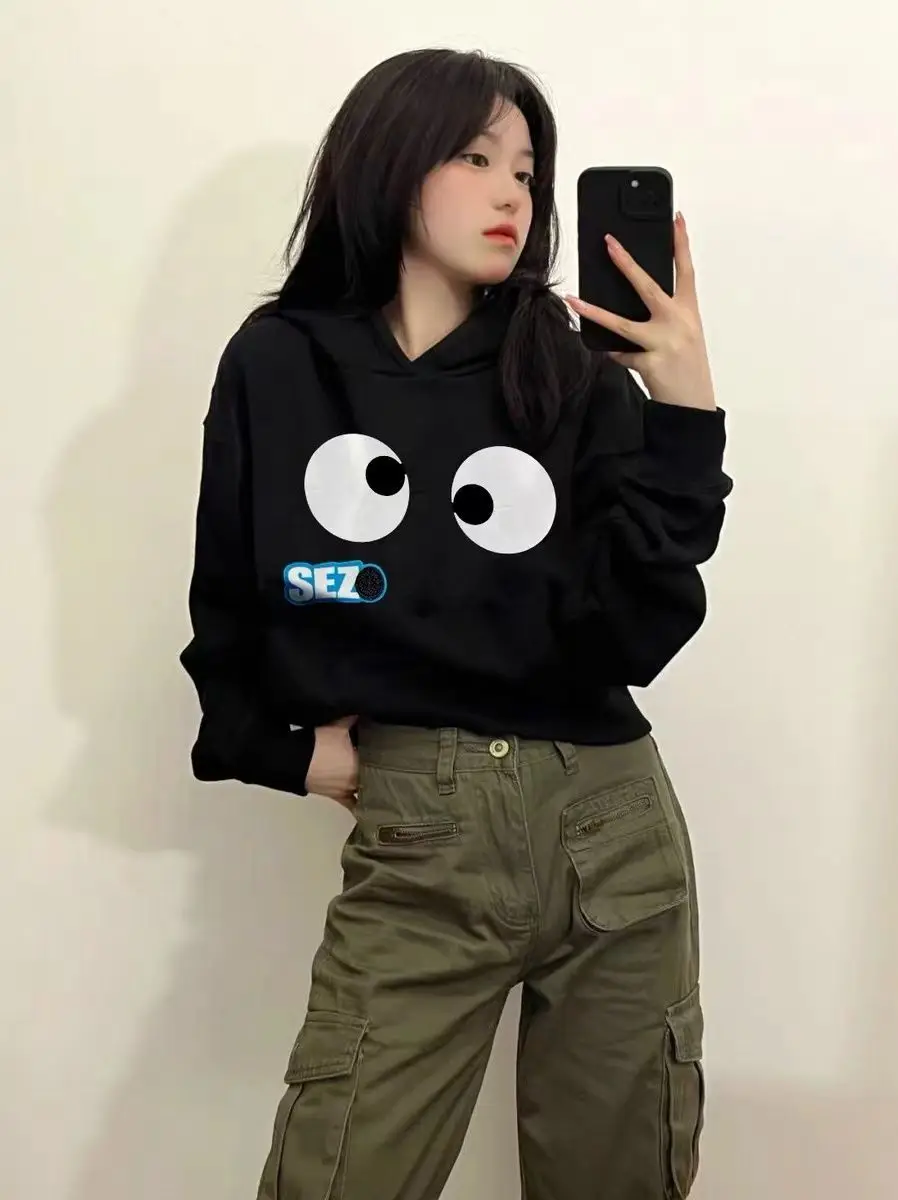 Yipinpay 2023 Autumn Casual Cartoon Print Women Hoodies Korean Style Long Sleeve Loose Short Sweatshirt Pullovers Female Tops