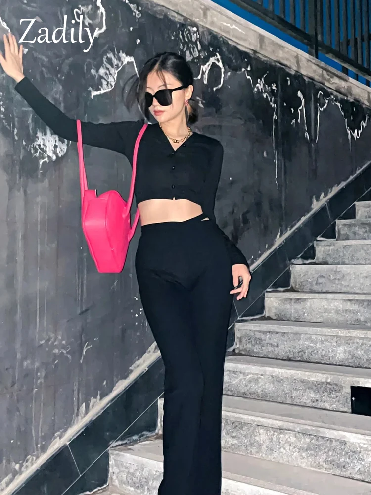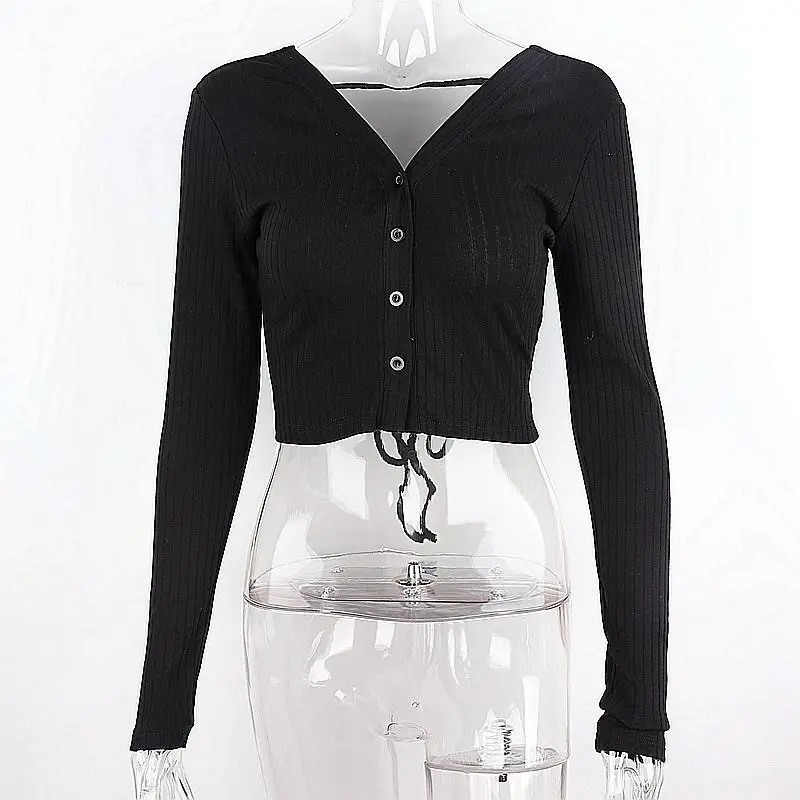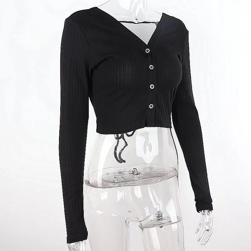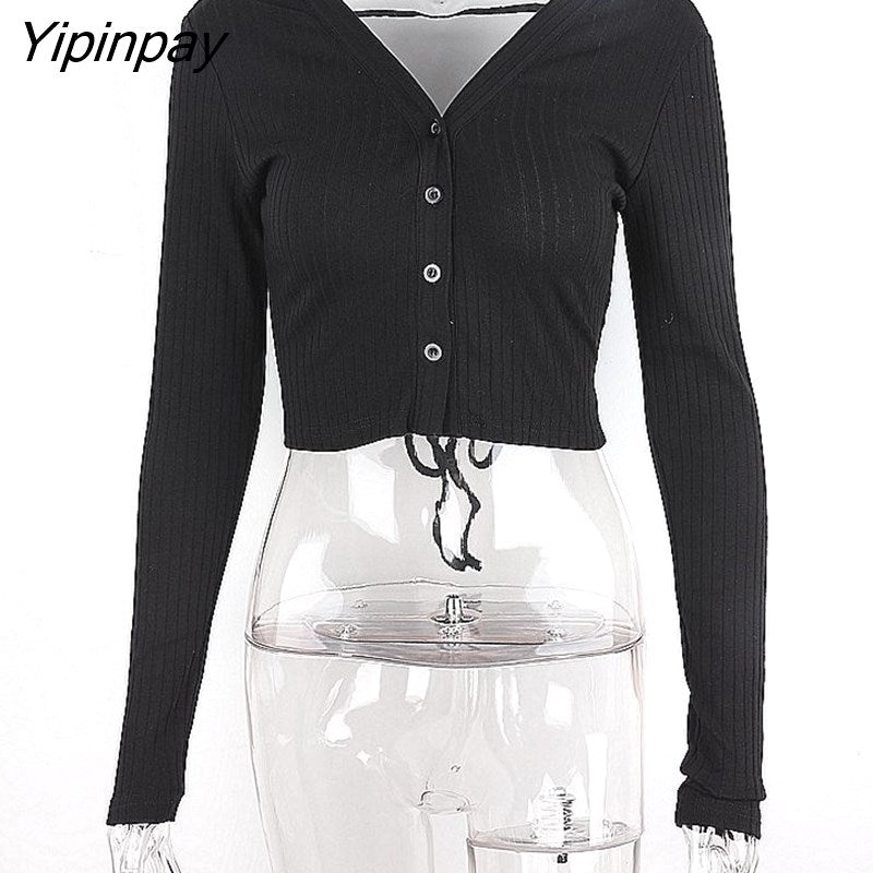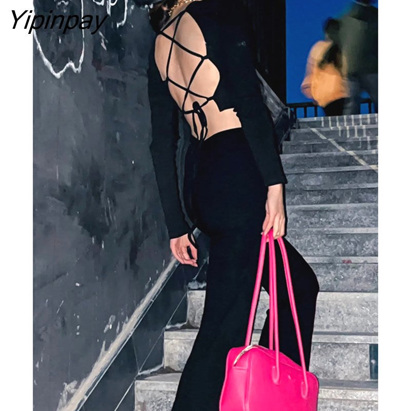 Yipinpay 2023 Autumn Long Sleeve Knit Black Shirt Women Sexy Backless Slim Ladies Crop Tops Korean Style Female Clothing Blouse