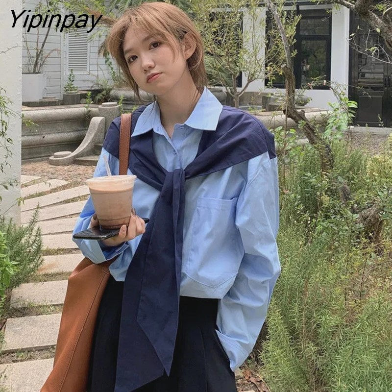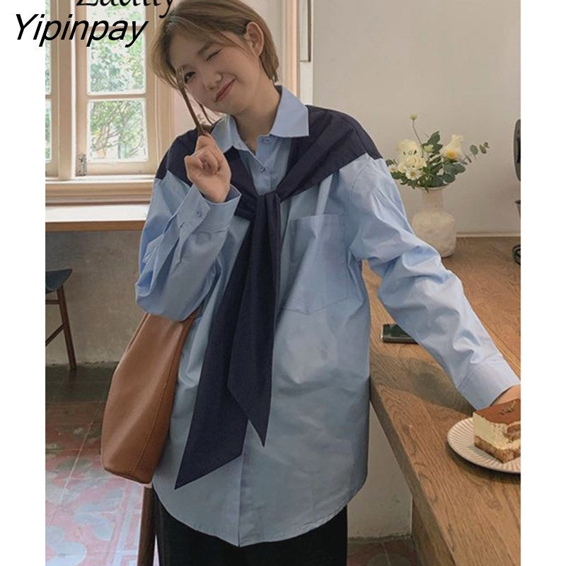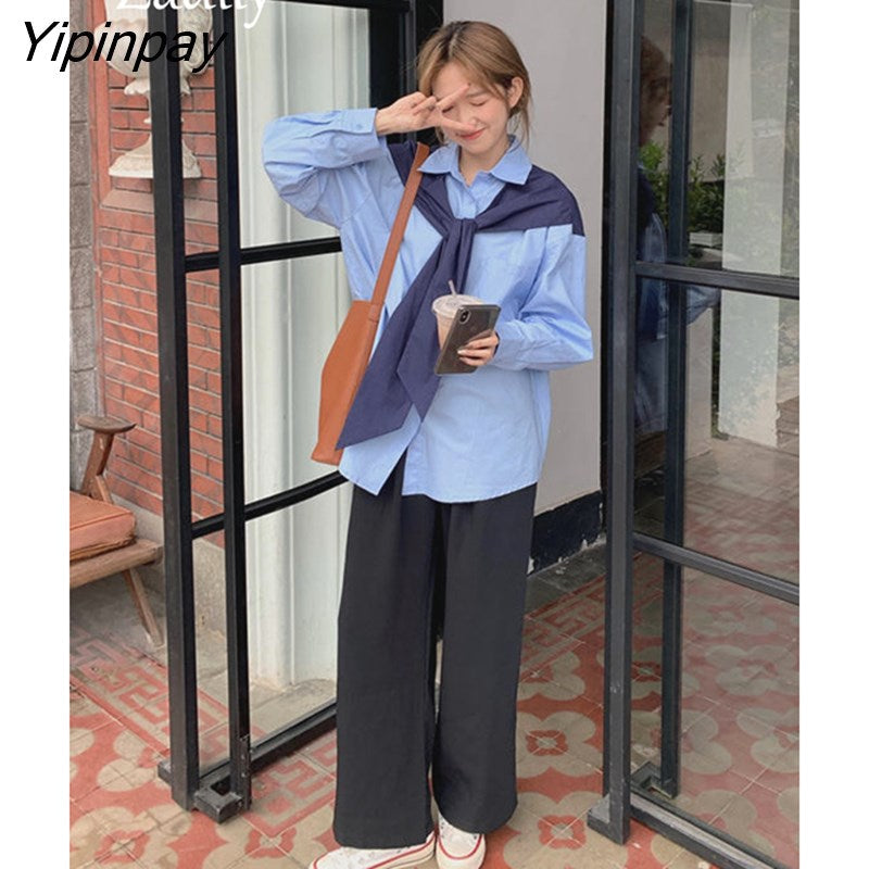 Yipinpay 2023 Autumn Long Sleeve Shawl Shirt Women Office Lady Button Up Patchwork Ladies Tunic Blouse Work Female Clothing Tops