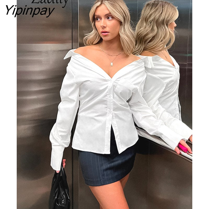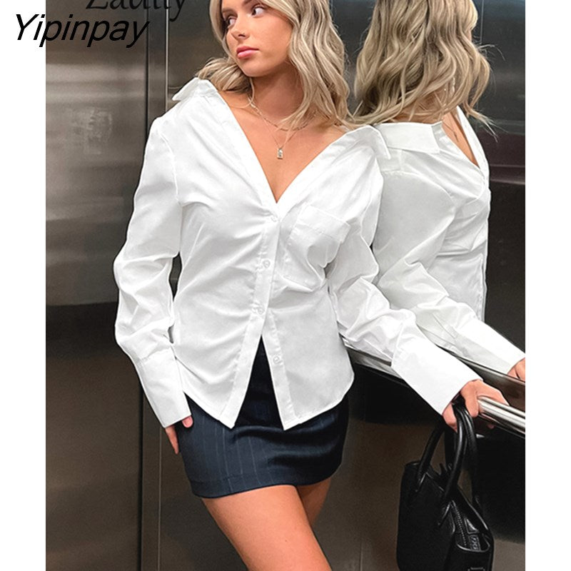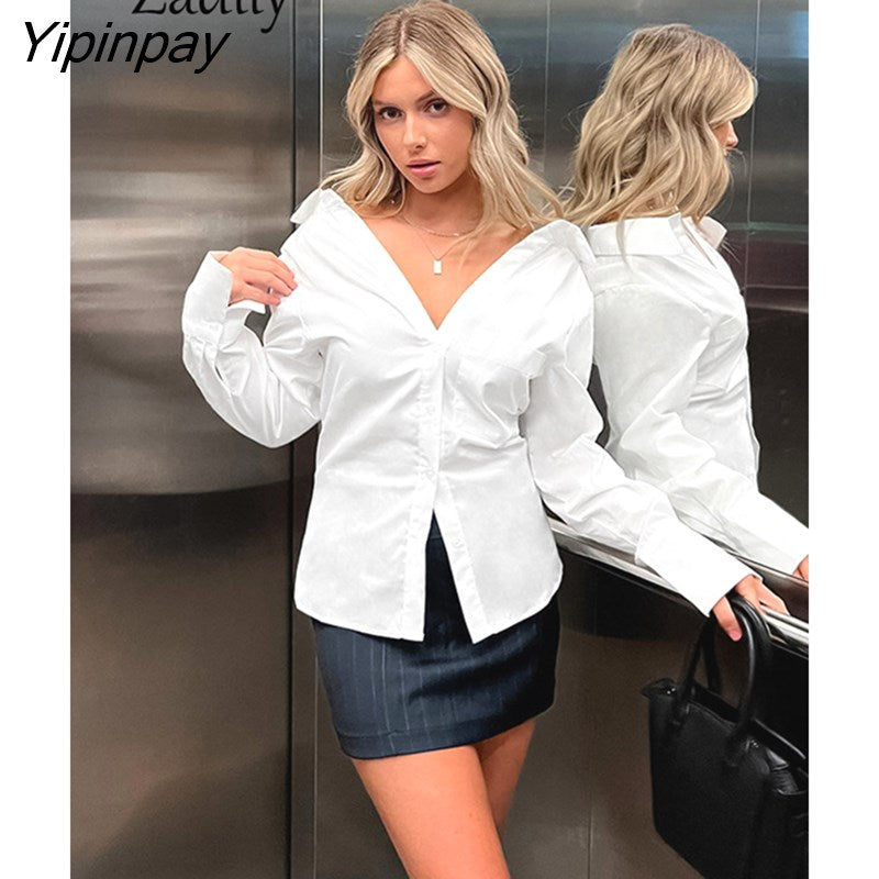 Yipinpay 2023 Minimalist Spring Long Sleeve Sexy Women White Shirt Korea Style Button Slim Woman Tunic Blouse Party Clothing Tops