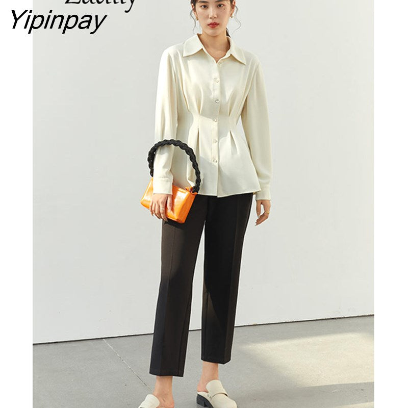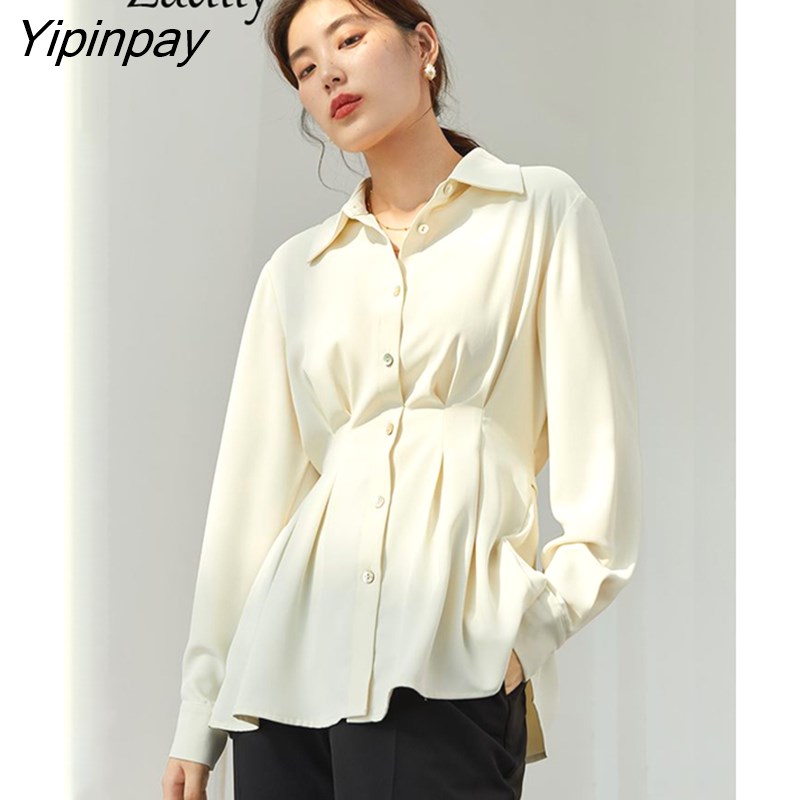 Yipinpay 2023 Spring Elegant Long Sleeve Women Shirt Korea Style Office Lady Belt Button Up Woman Blouse Work Female Top Clothing