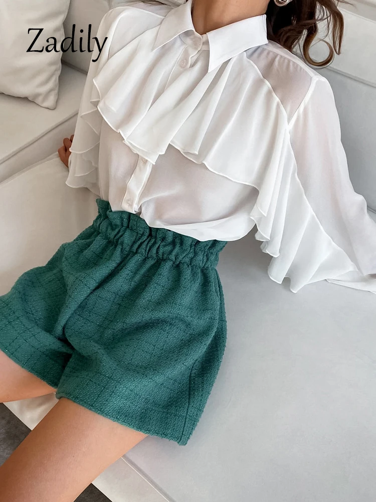 Yipinpay 2023 Spring New Elegant Long Sleeve Women White Shirt Office Lady Button Up Loose Ruffles Woman Blouse Work Clothing Top