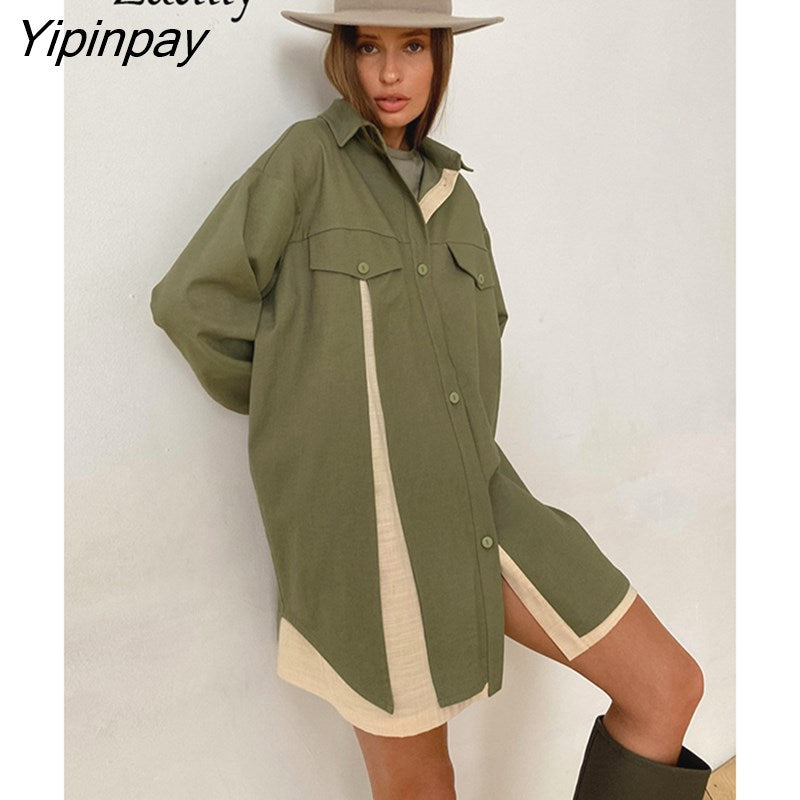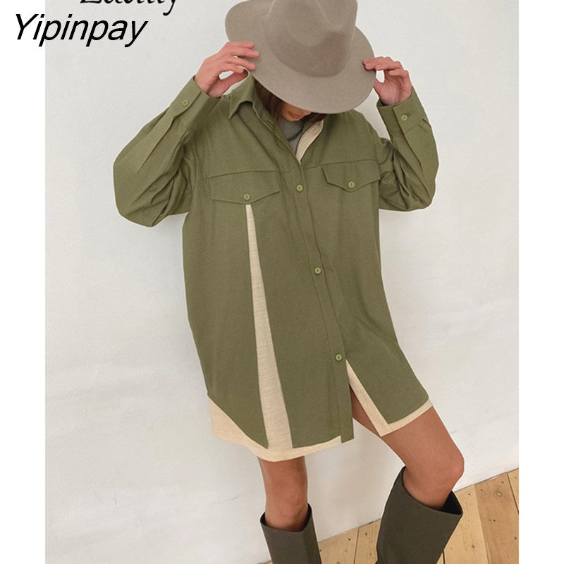 Yipinpay 2023 Spring New Full Sleeve Women Long Shirt Streetwear Patchwork Button Up Loose Woman Tunic Blouse Female Clothing Tops