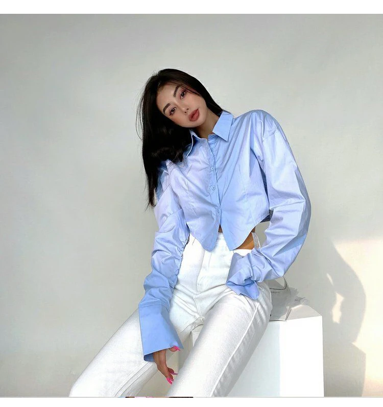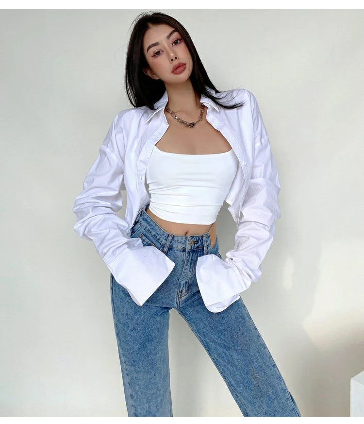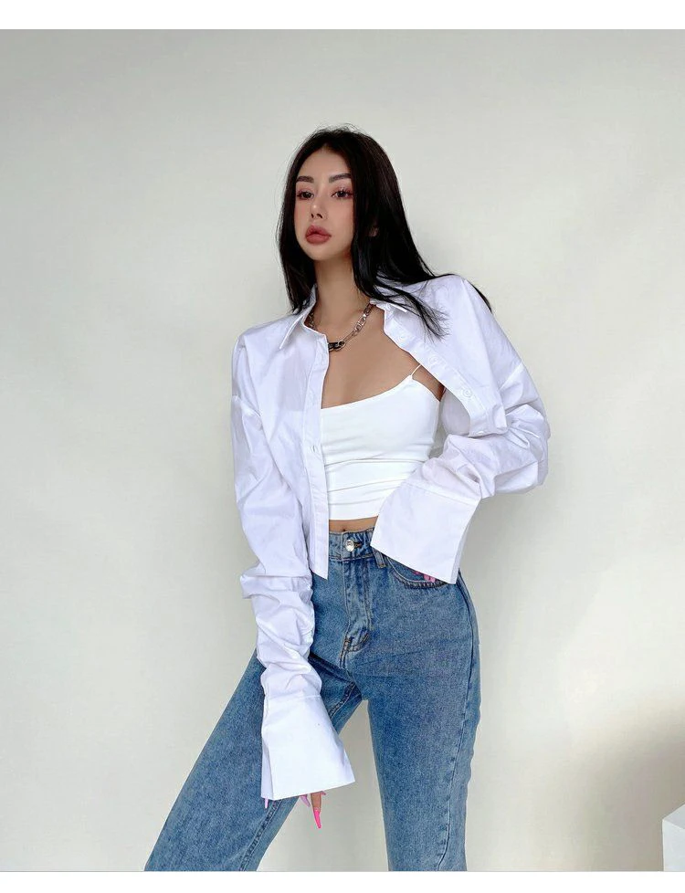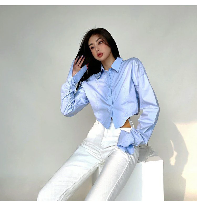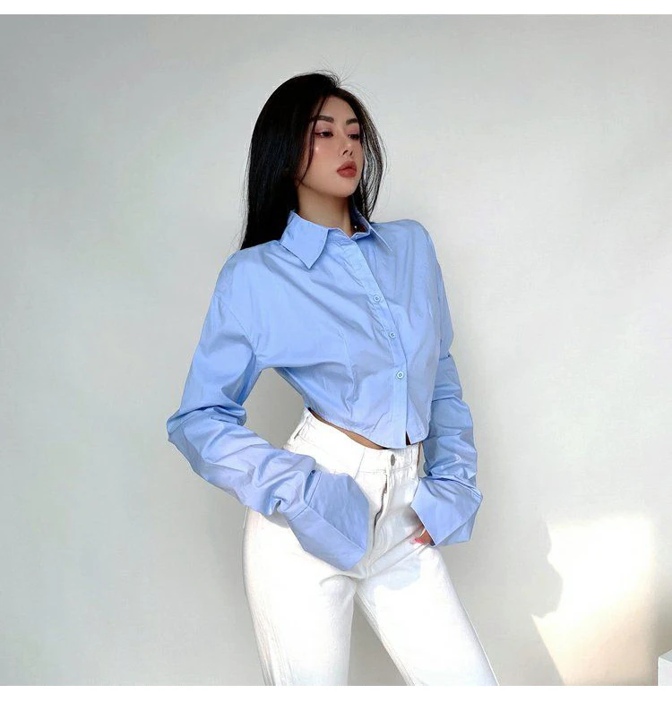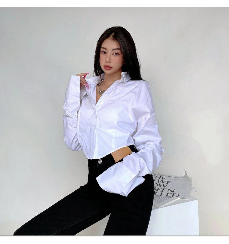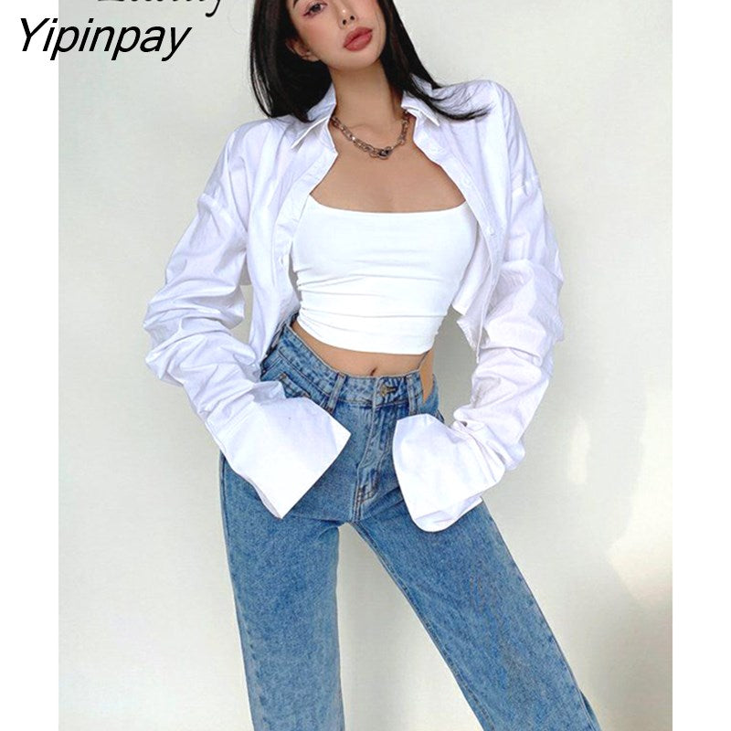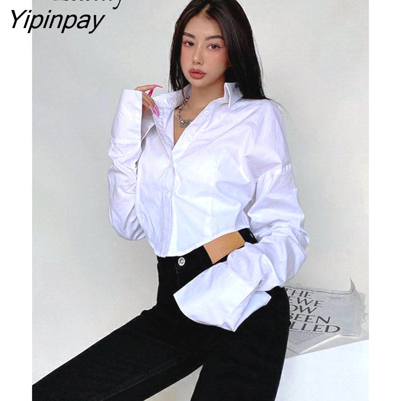 Yipinpay 2023 Spring New In Minimalist Long Sleeve Cotton White Shirt Y2K Loose Button Ladies Crop Tops Party Sexy Female Blouse