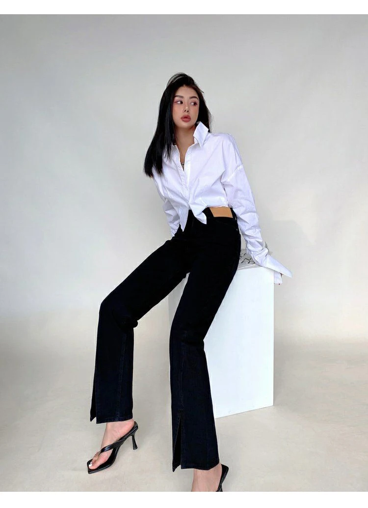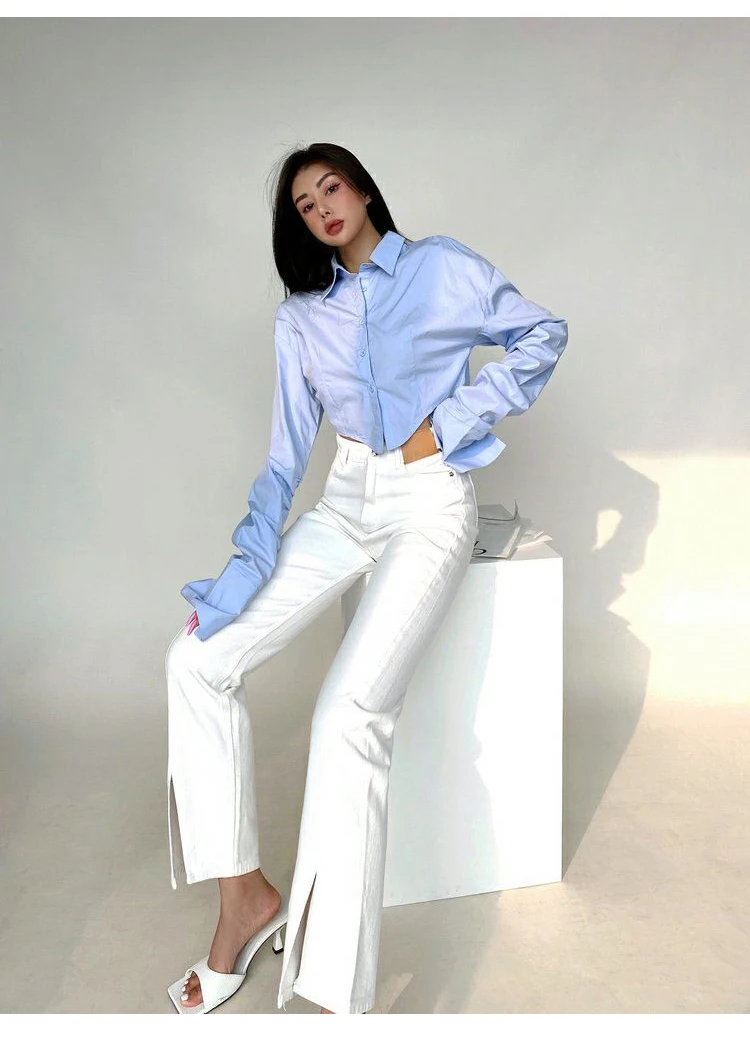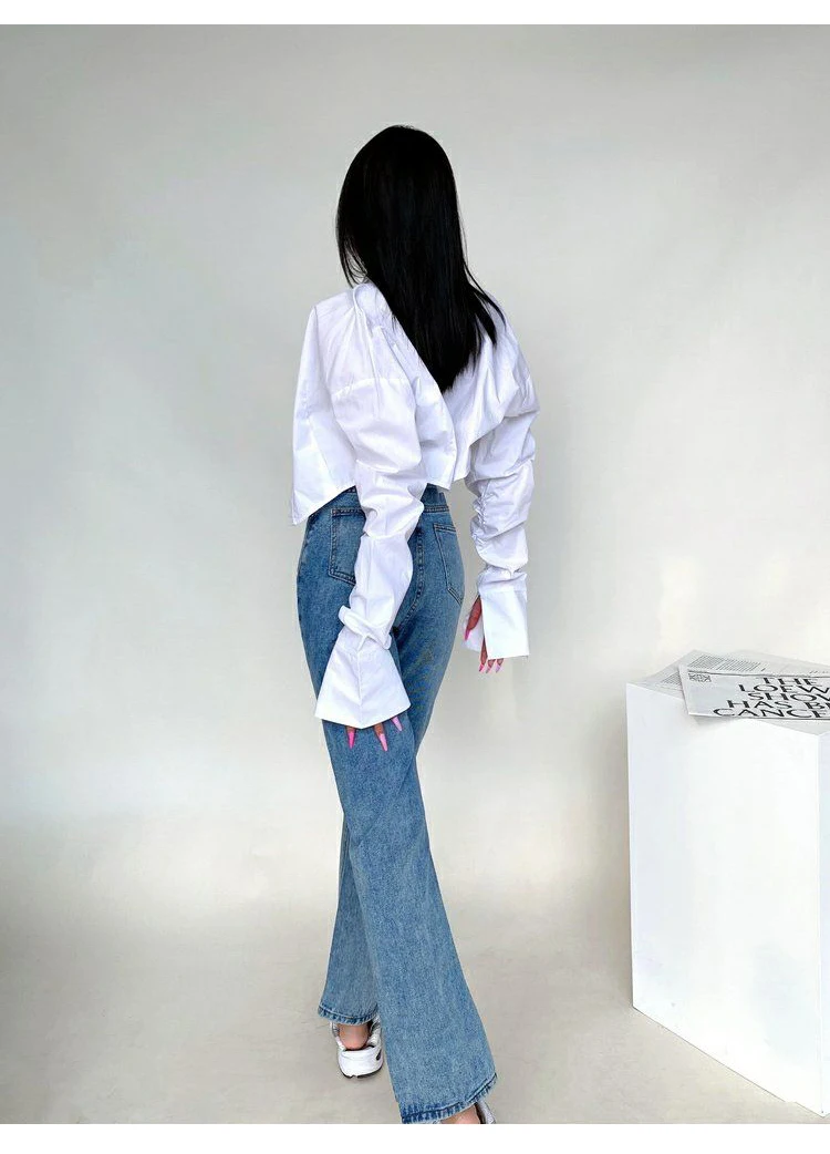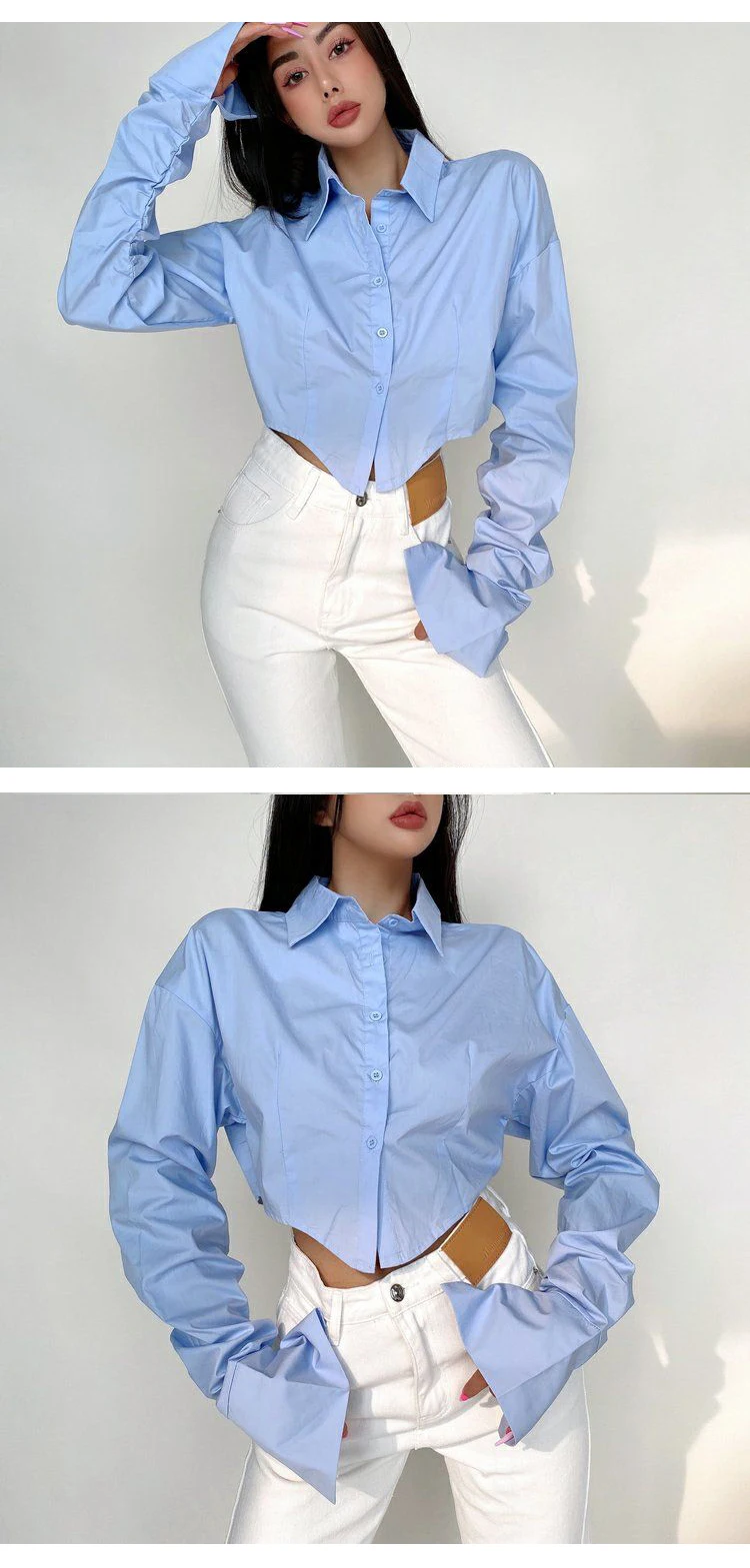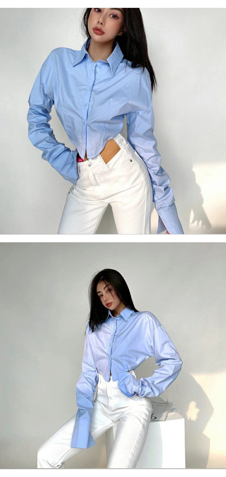 Yipinpay 2023 Spring New In Minimalist Long Sleeve Cotton White Shirt Y2K Loose Button Ladies Crop Tops Party Sexy Female Blouse
