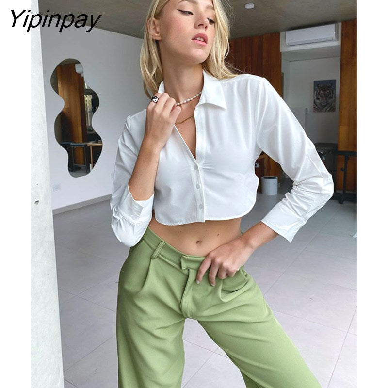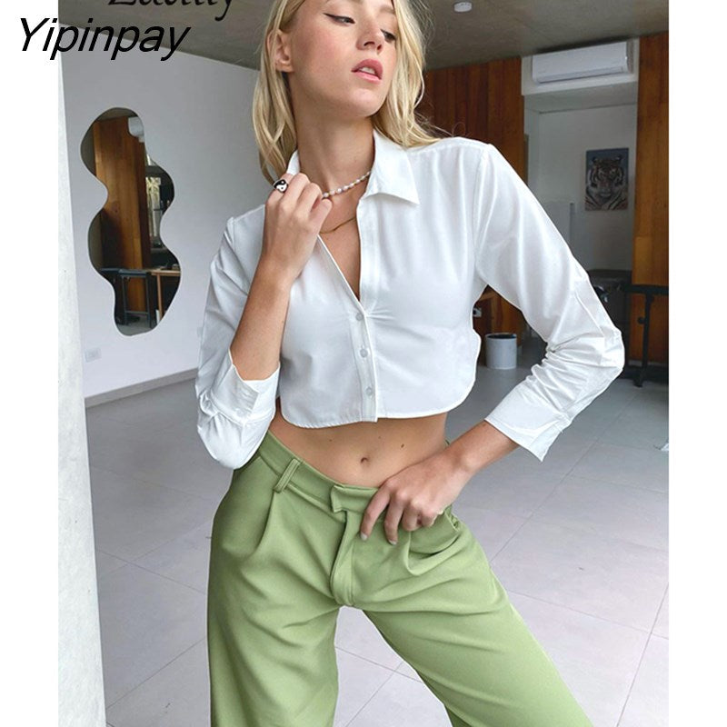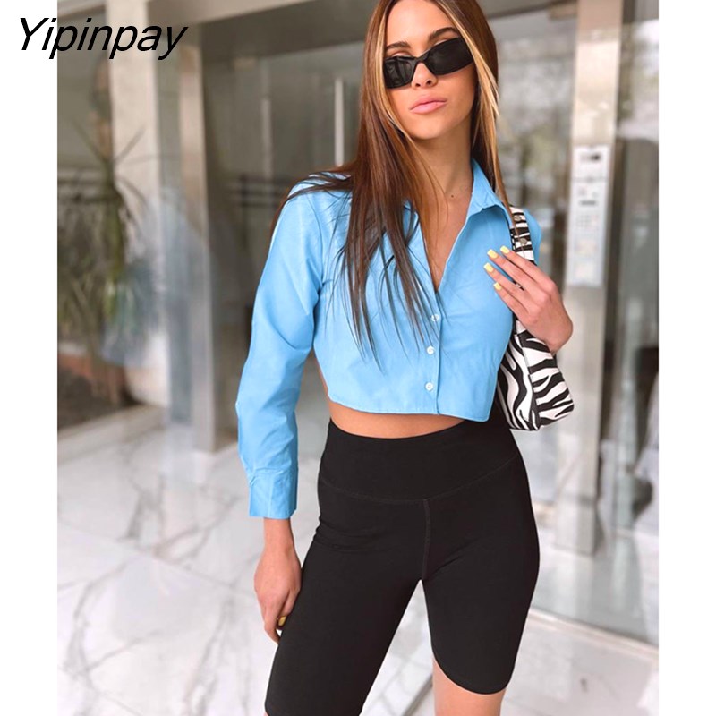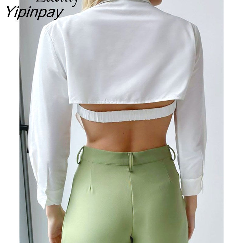 Yipinpay 2023 Spring New Sexy Slim Long Sleeve Backless Women Shirt Korea Style Button Up Womam Crop Tops Party Female Clothing