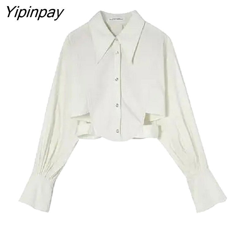 Yipinpay 2023 Spring New Streetwear Long Sleeve Women Shirt Korea Style Hollow Out Button Up Woman Crop Tops Blouse Party Clothing