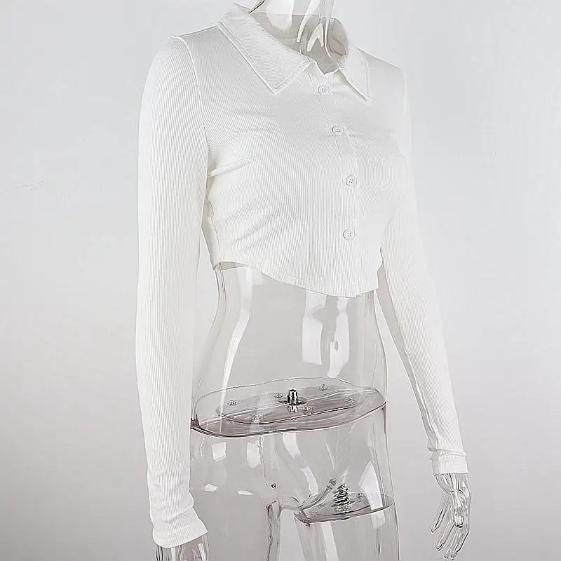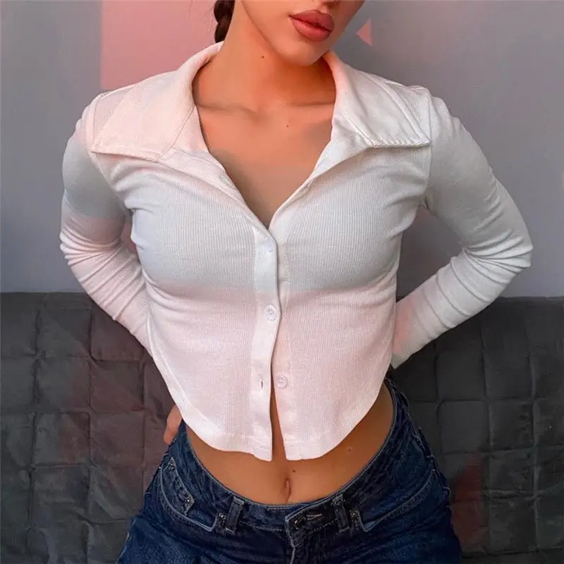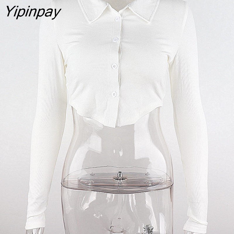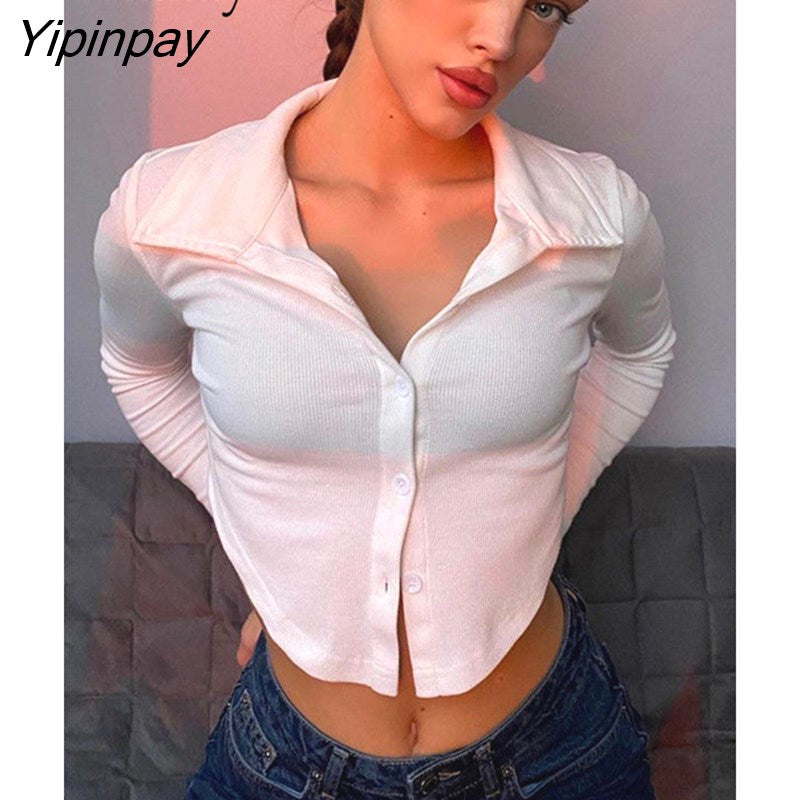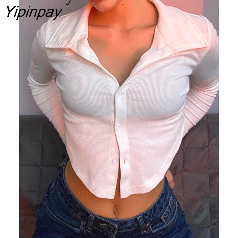 Yipinpay 2023 Summer New Long Sleeve White Shirt Women Slim Button Knit Ladies Crop Tops Sexy Party Female Blouse Clothing