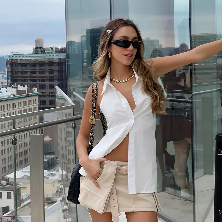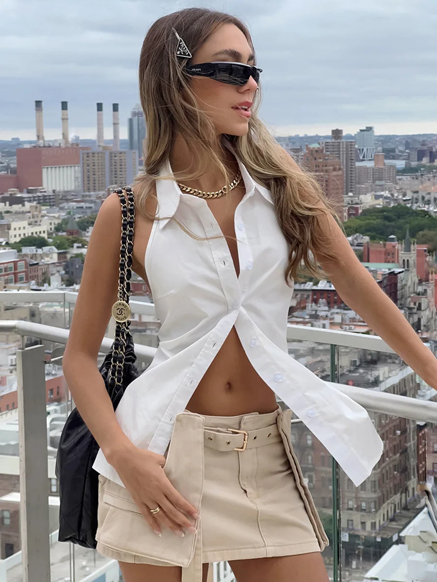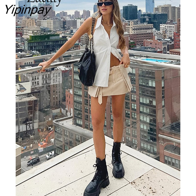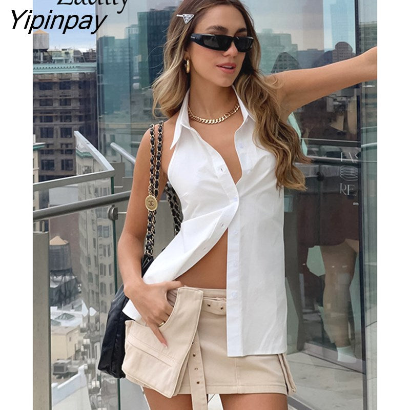 Yipinpay 2023 Summer Sexy Sleeveless Women White Shirt Y2K Slim Backless Button Up Bandage Woman Top Shirts Party Female Clothing