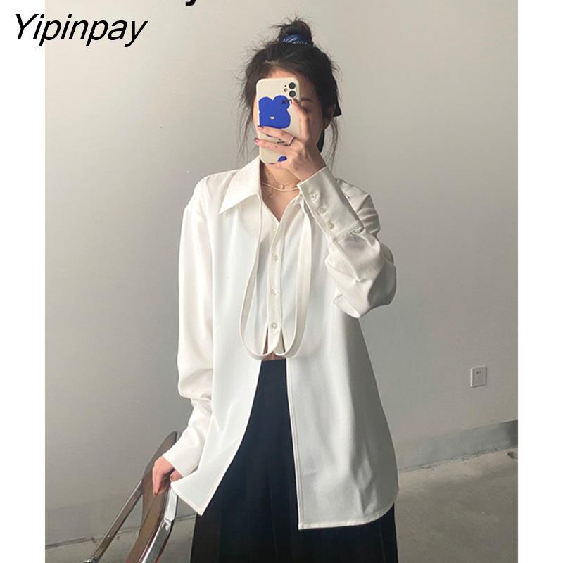 Yipinpay 2023 Summer Streetwear Long Sleeve Bandage White Shirt Women Korean style Button Up Casual Blouse Office Lady Female Tops