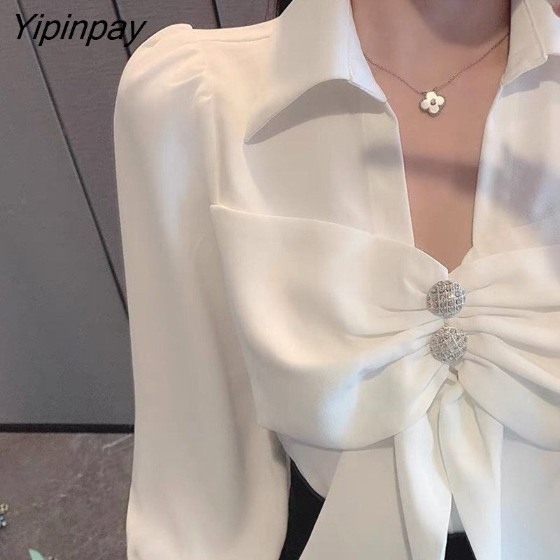 Yipinpay 2023 Summer Sweet JK Women White Shirt Long Sleeve Bow V Neck Chiffon Ladies Blouse Casual Party Female Clothing Tops