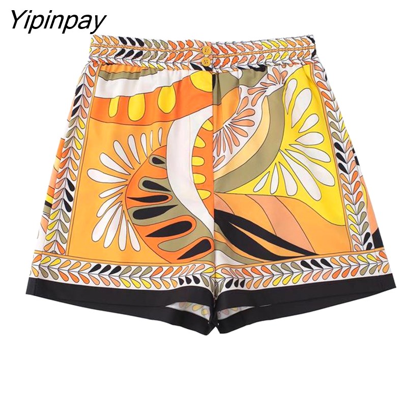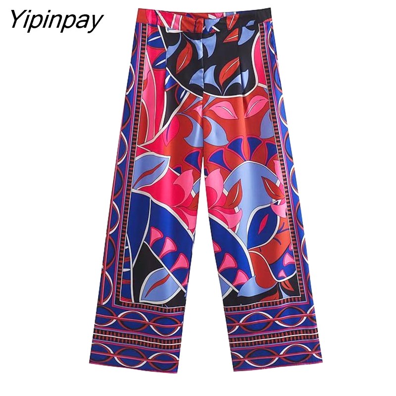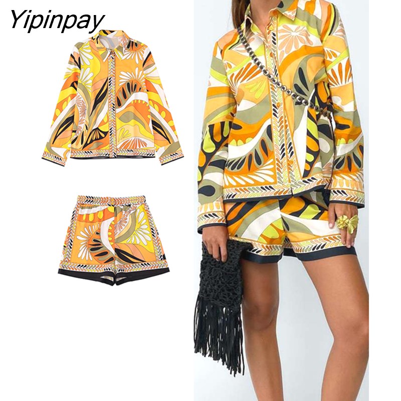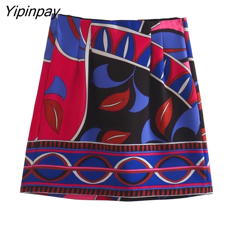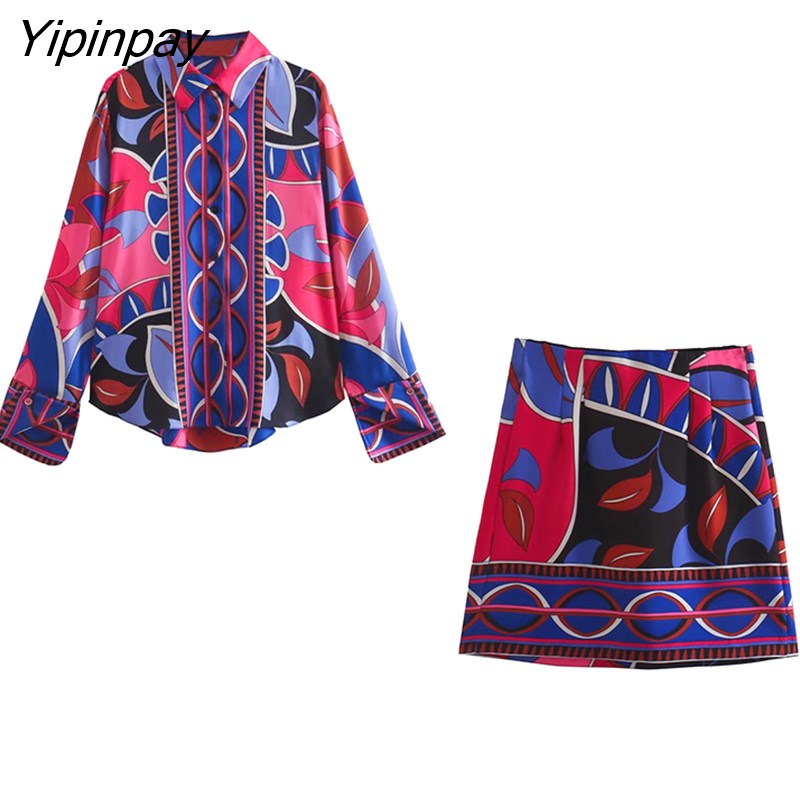 Yipinpay 2023 Summer Women 2PCS Print Blouses+Skirts Set New Turn Down Collar Long Sleeve Tops High Waist Dress Girl Outfits