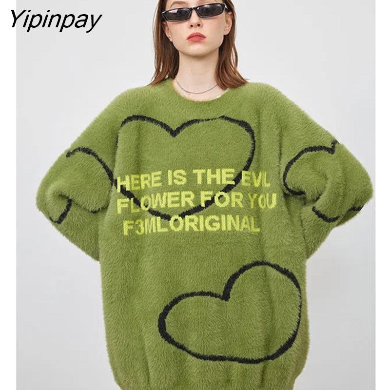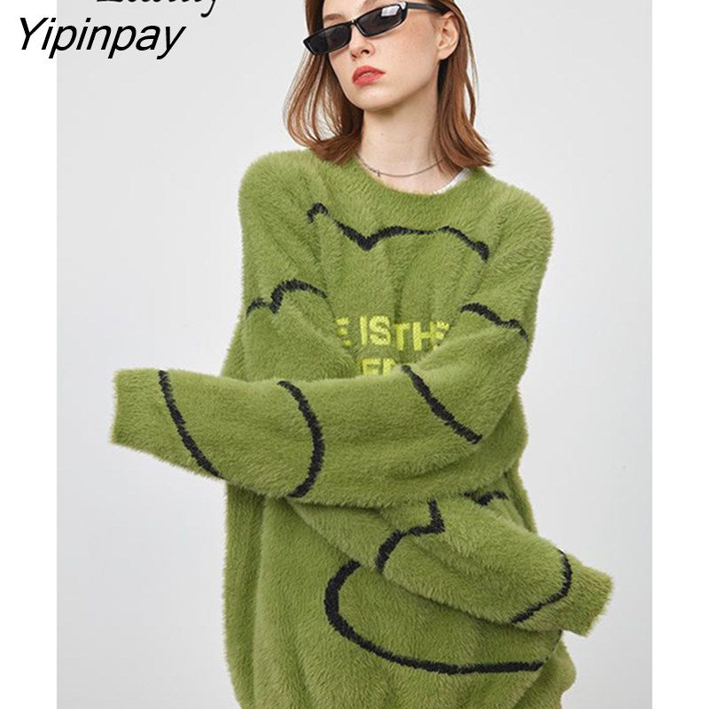 Yipinpay 2023 Winter Casual Long Sleeve Mohair Women Shirt Oversize Letter Embroidery Loose Ladies Knit Pullover Female Thick Tops