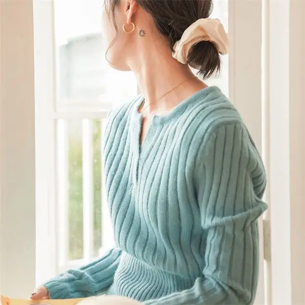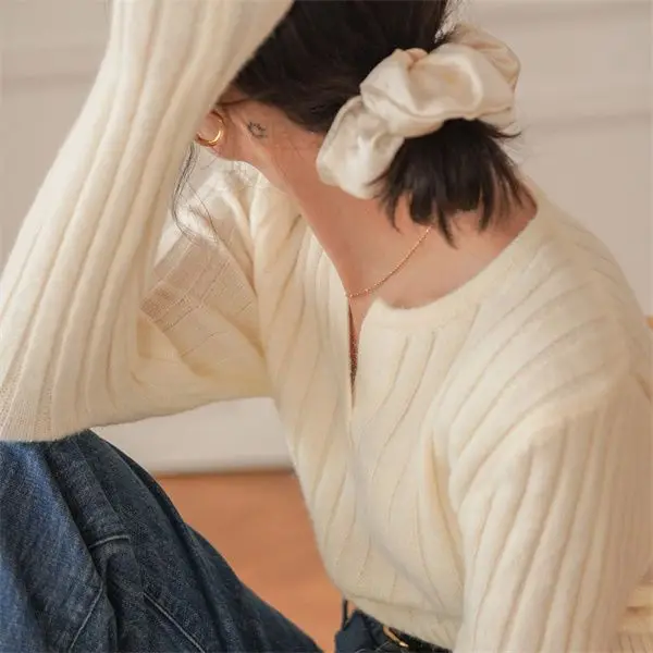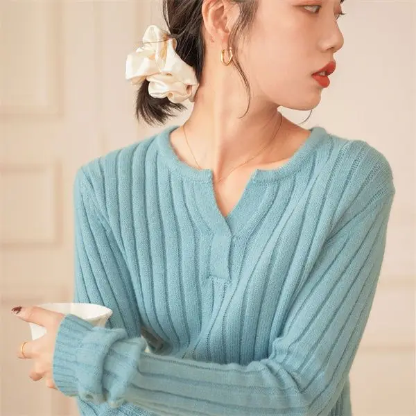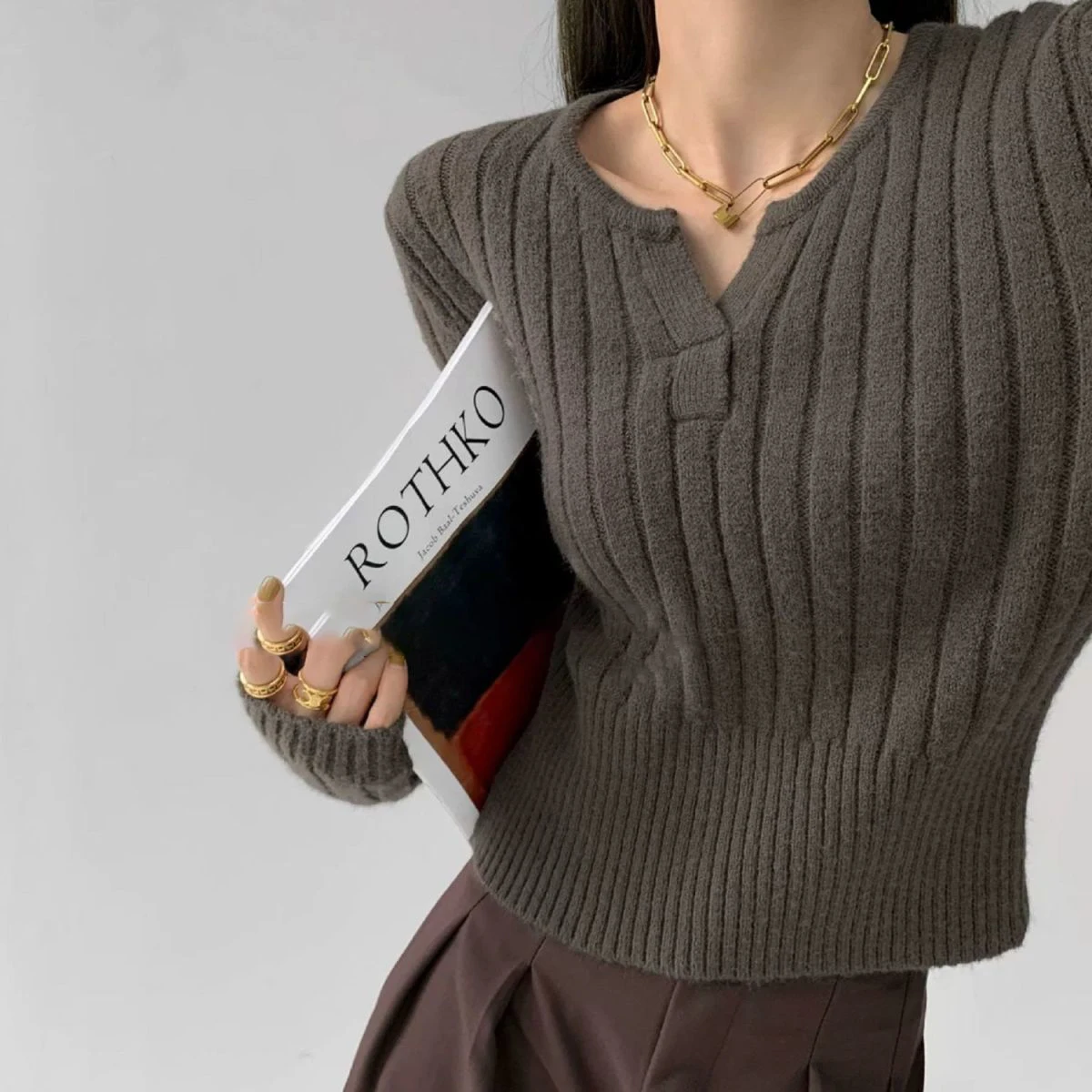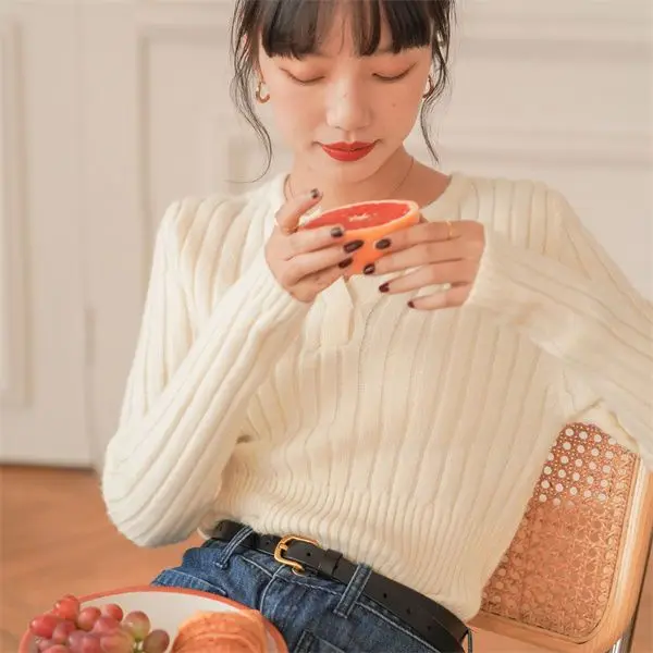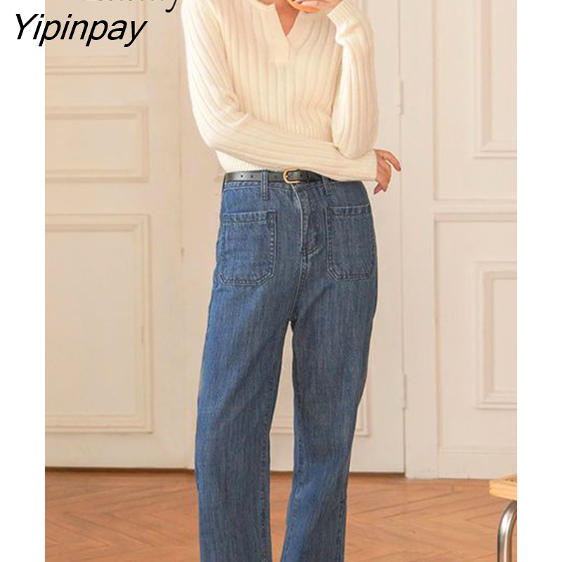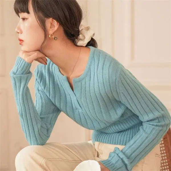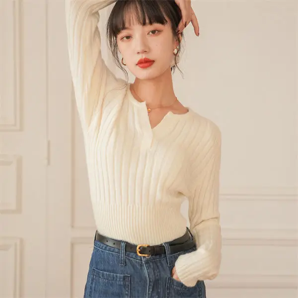 Yipinpay 2023 Winter Korean Style Long Sleeve V Neck Sweater Women Minimalist Slim Crop Tops Ladies Knit Pullovers Female Clothing