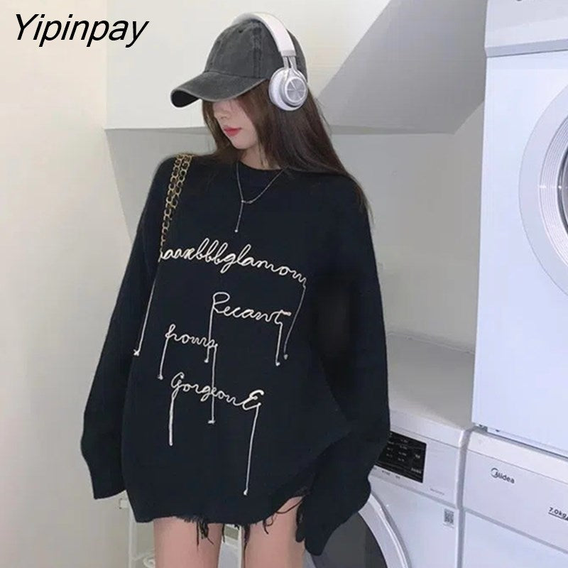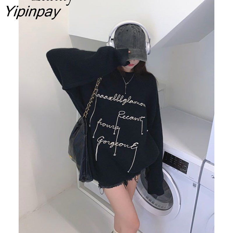 Yipinpay 2023 Winter Streetwear Oversize Letter Print Women Sweatshirt Korean Style O Neck Long Sleeve Ladies Hoodies Female Tops