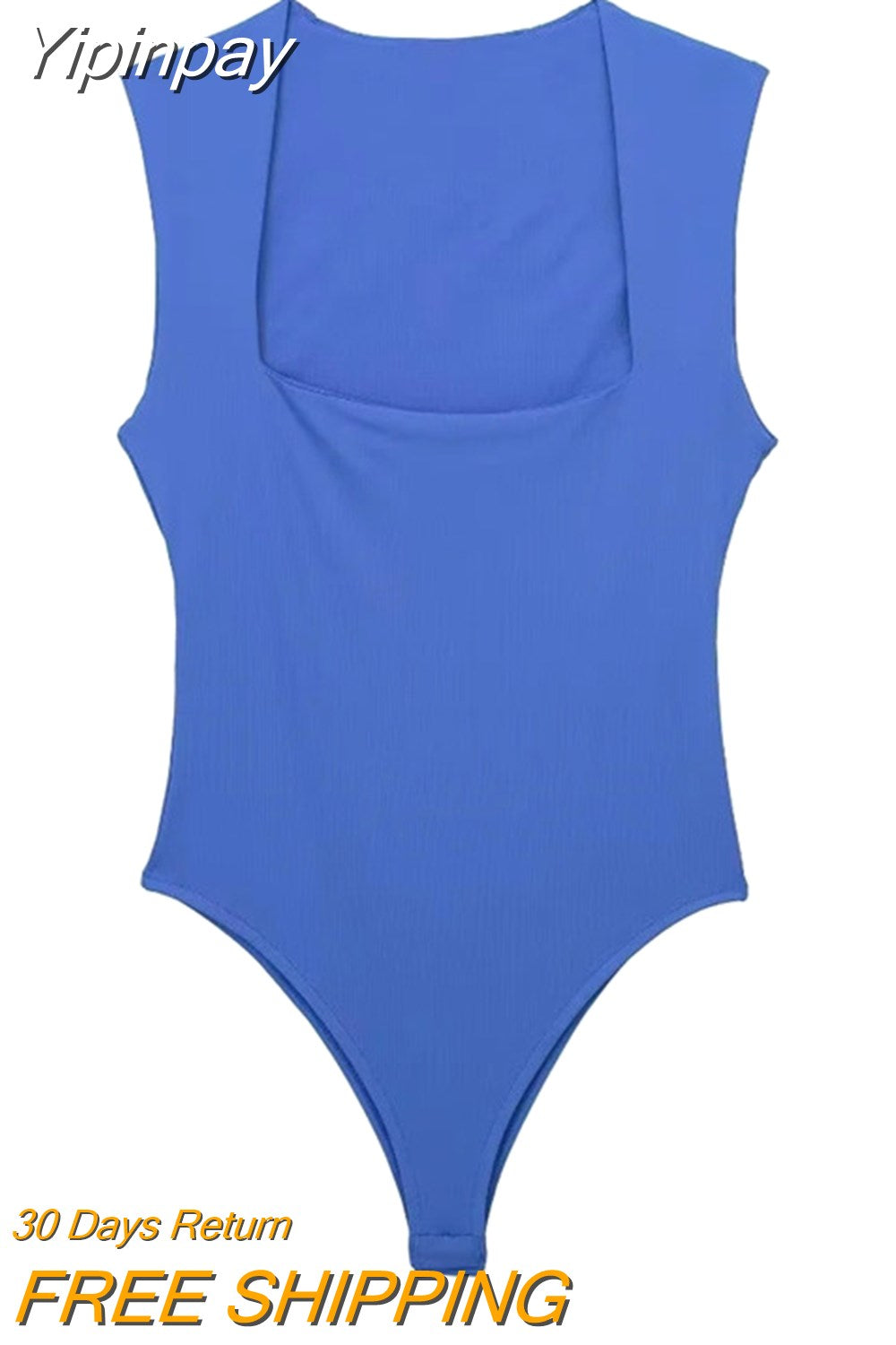 Yipinpay 2023 Woman Bodysuit Black White Body Woman Square Neck Sleeveless Bodysuit Women Bodycon Sexy Lingerie Women's Summer Tops