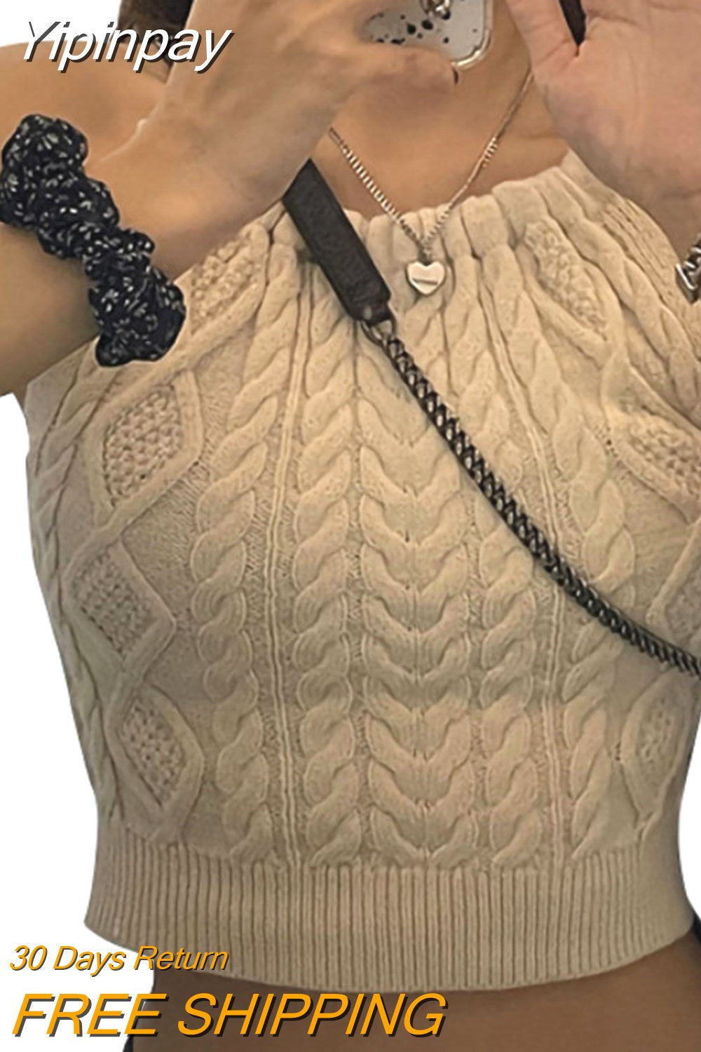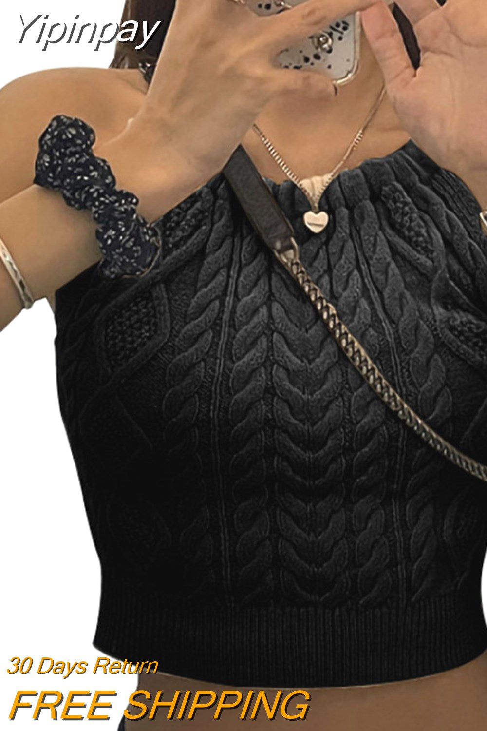 Yipinpay Autumn Ladies Sexy Camisole Crop Tops Girls Solid Color Tie Up Slim Sleeveless Base Shirt Midriff-baring Knitted Tops