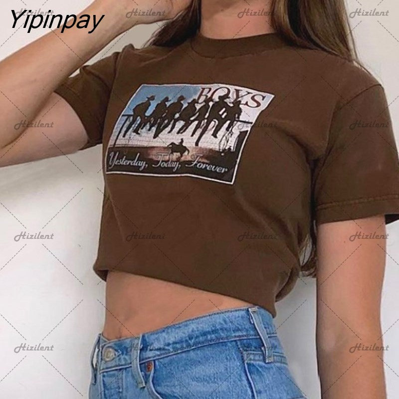 Yipinpay Beautiful Graphics printing Tops Summer Goth Y2k Crop Top Harajuku O-neck Short Sleeve Punk Tee Tops Female T Shirts emo