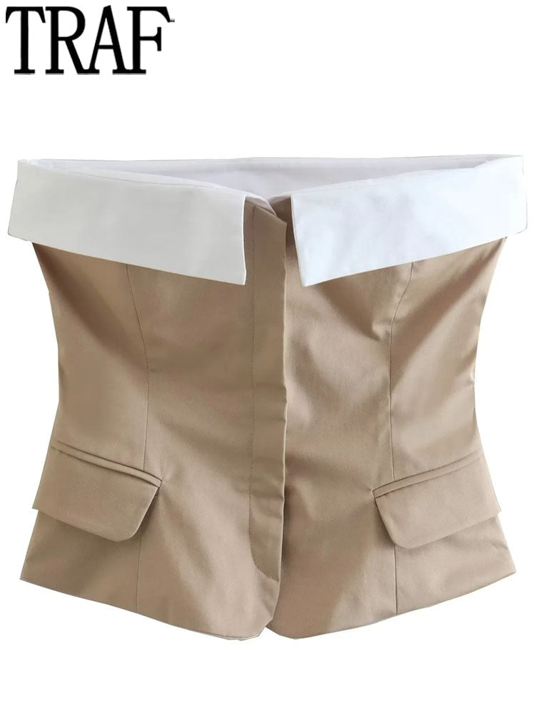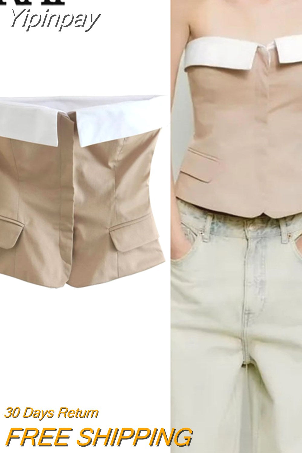Yipinpay Beige Corset Top Female Off Shoulder Crop Tops For Women Bustier Backless Sexy Tops Woman Fashion Y2k Sleevelss Tube Tops