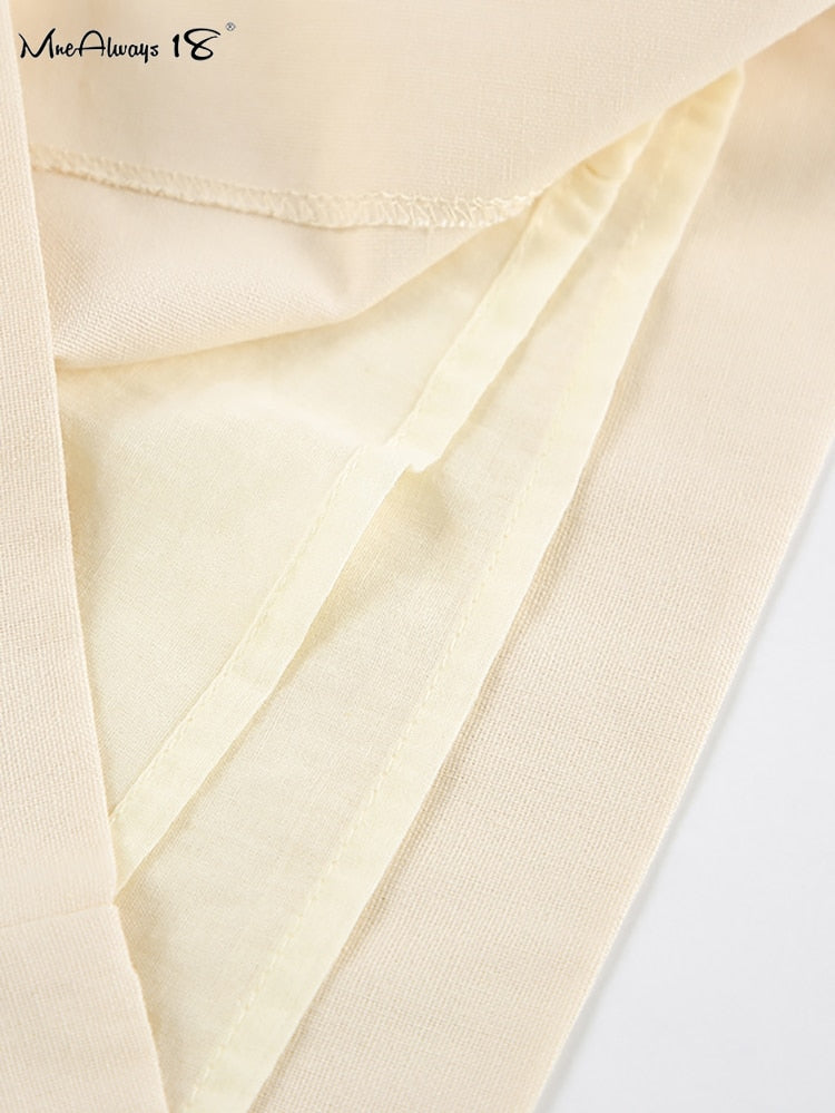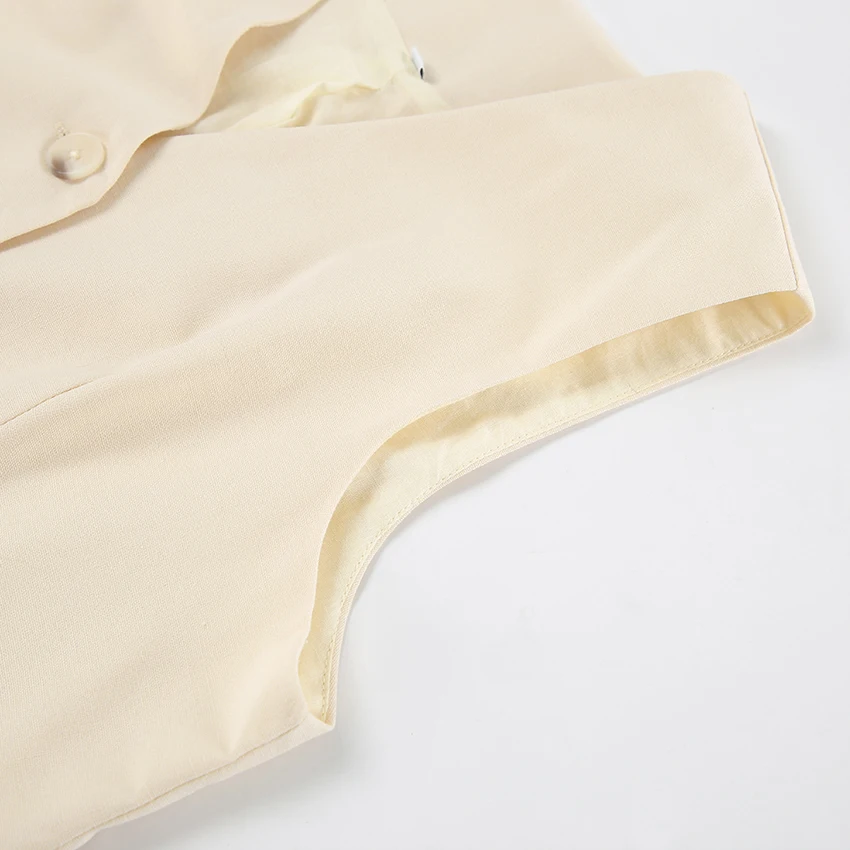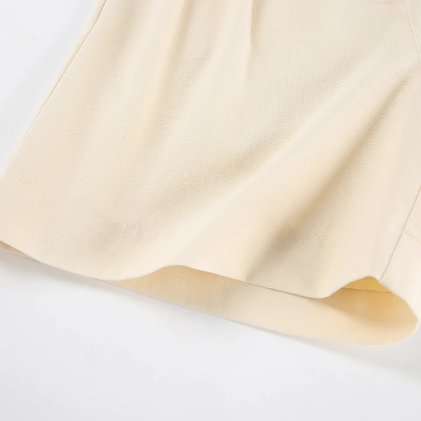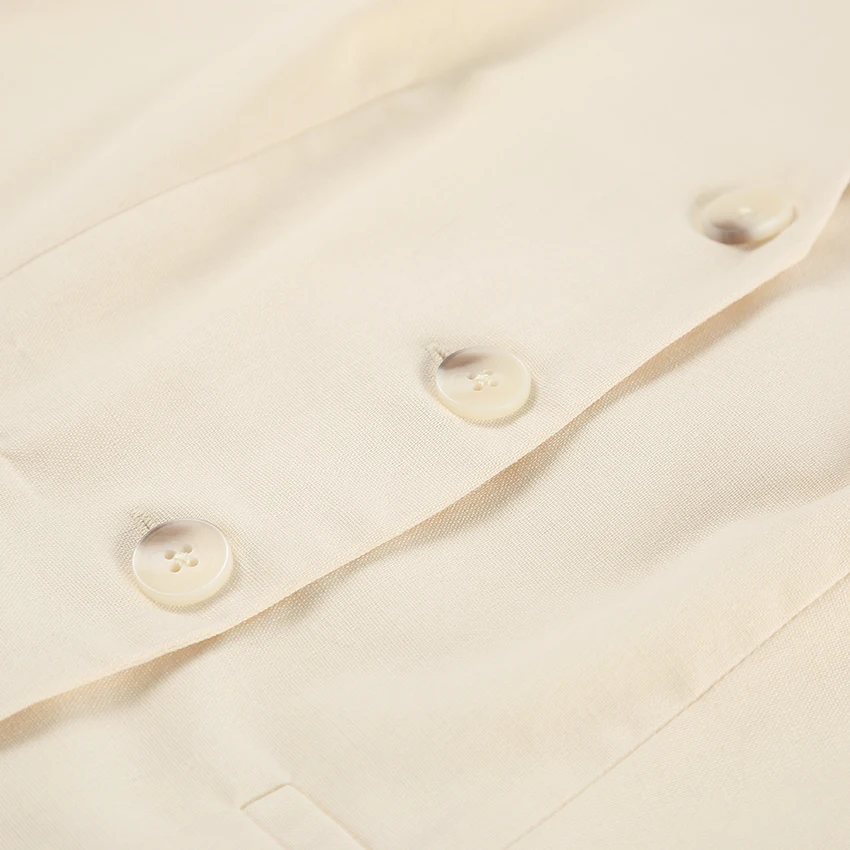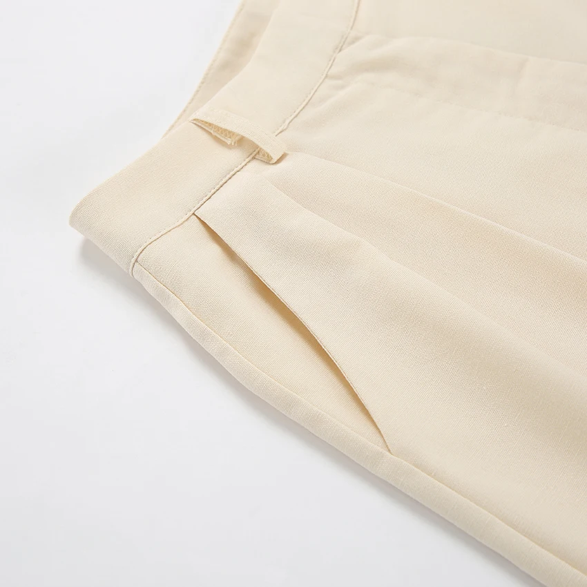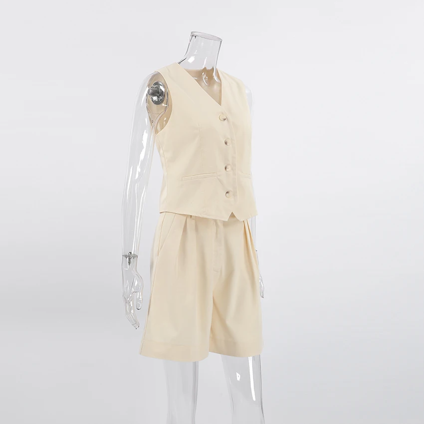 Yipinpay Beige Cotton Linen Blazer Suits 2-Piece Office Outfits Button Tank Tops And Wide Legs Shorts Casual Sets Summer 2023
