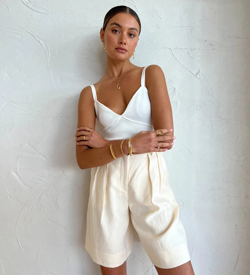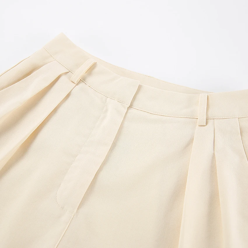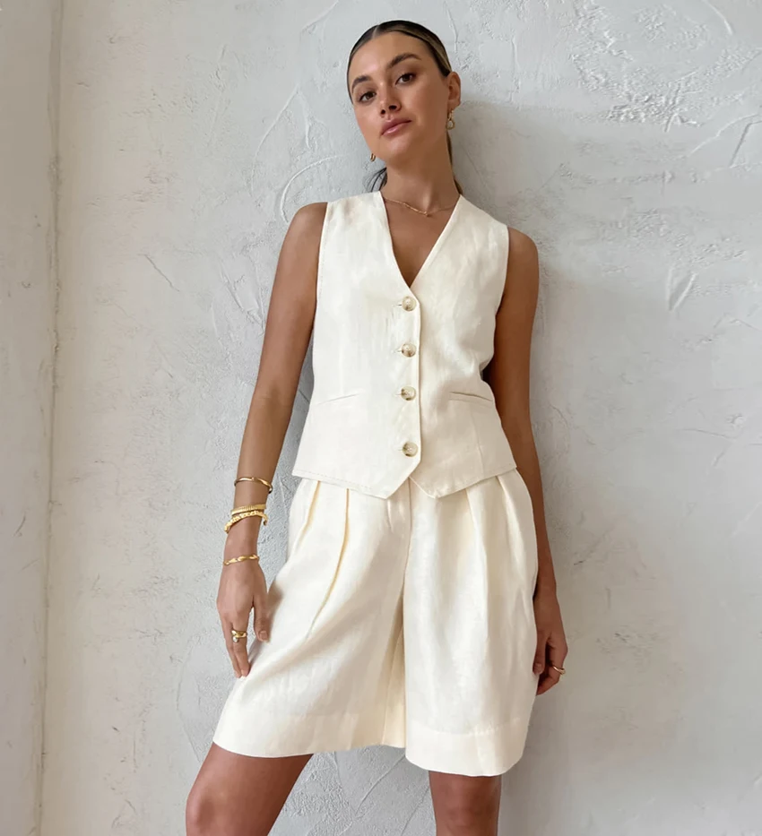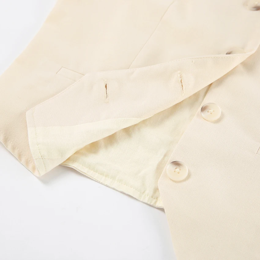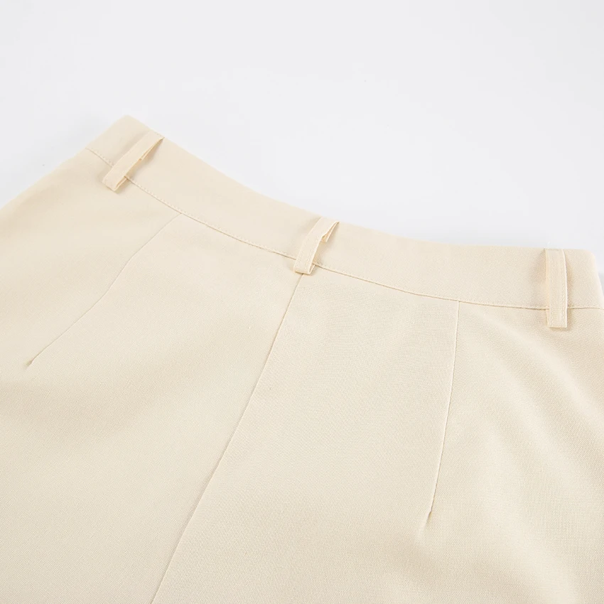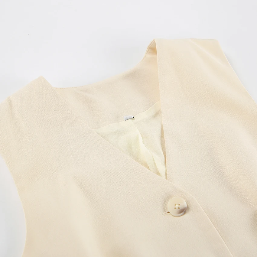 Yipinpay Beige Cotton Linen Blazer Suits 2-Piece Office Outfits Button Tank Tops And Wide Legs Shorts Casual Sets Summer 2023