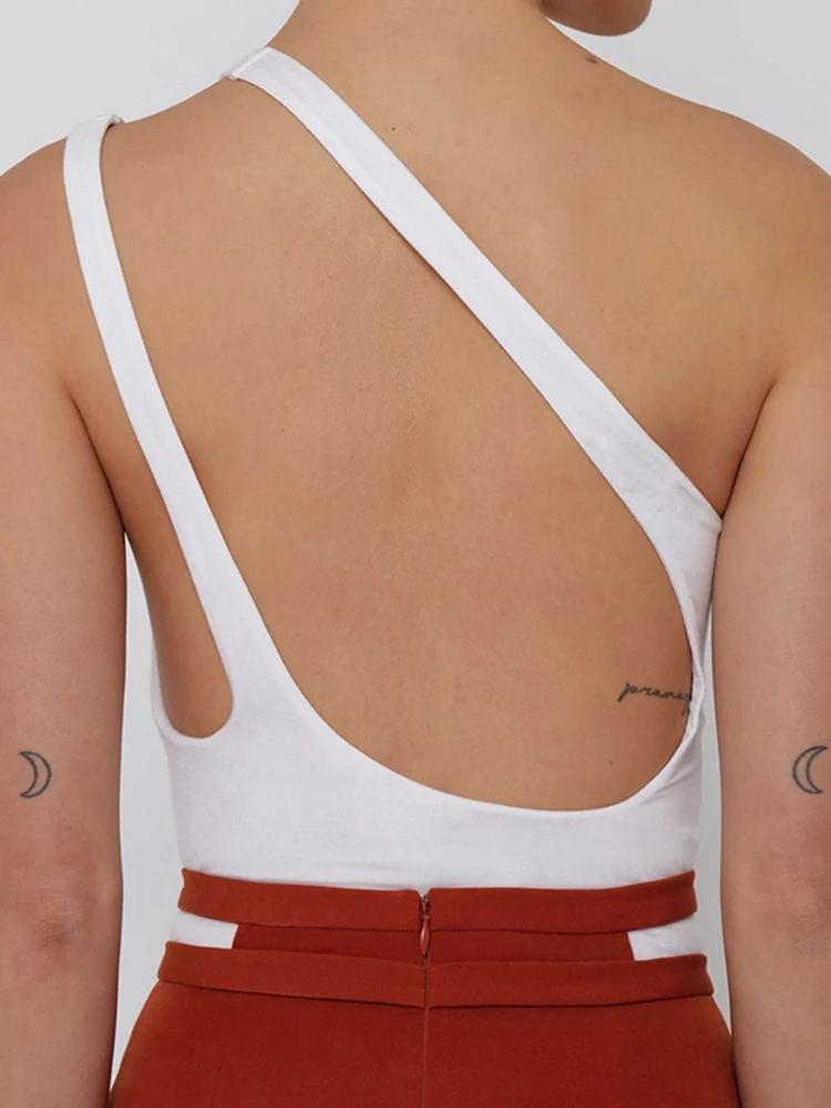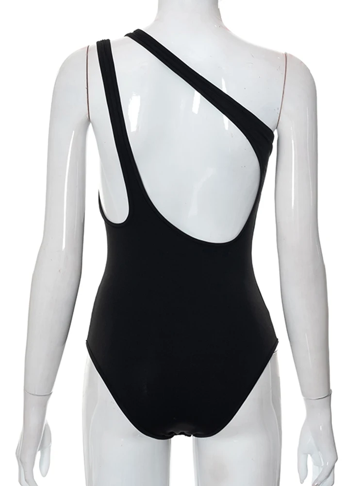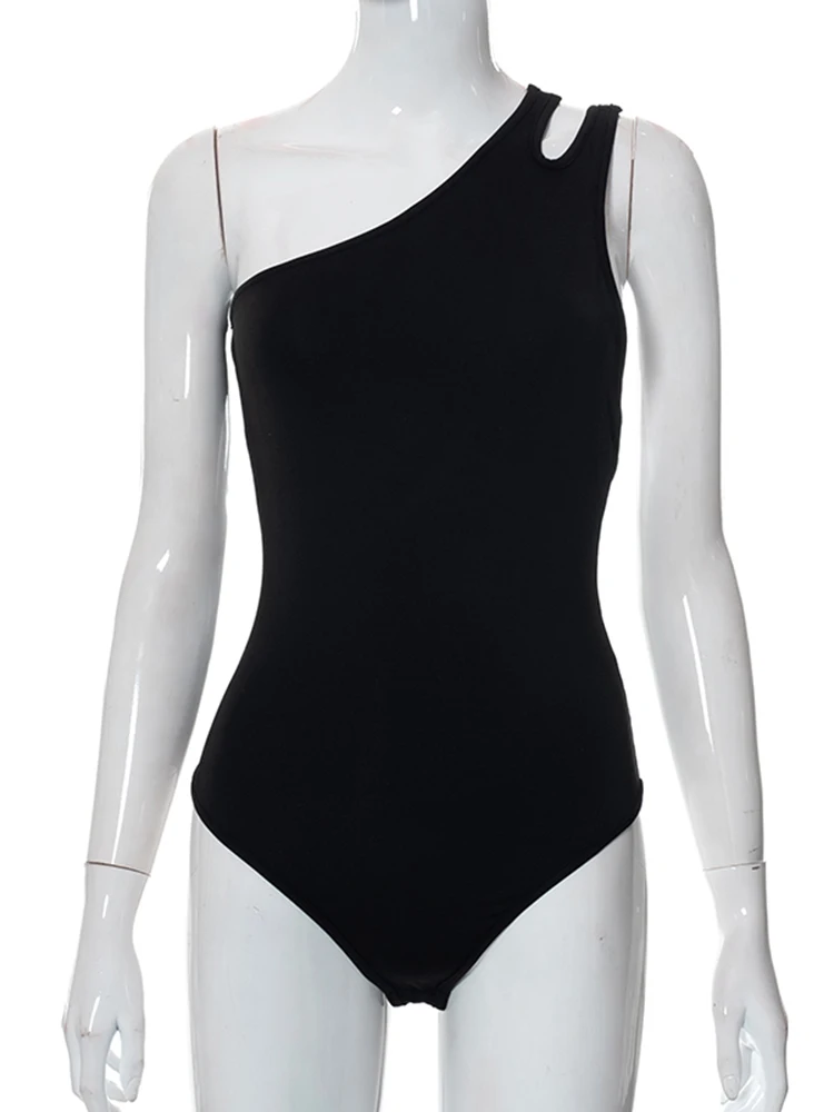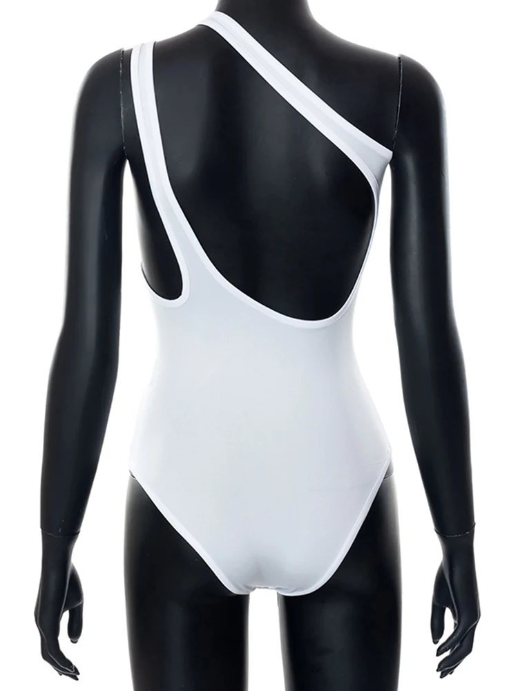 yipinpay Bodysuit Backless Top Women One Shoulder Bodysuits Cut Out Summer Overalls Body Femme Streetwear Skinny White Crop Top