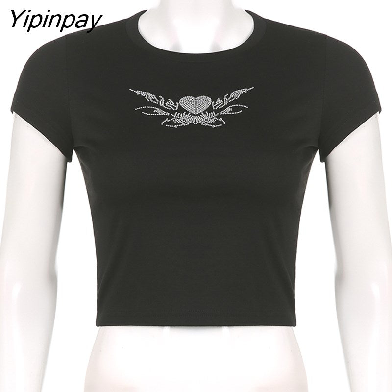 Yipinpay Butterfly Print 90s T Shirts Gothic Clothing Grunge Y2k Clothes Sexy Black Short Sleeve O-neck Crop Top T-shirt Women