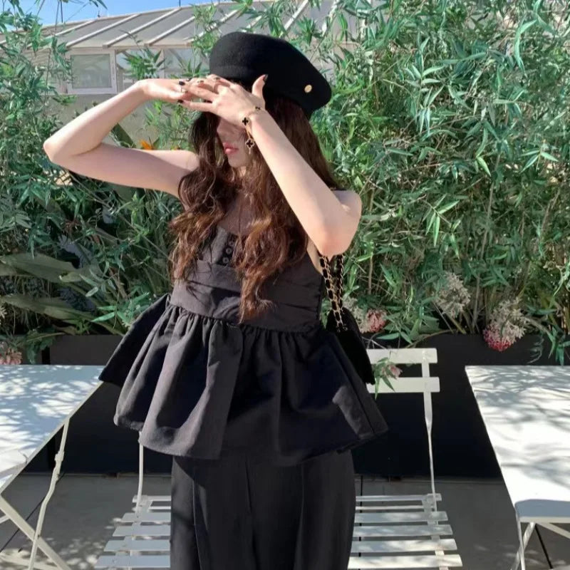 Yipinpay Camis Vintage Blouse Blusas Crop Tops Camisa Temperament Black Cake Doll Shirt Ruffled Women's 2023 Spring New Y2k French