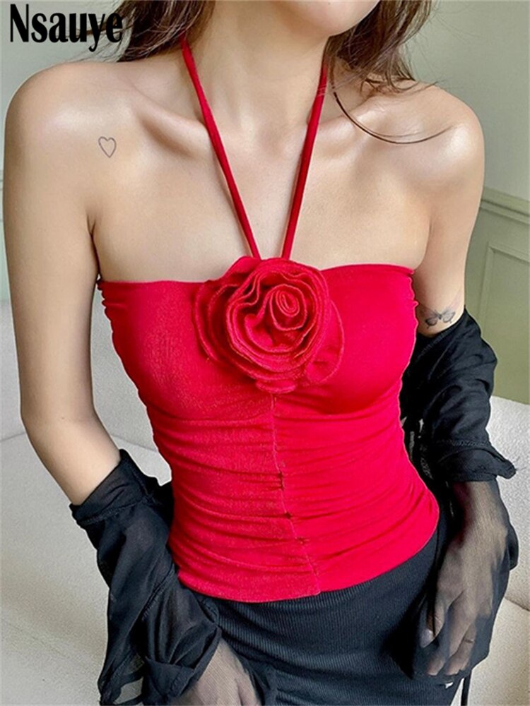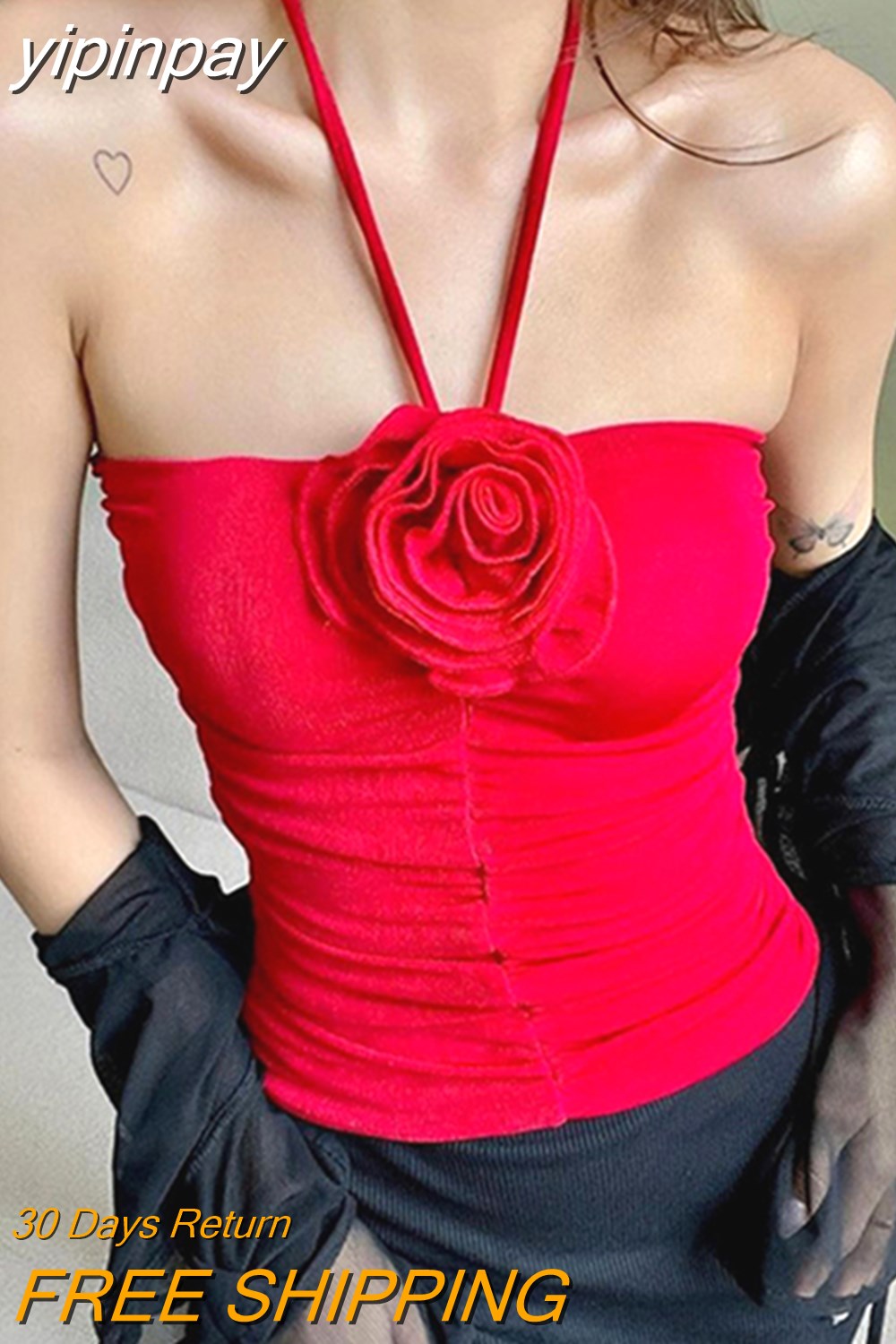 yipinpay Casual Sexy Summer Streetwear Mini Skinny Y2K Halter Women Crop Tops 2023 Club Party Fashion Vest Ruched Tank Tops