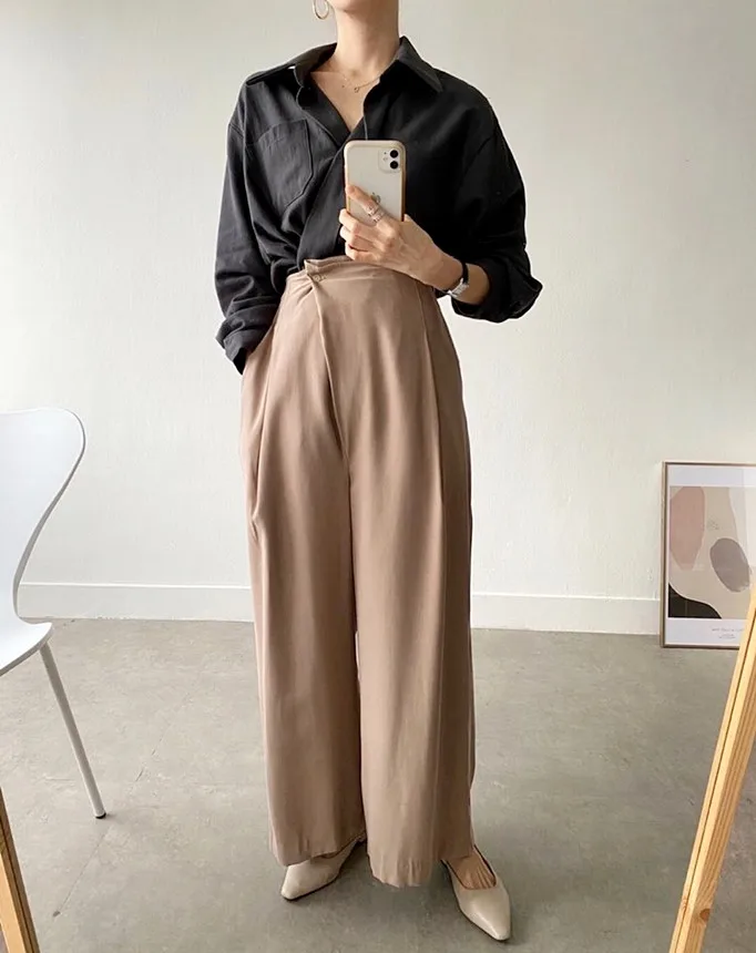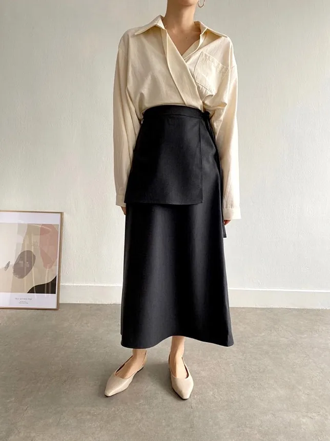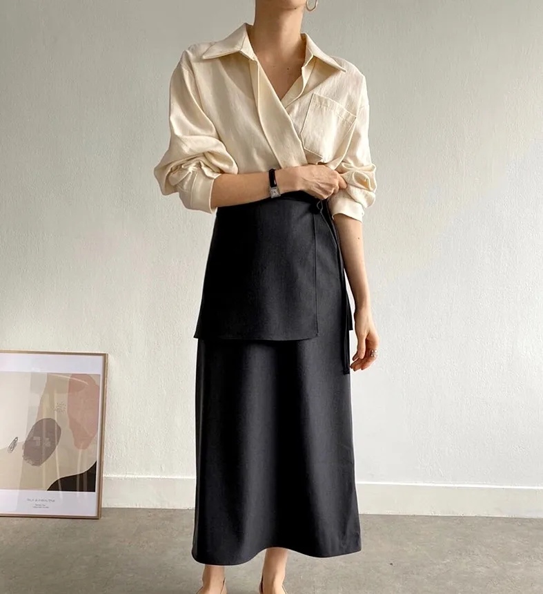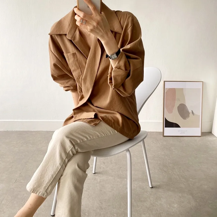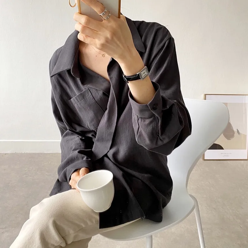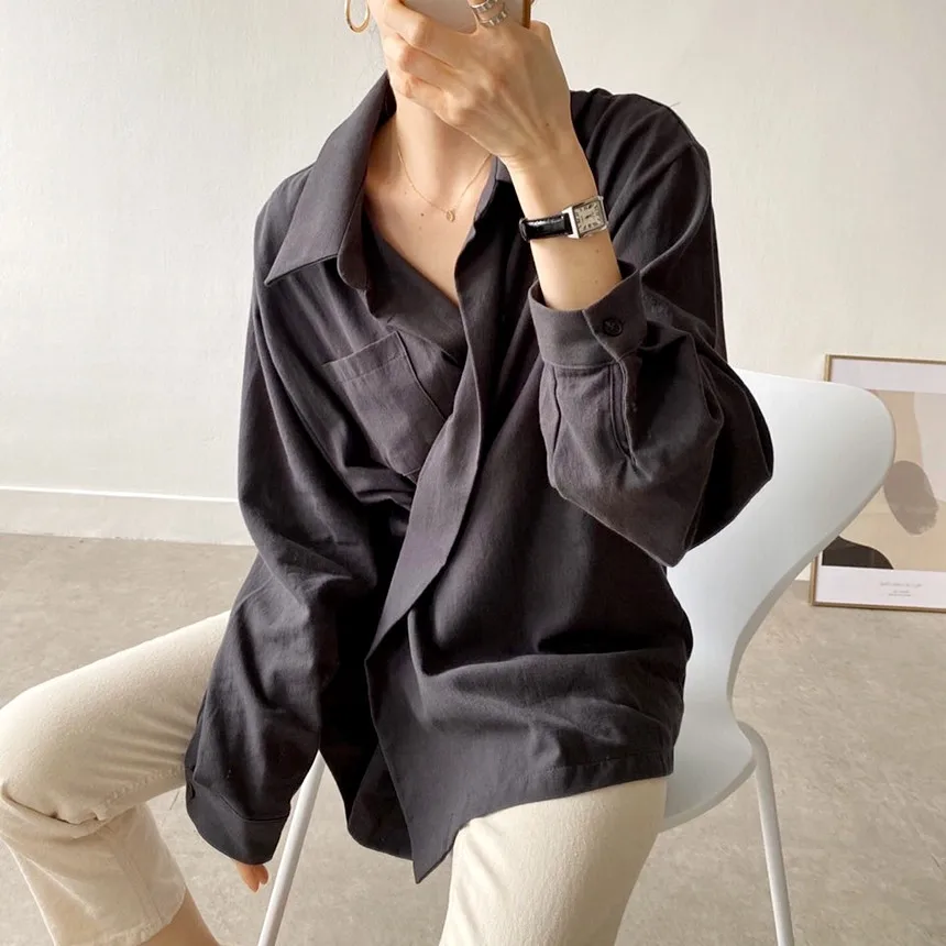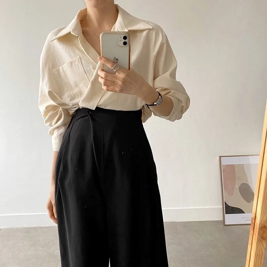 Yipinpay Chic Lapel Blouse Women Fashion Elegant Long Sleeve Shirts Office Ladies Spring Autumn New Cross Loose Tops