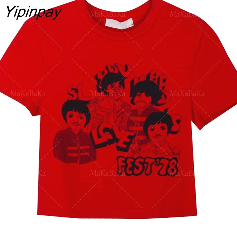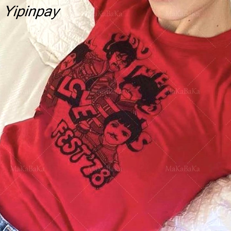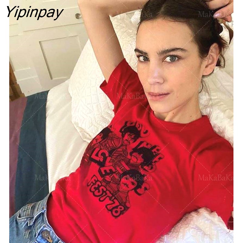 Yipinpay clothes letter graphic Fairycore grunge Summer baby Crop Tops 2000s Harajuku Goth Short Sleeve Female T-shirts emo scene