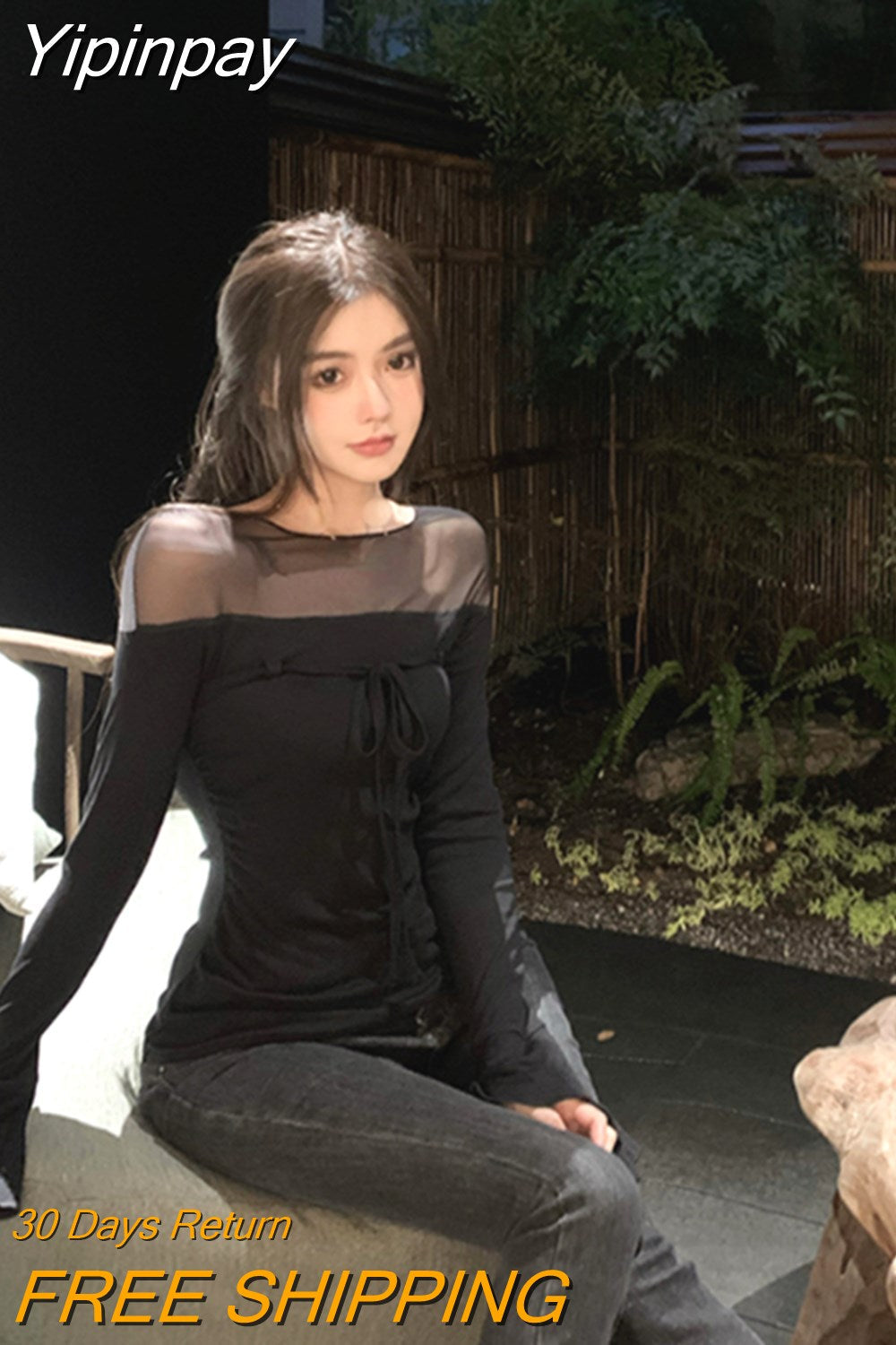 Yipinpay Color Basic Y2k Tops Woman Woman Design Korean Style Long Sleeve Pullover Casual Elegant Fashion Clothing 2023 Spring Chic