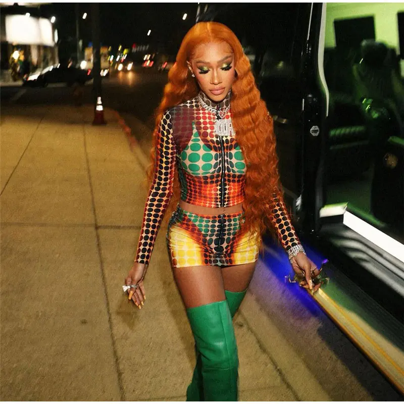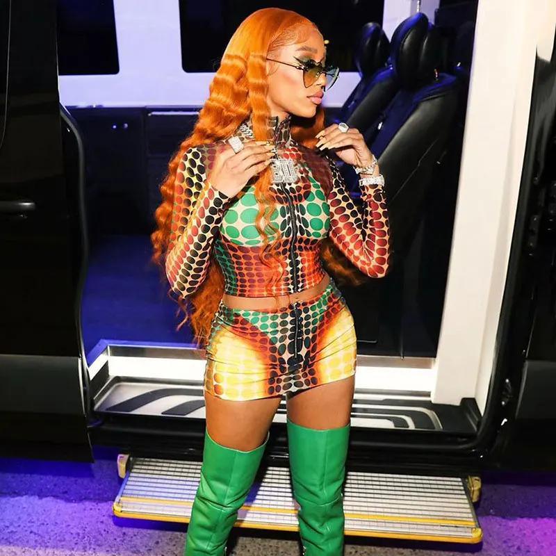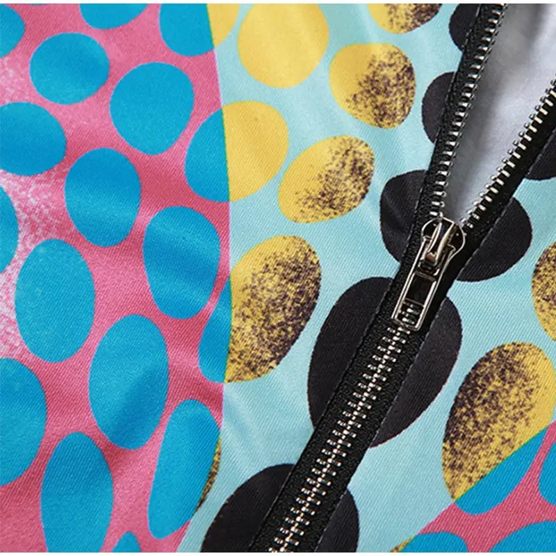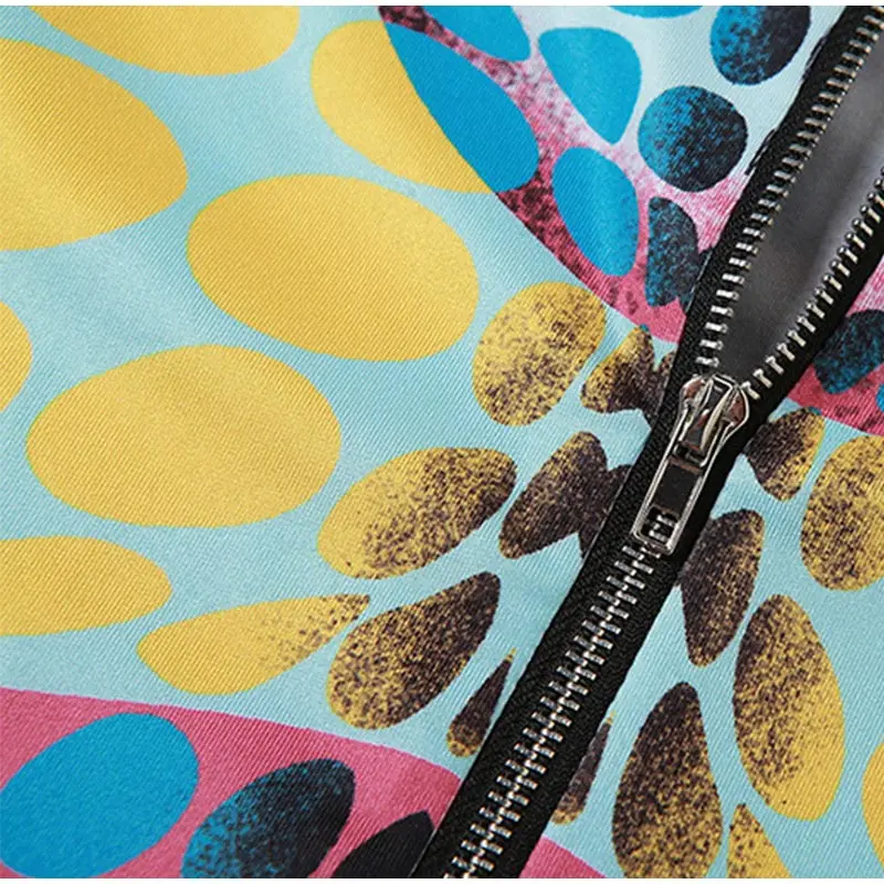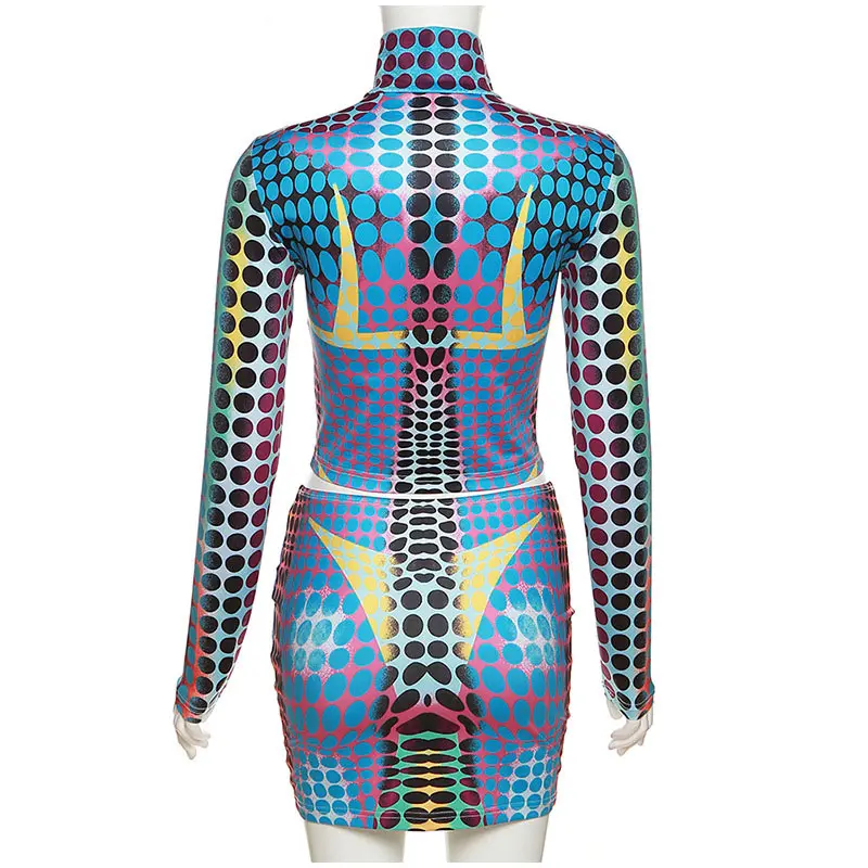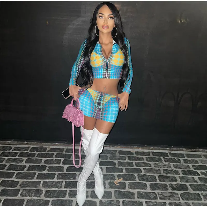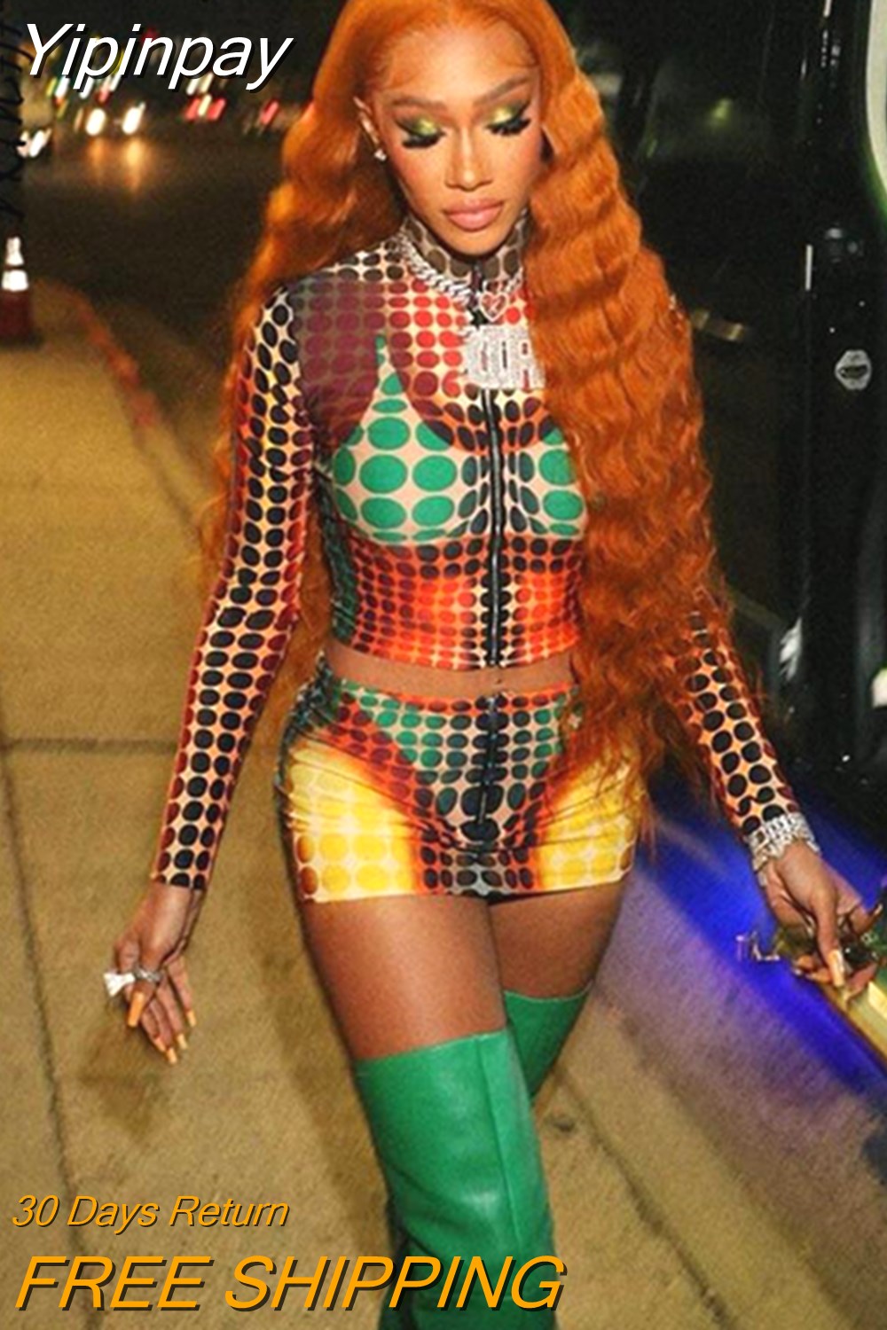 Yipinpay Colourful Dot Printed Skirt 2piece Set Stand Neck Zipper Long Sleeve Tops And Mini Skirt Suit 2023 Trend Street Outfit
