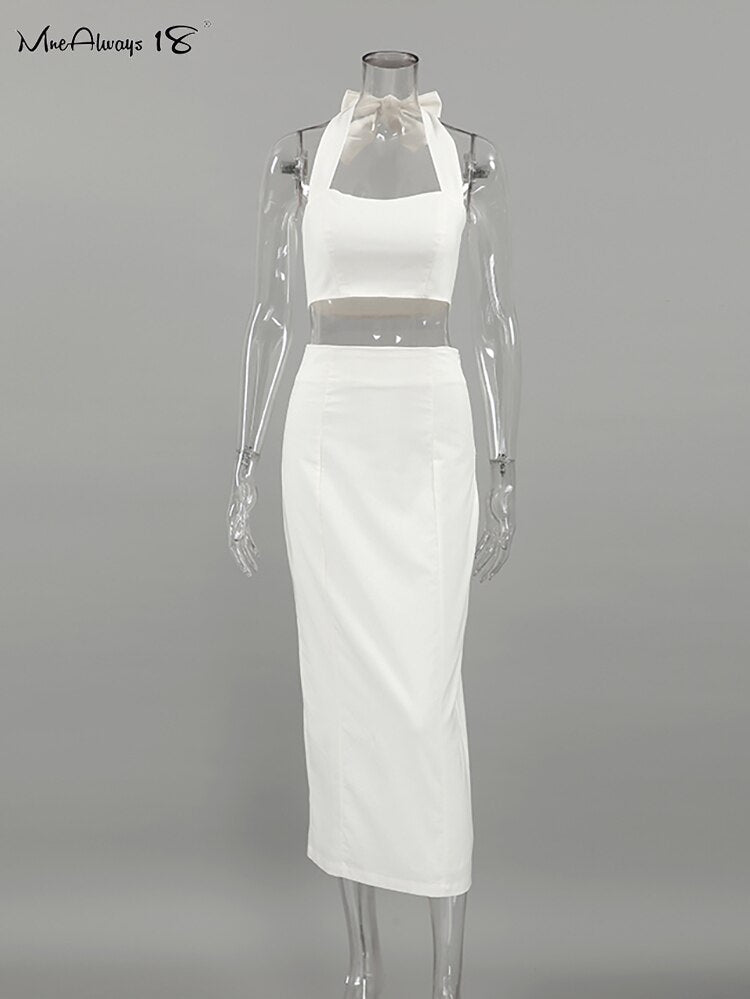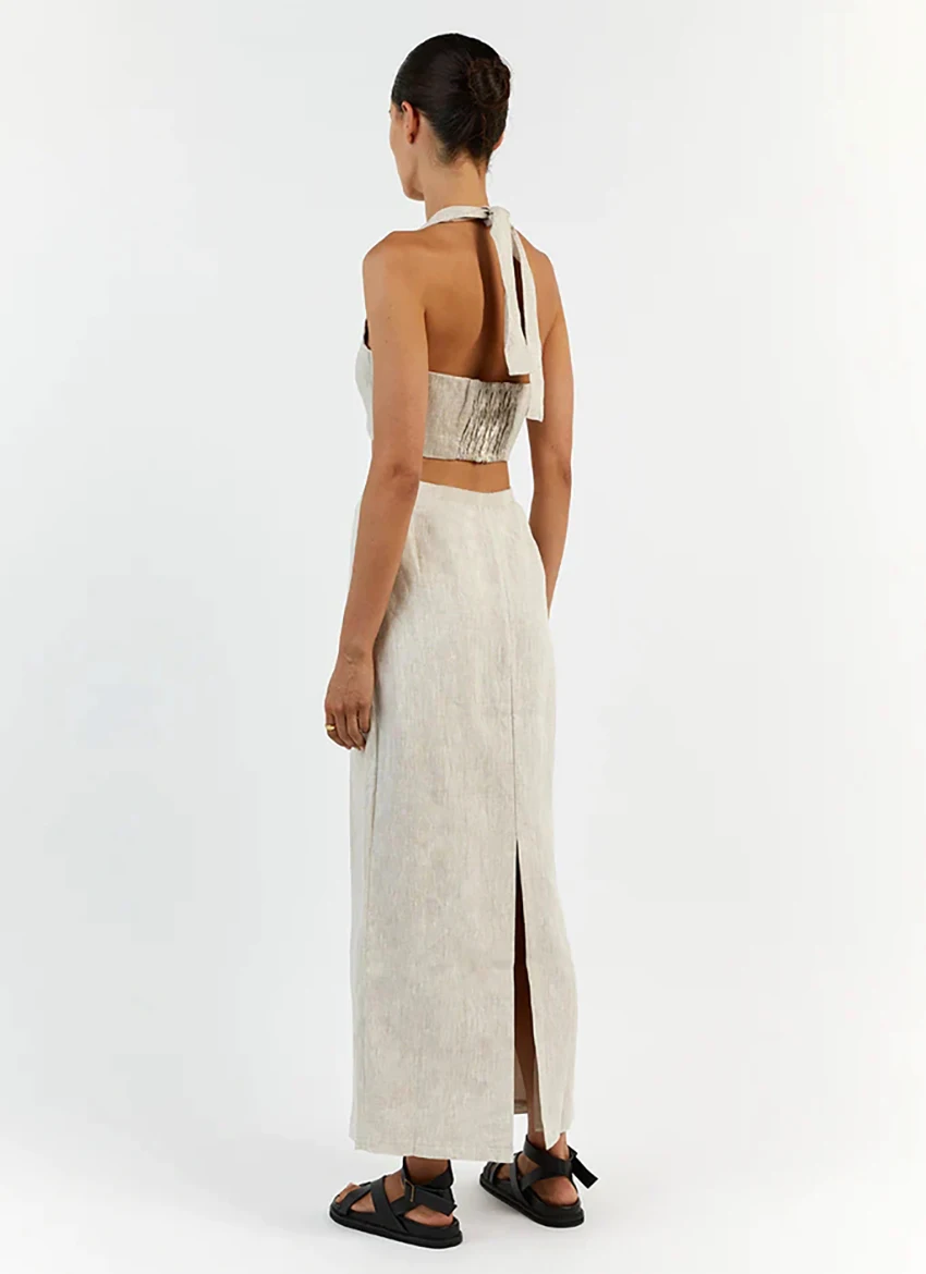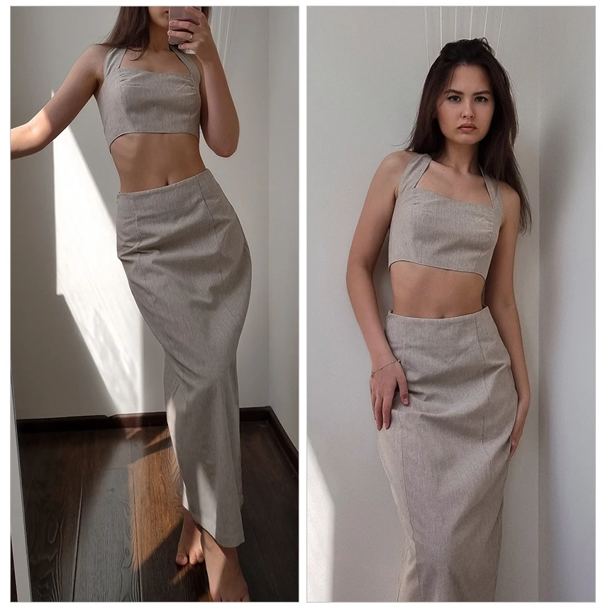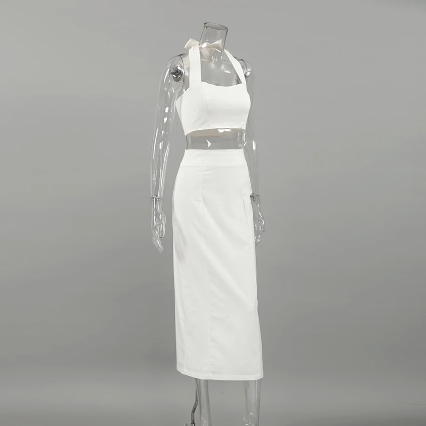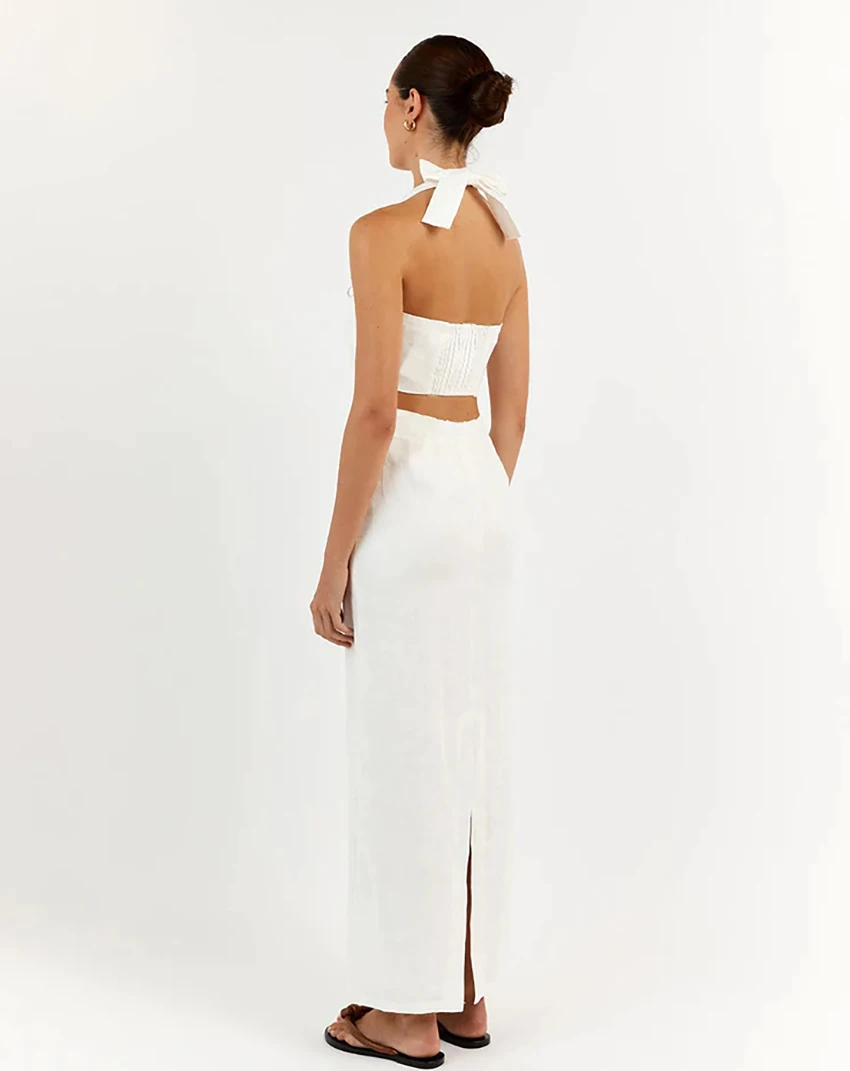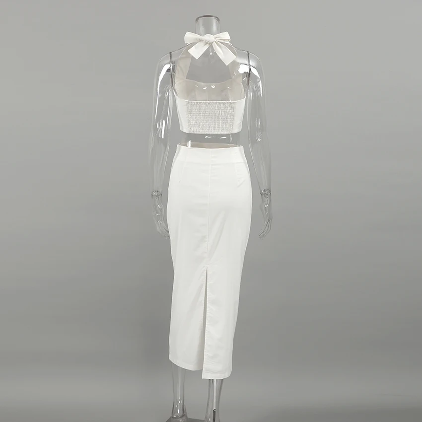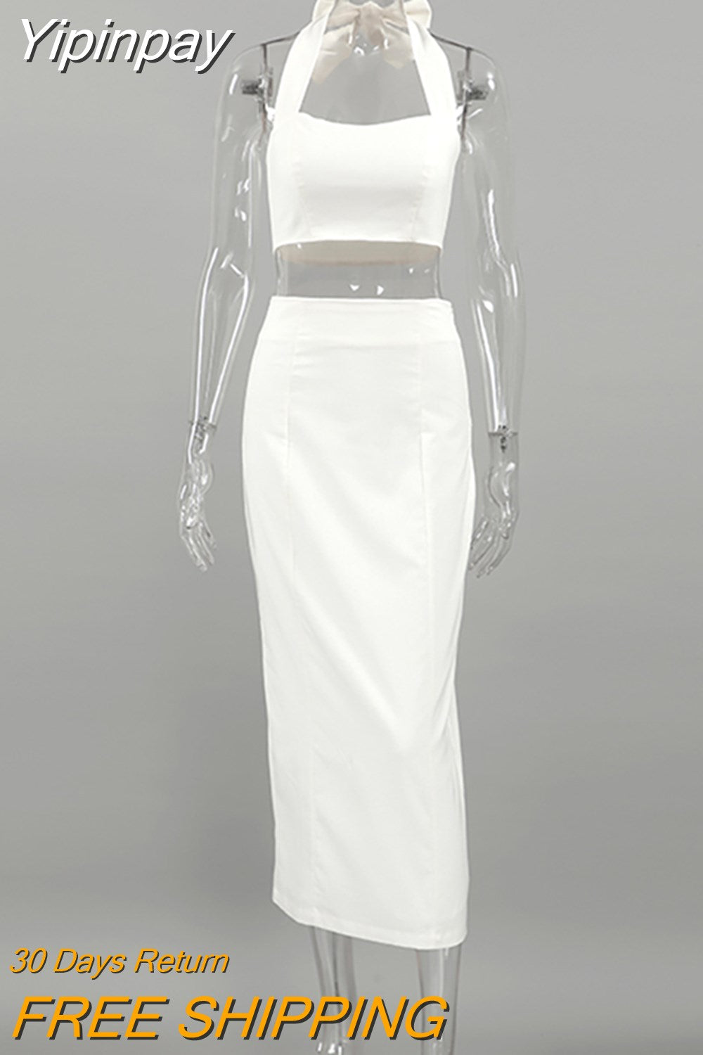 Yipinpay Elegant Cotton Linen Skirts Sets Vacation 2023 Bandage Top Women High Waist Split Skirts Summer 2-Piece Skirts Sets
