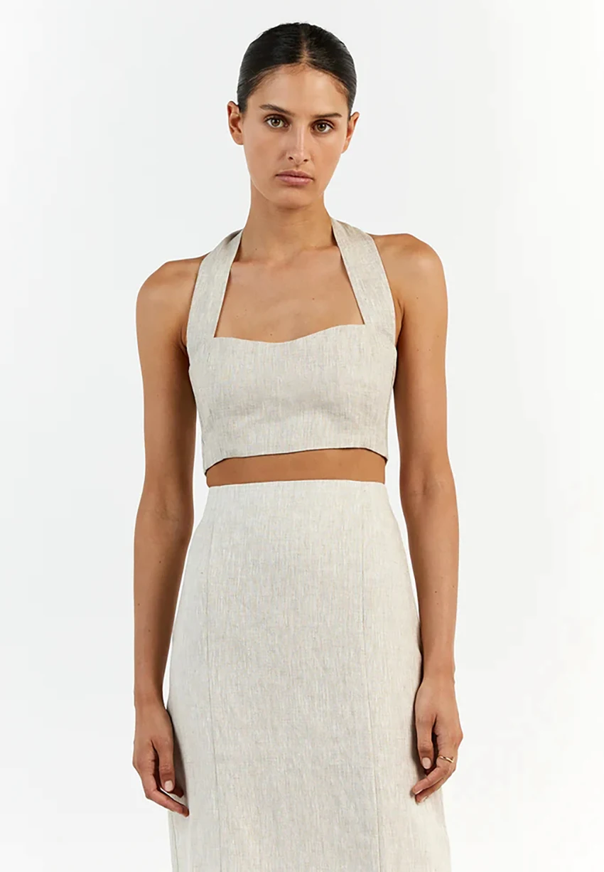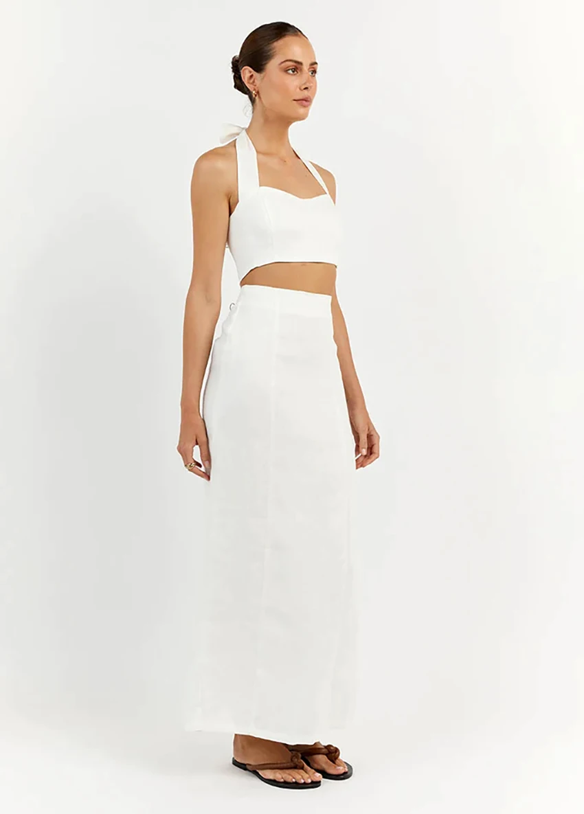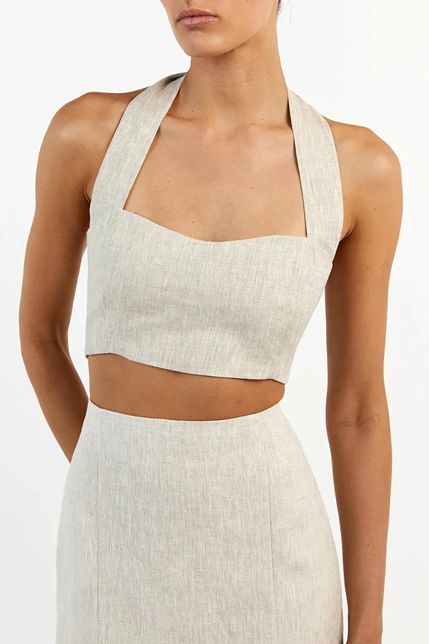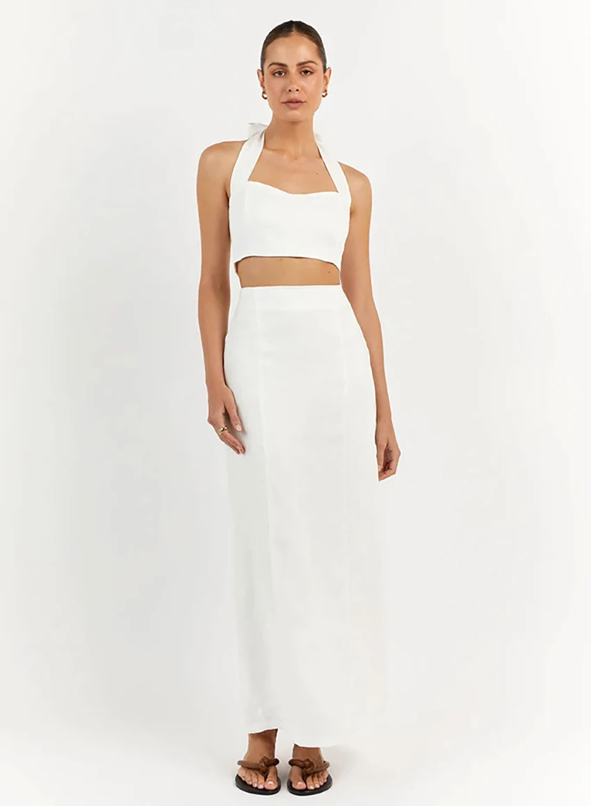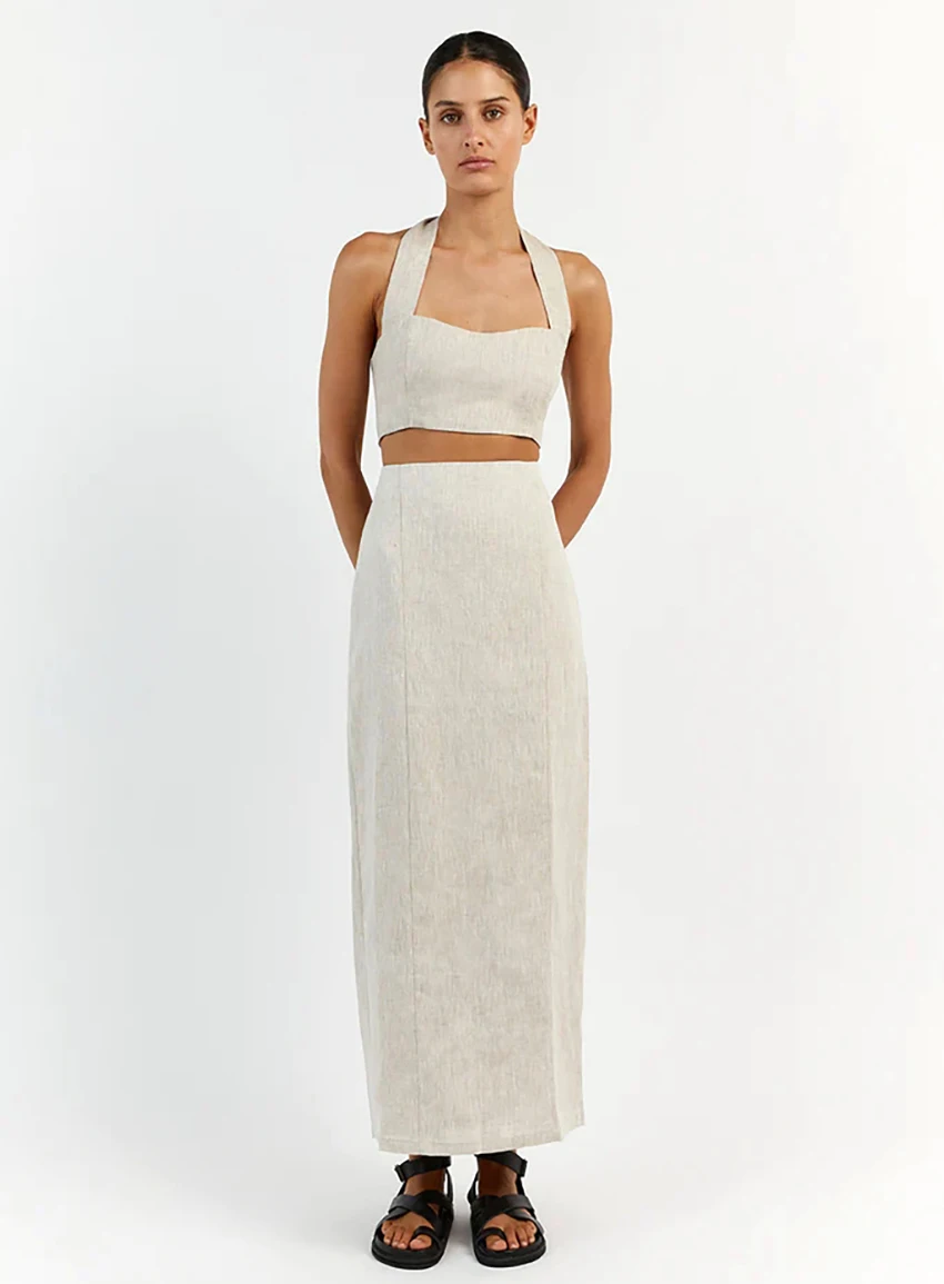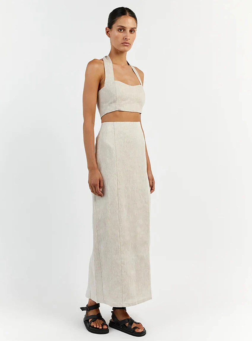 Yipinpay Elegant Cotton Linen Skirts Sets Vacation 2023 Bandage Top Women High Waist Split Skirts Summer 2-Piece Skirts Sets